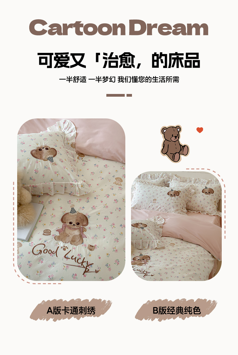 (总)卡巴伦家纺 2025新款全棉皱皱纱大版卡通数码印花款四件套二,酥酥熊-粉,腊肠总裁,生日万岁-粉,生日万岁-蓝,生日万岁-米,酥酥熊-米黄,汪汪掀被-灰,汪汪掀被-绿,小狗没烦恼