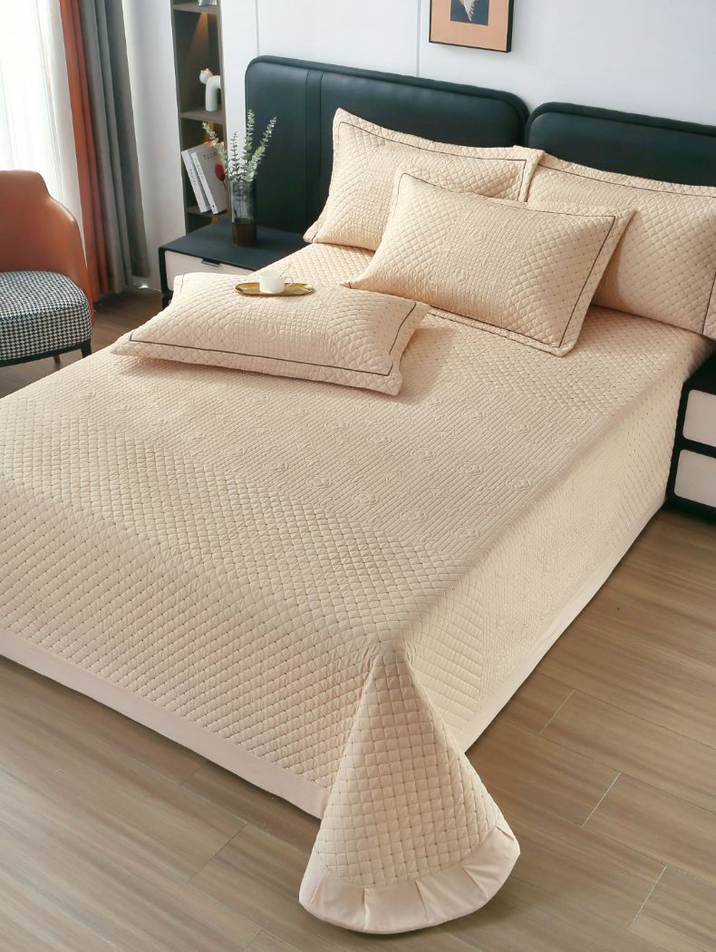 OL家纺2025新款玉锦缎纯色床盖三件套-巴格莉 紫色