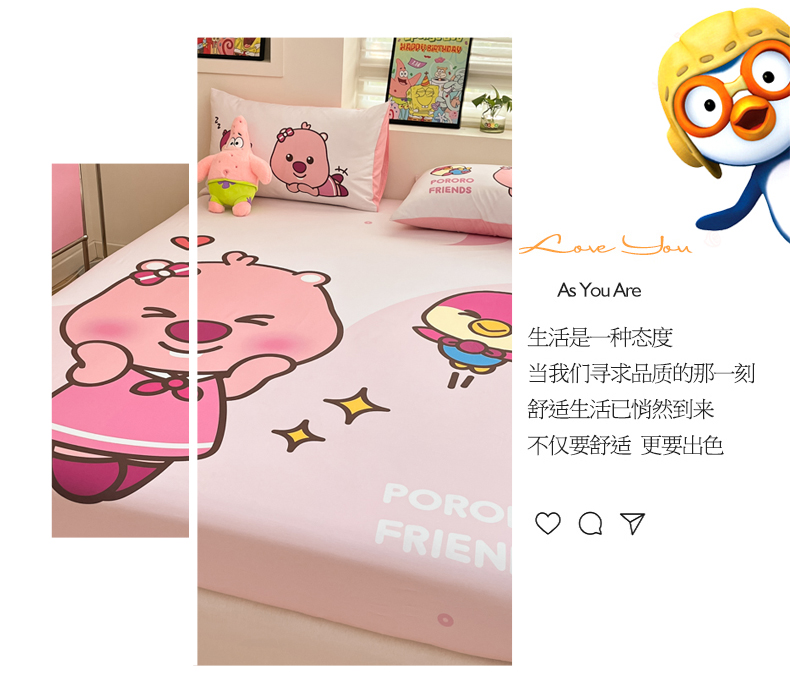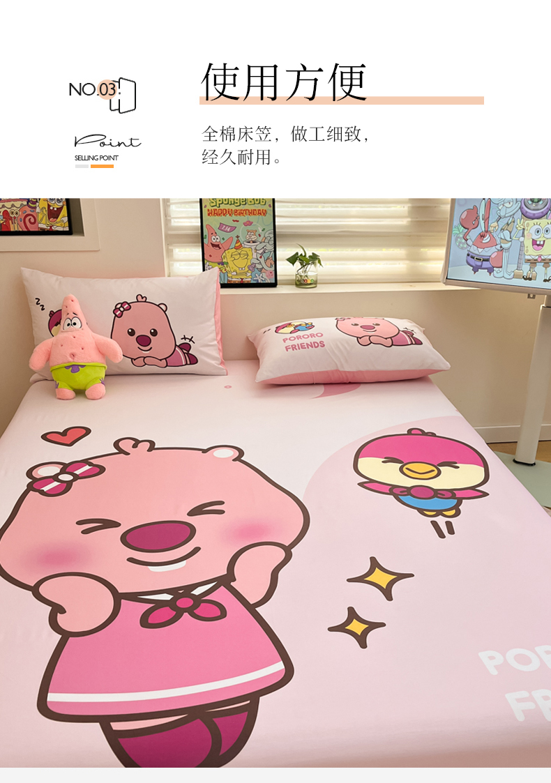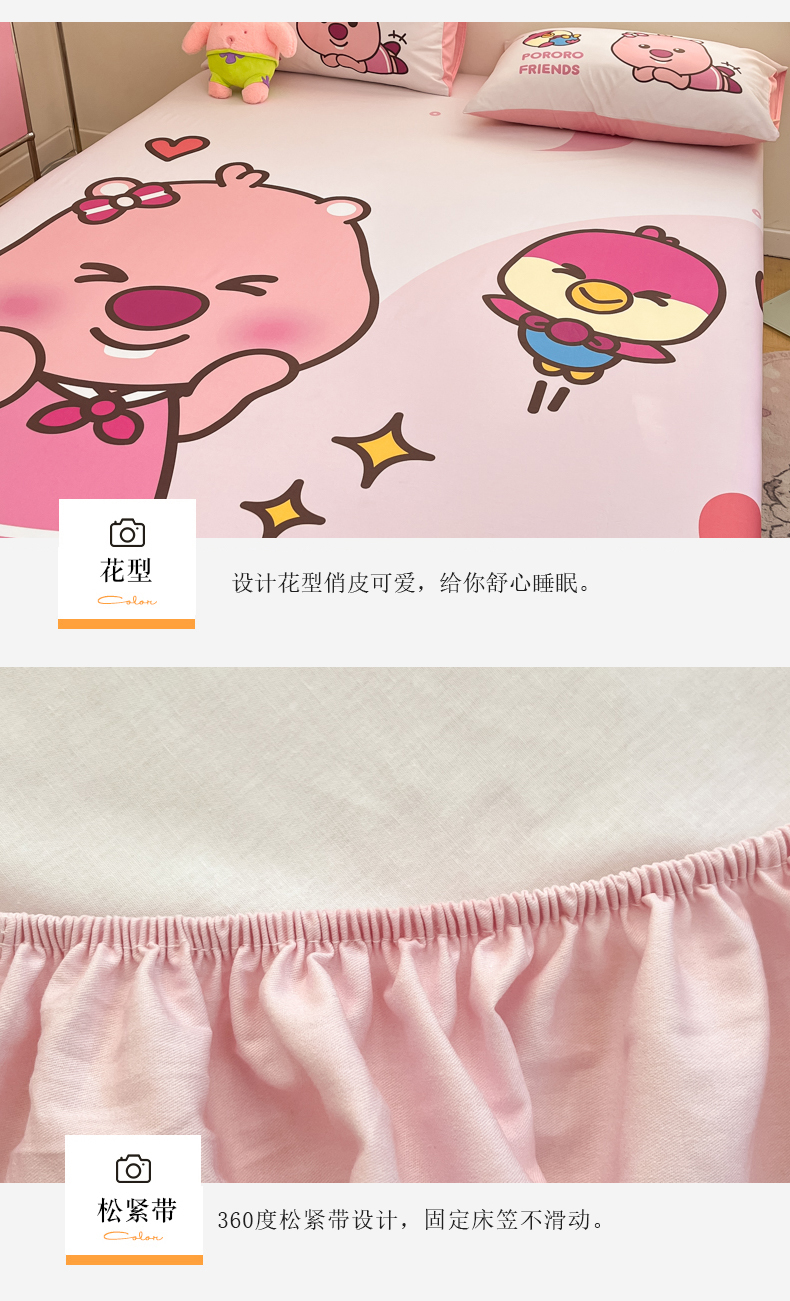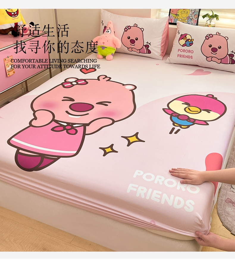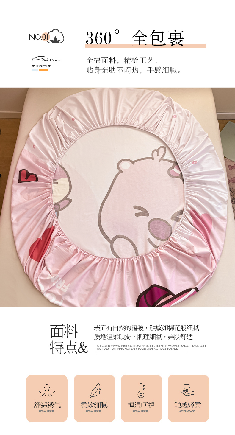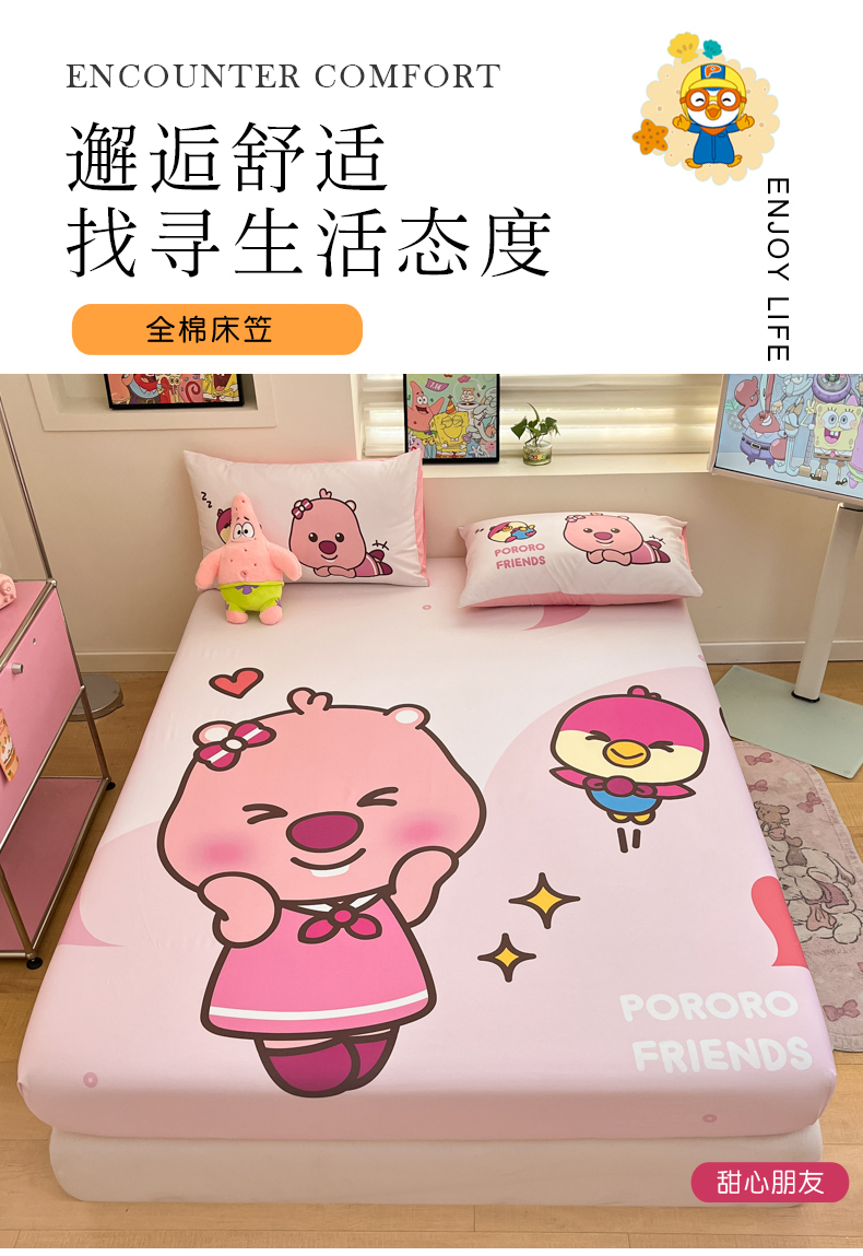 金爱家 2025新款全棉大版单品波乐乐床笠 棉单品波乐乐-甜心朋友