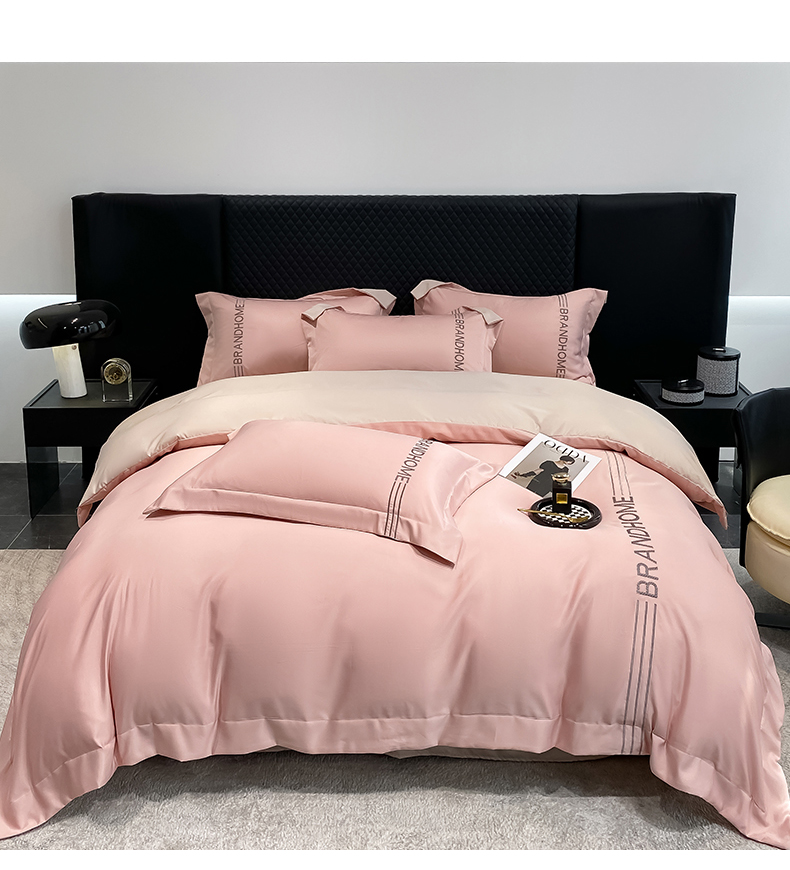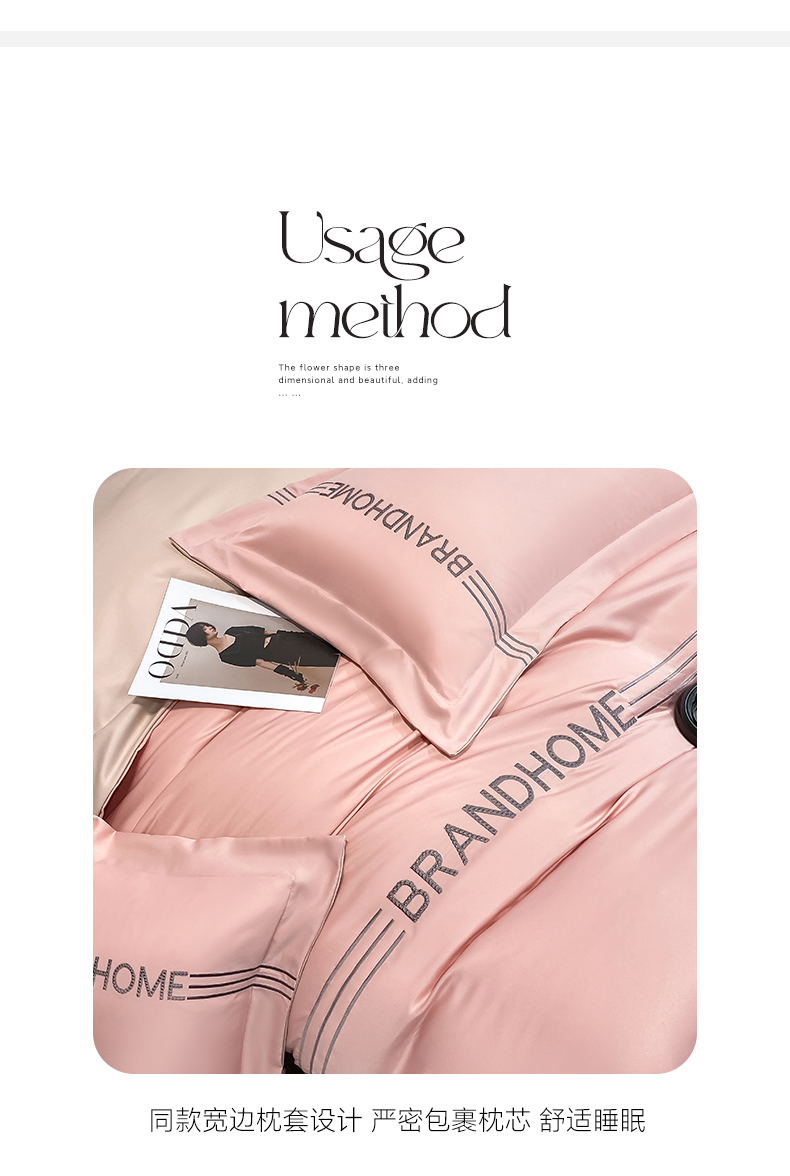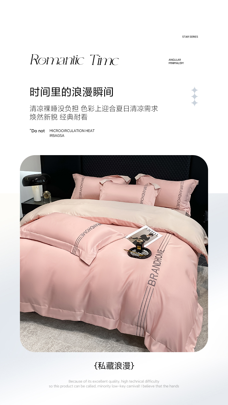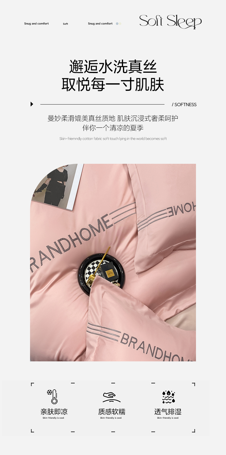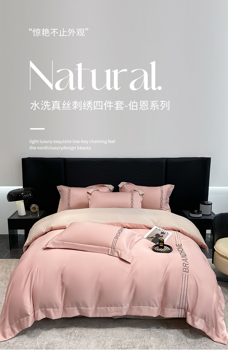 首尔家纺 2025亲肤棉水洗真丝冰丝刺绣四件套-伯恩系列 伯恩-珍珠粉