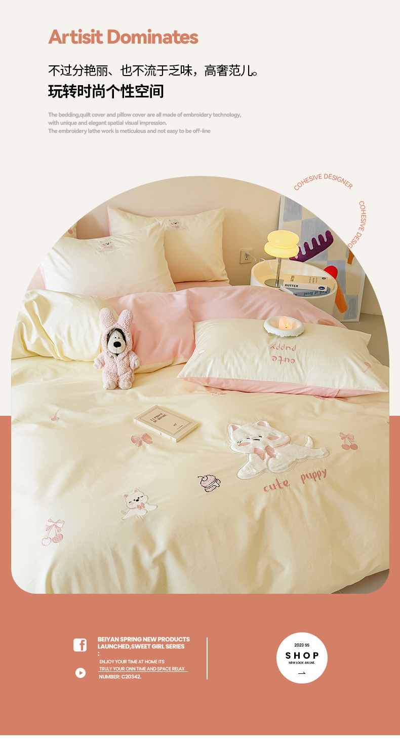 当前位置: 91家纺网 > 商品网购 > 床品套件 > 四件套 > 全棉普通四件套 > (总)蜜柚2025新款全棉纯棉贴布绣四件套