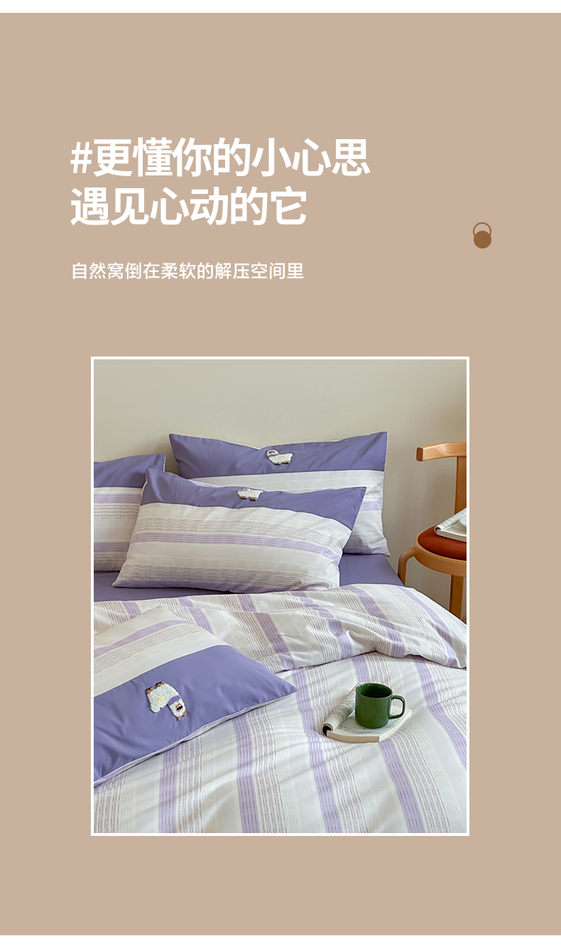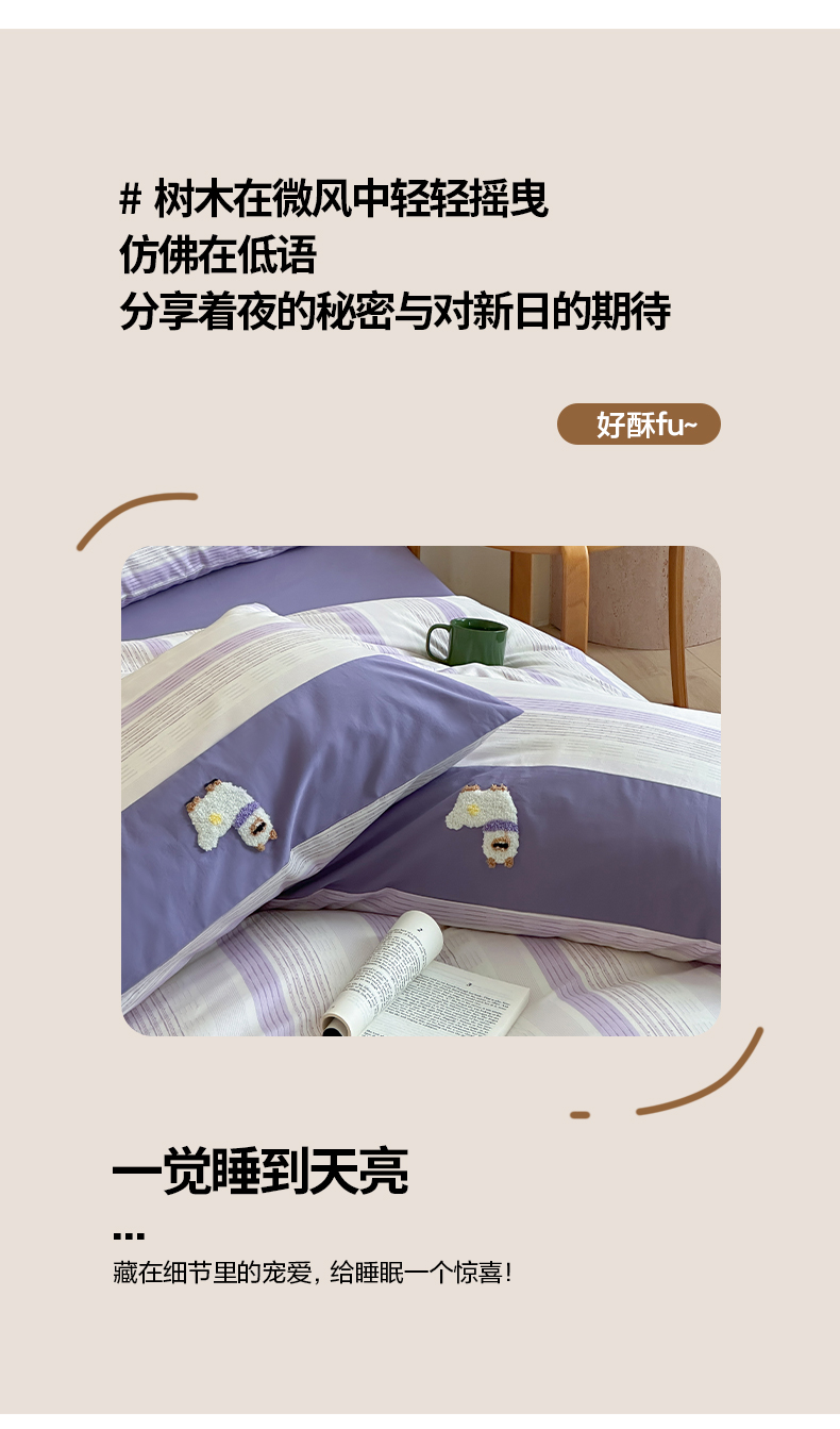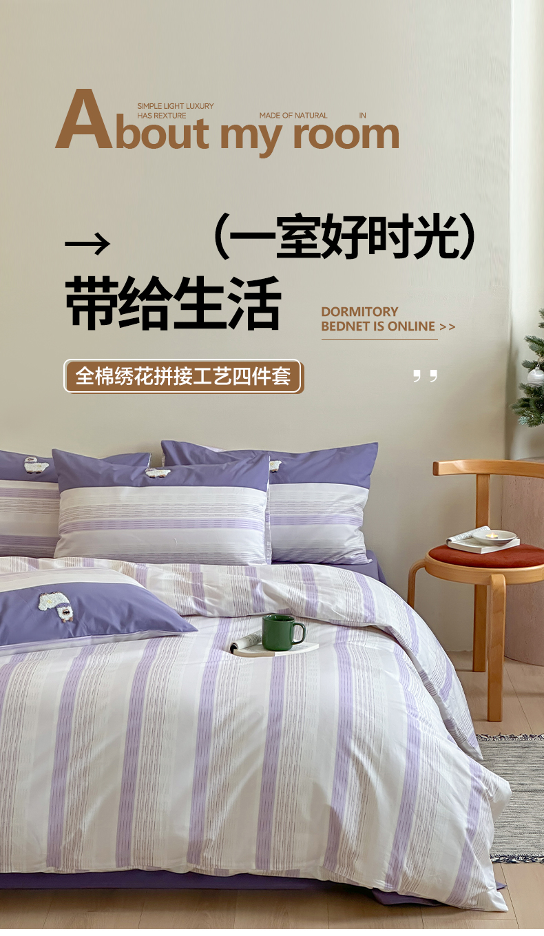 (总)卡巴伦家纺 2025新款全棉超细旦磨毛刺绣拼接四件套-旷野(会员:-20元 控价:358元),旷野-白,旷野-灰,旷野-咖,旷野-紫