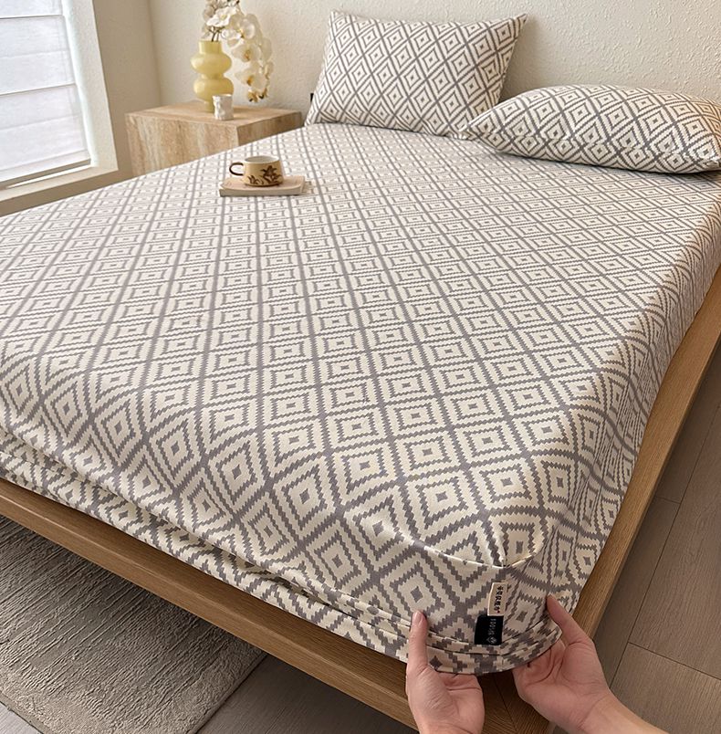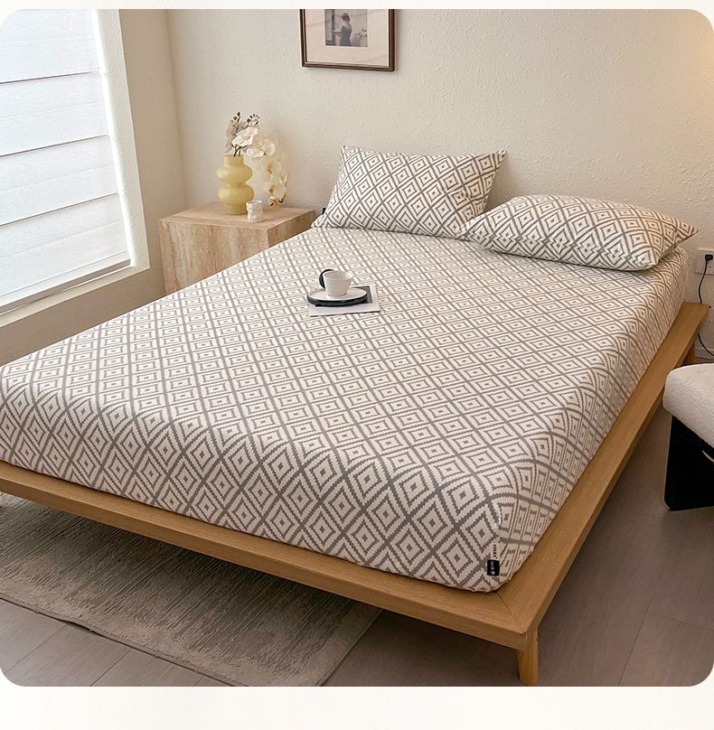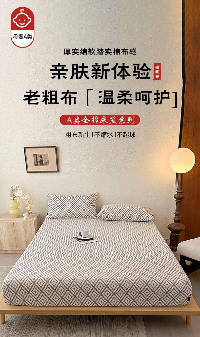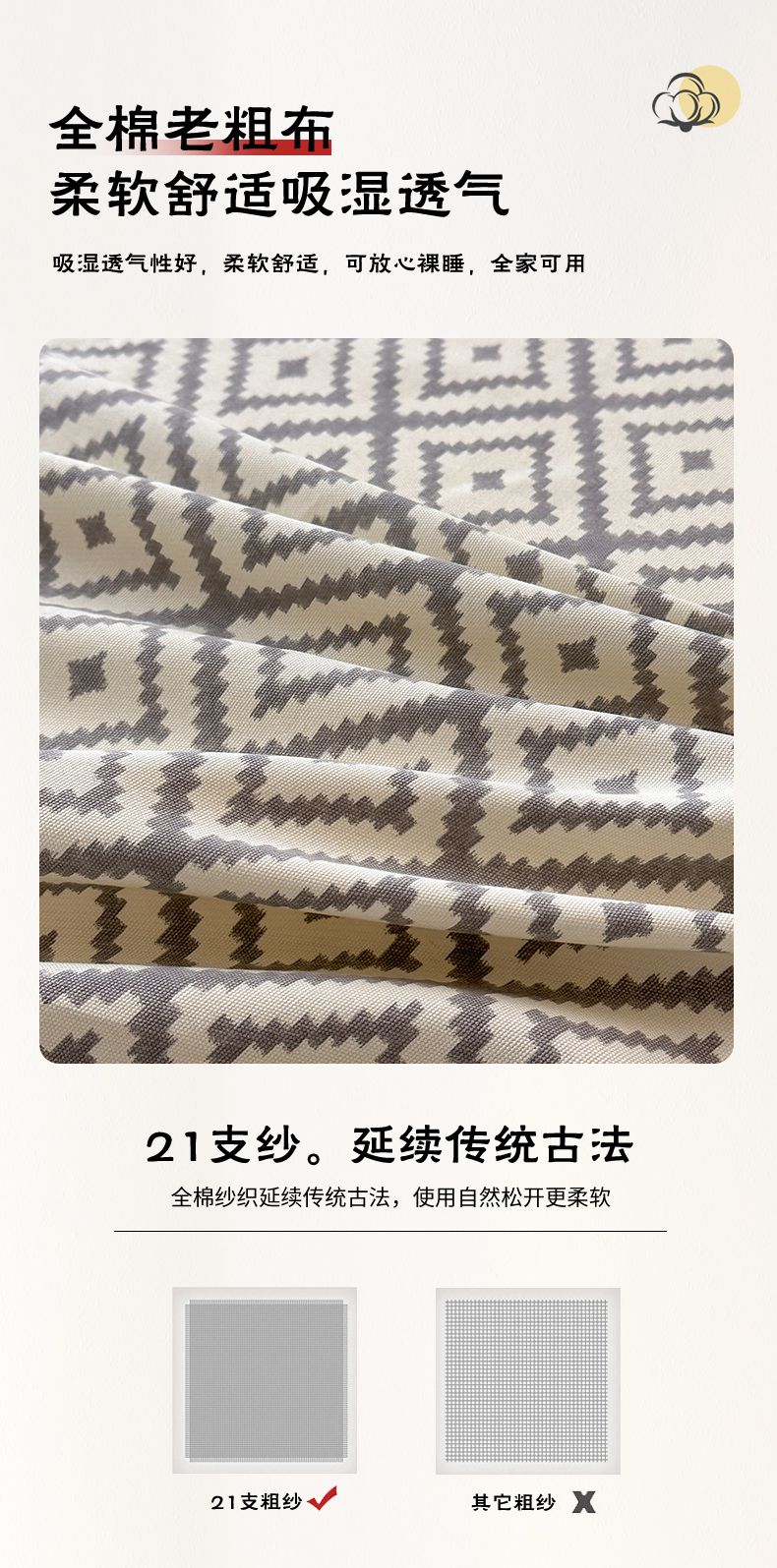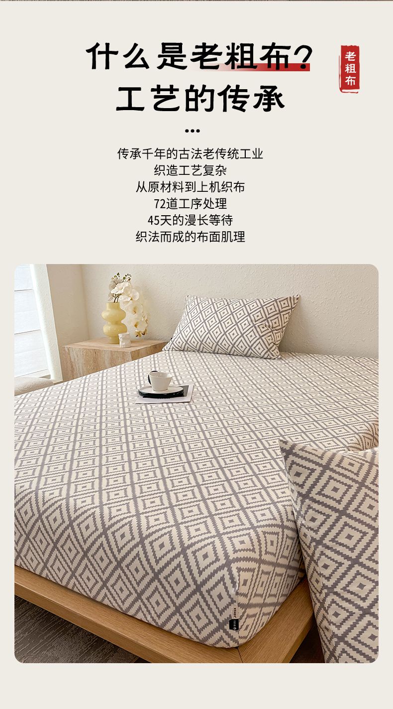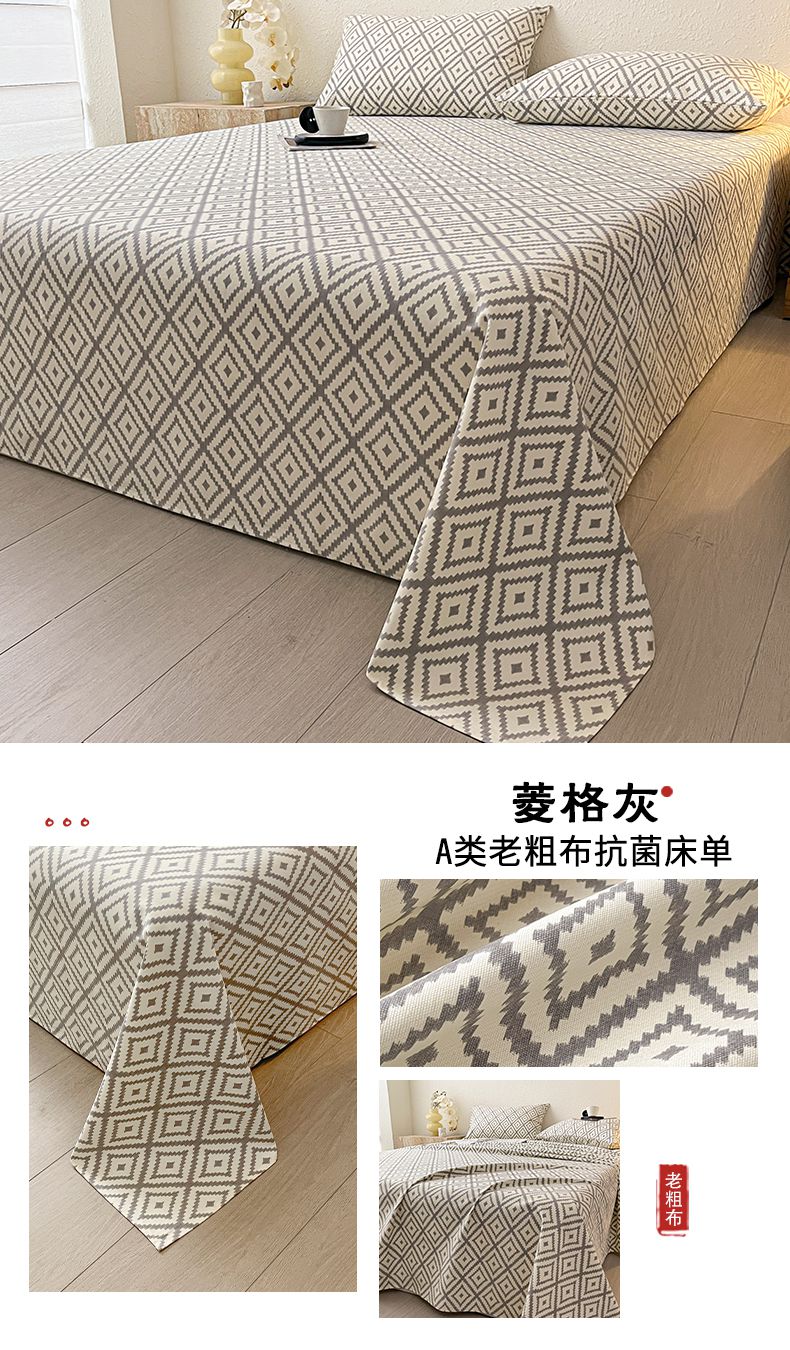 (总)鑫钰 2025新款老粗布床单床笠系列-格纹系列,豹纹灰,格韵咖,菱格灰,菱格绿,青缇格,水墨纹