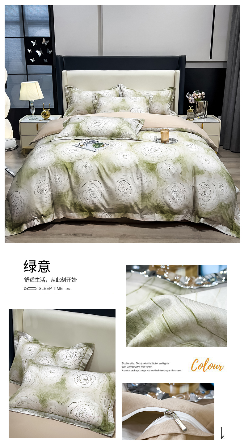 商品名称:兄弟坊2025新款兰精天丝数码印花四件套 绿意