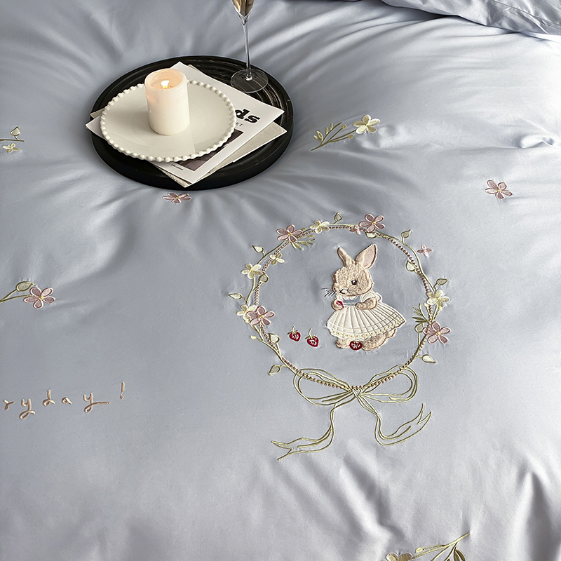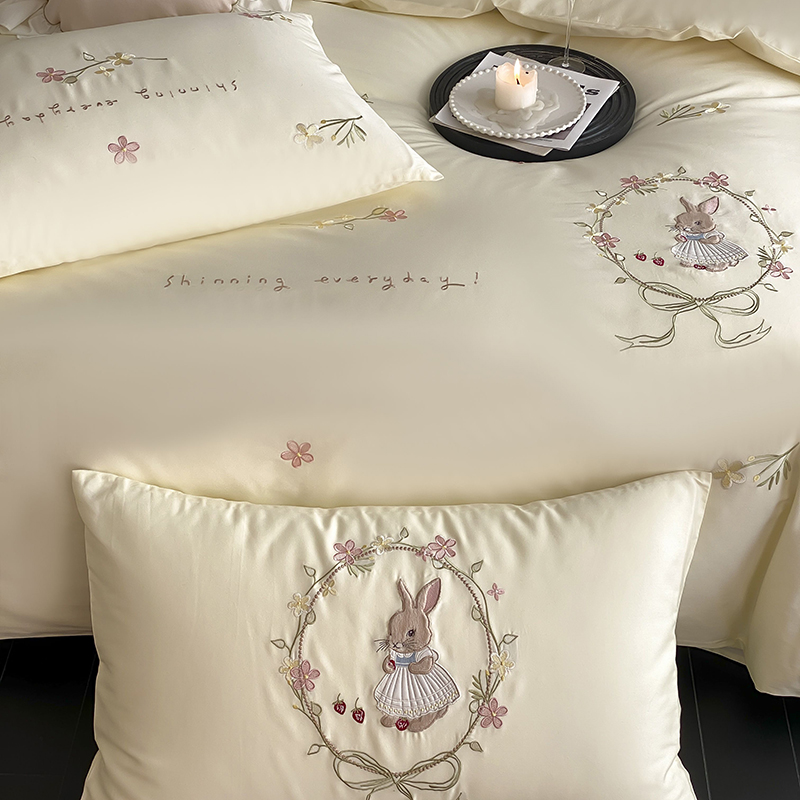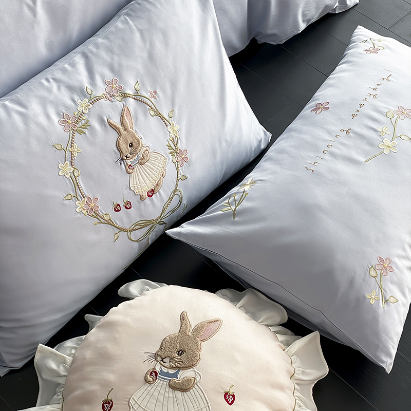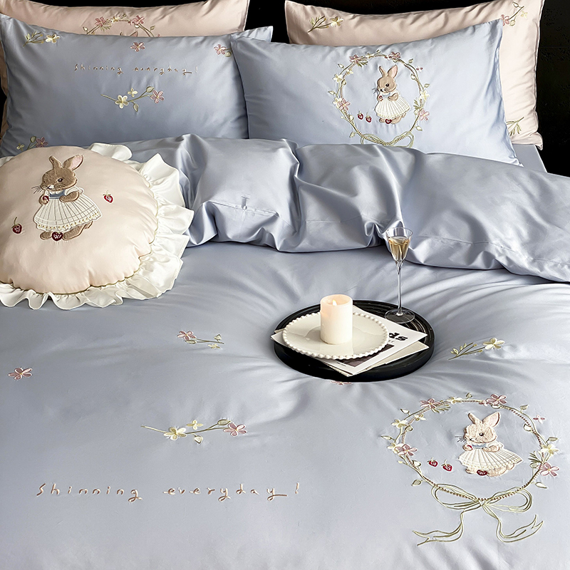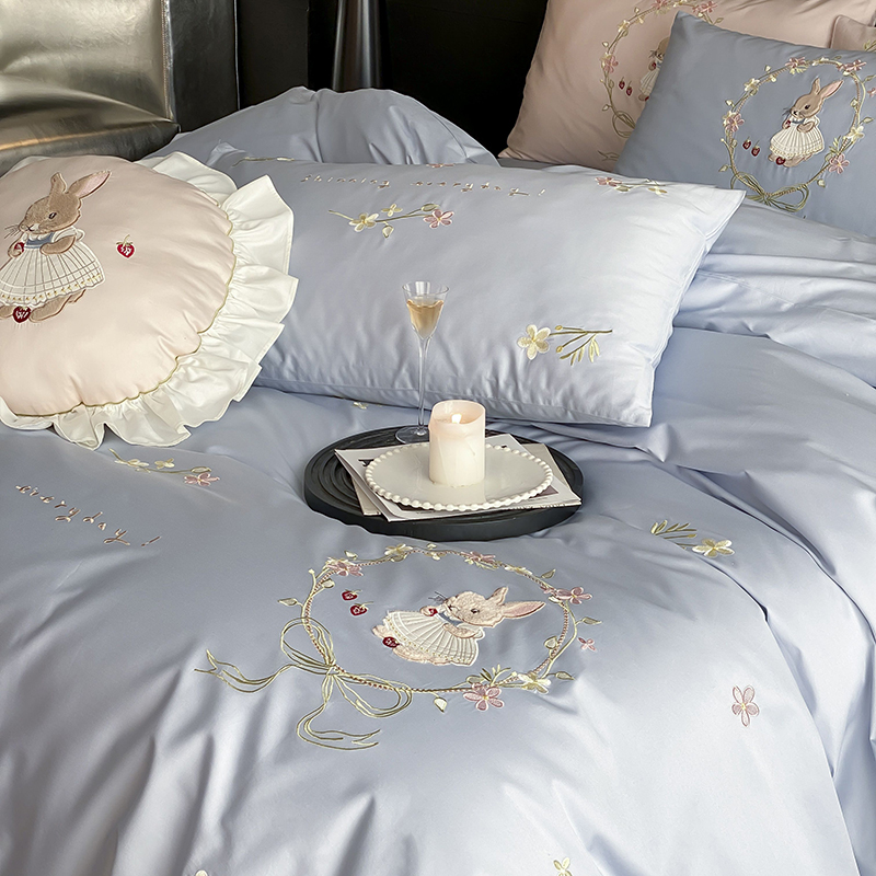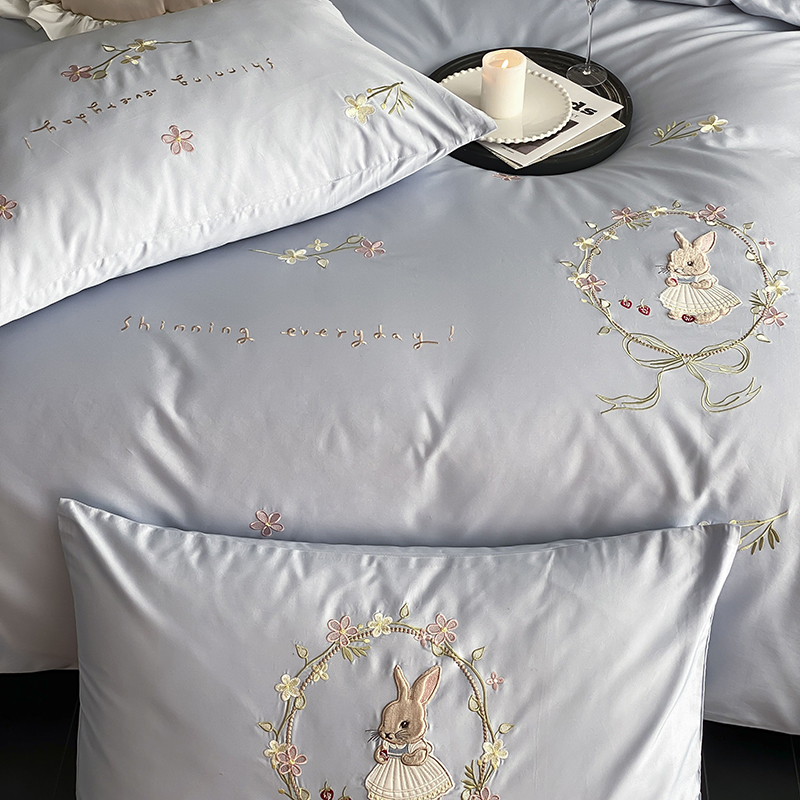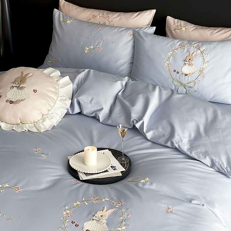 商品名称:(总)鹿班家居 2025春夏款100S长绒棉刺绣四件套-萌兔花园场景二【标准会员-20】