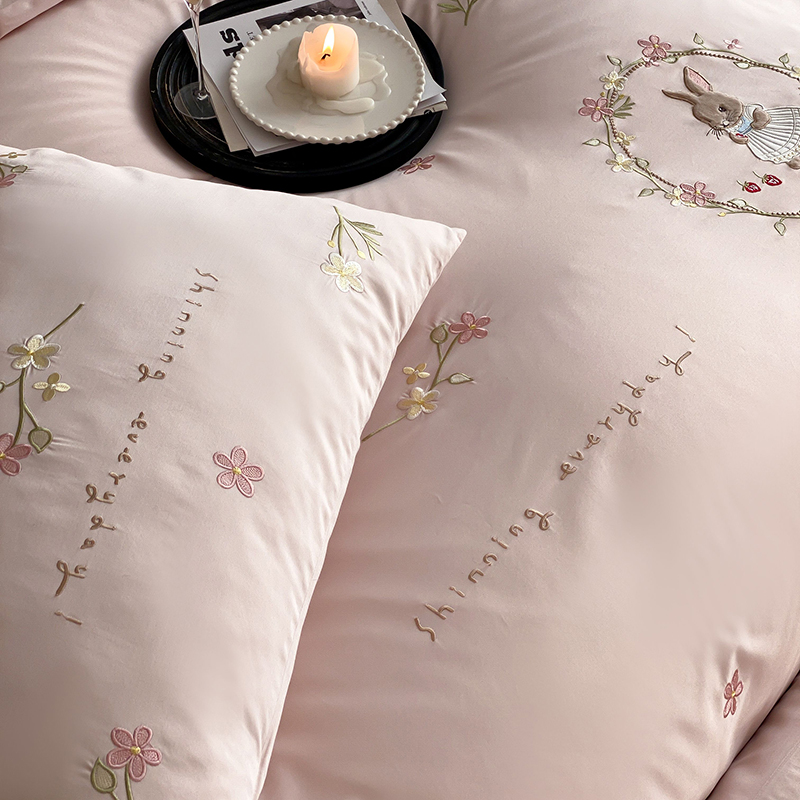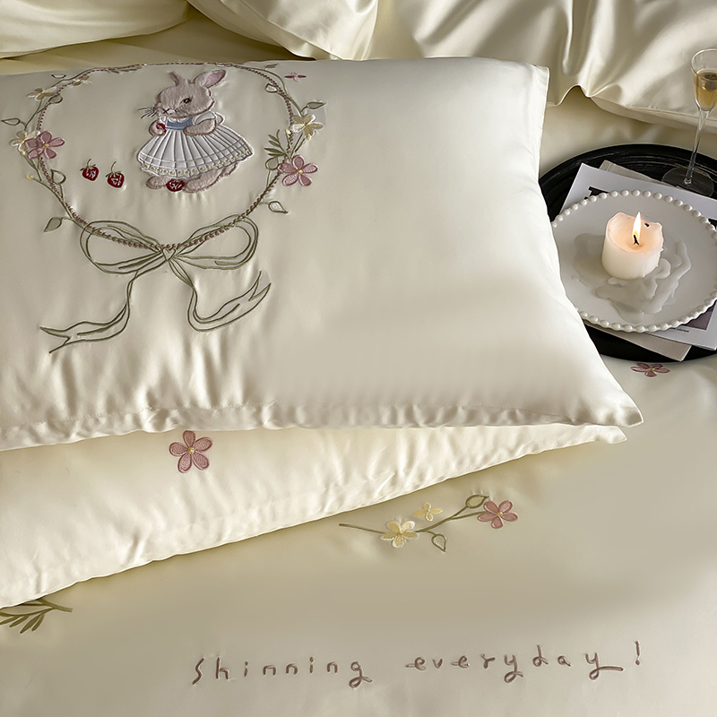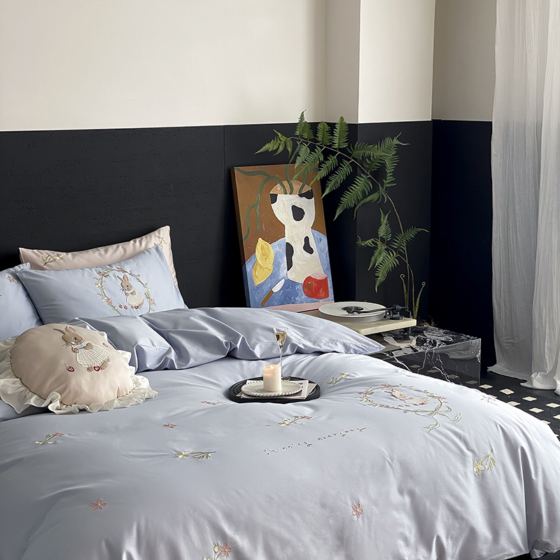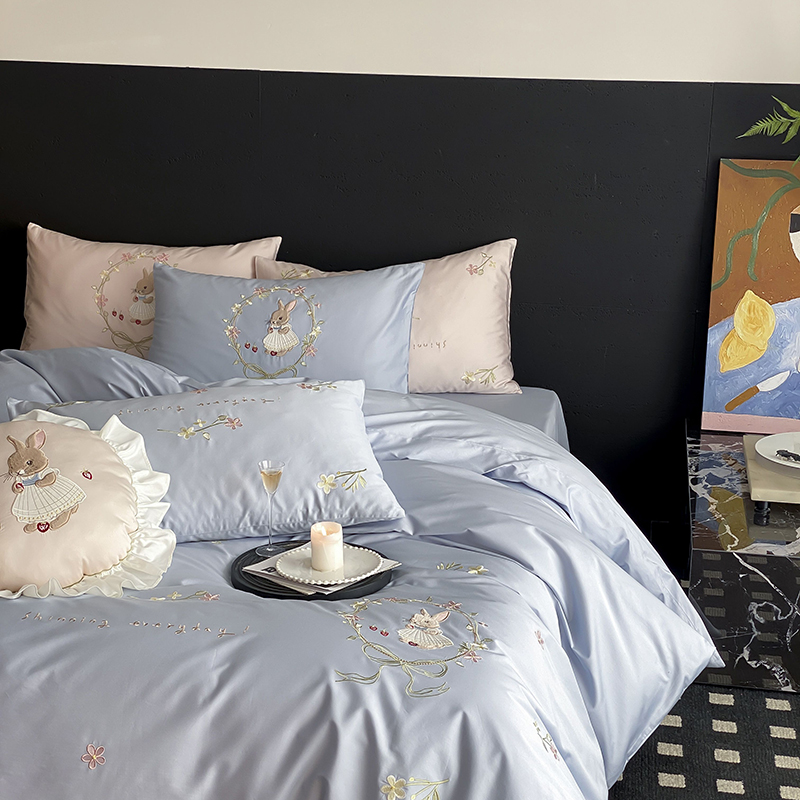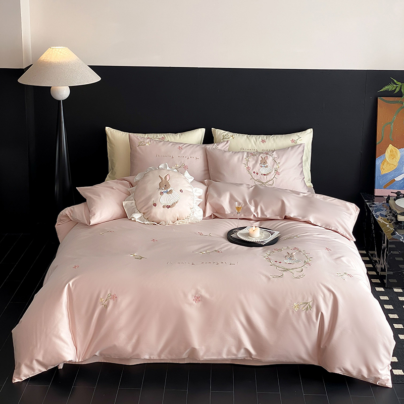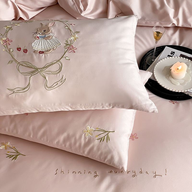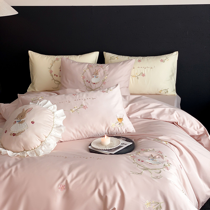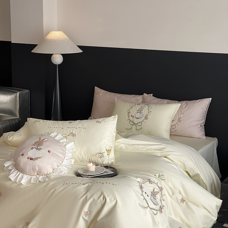 商品名称:(总)鹿班家居 2025春夏款100S长绒棉刺绣四件套-萌兔花园场景二【标准会员-20】
