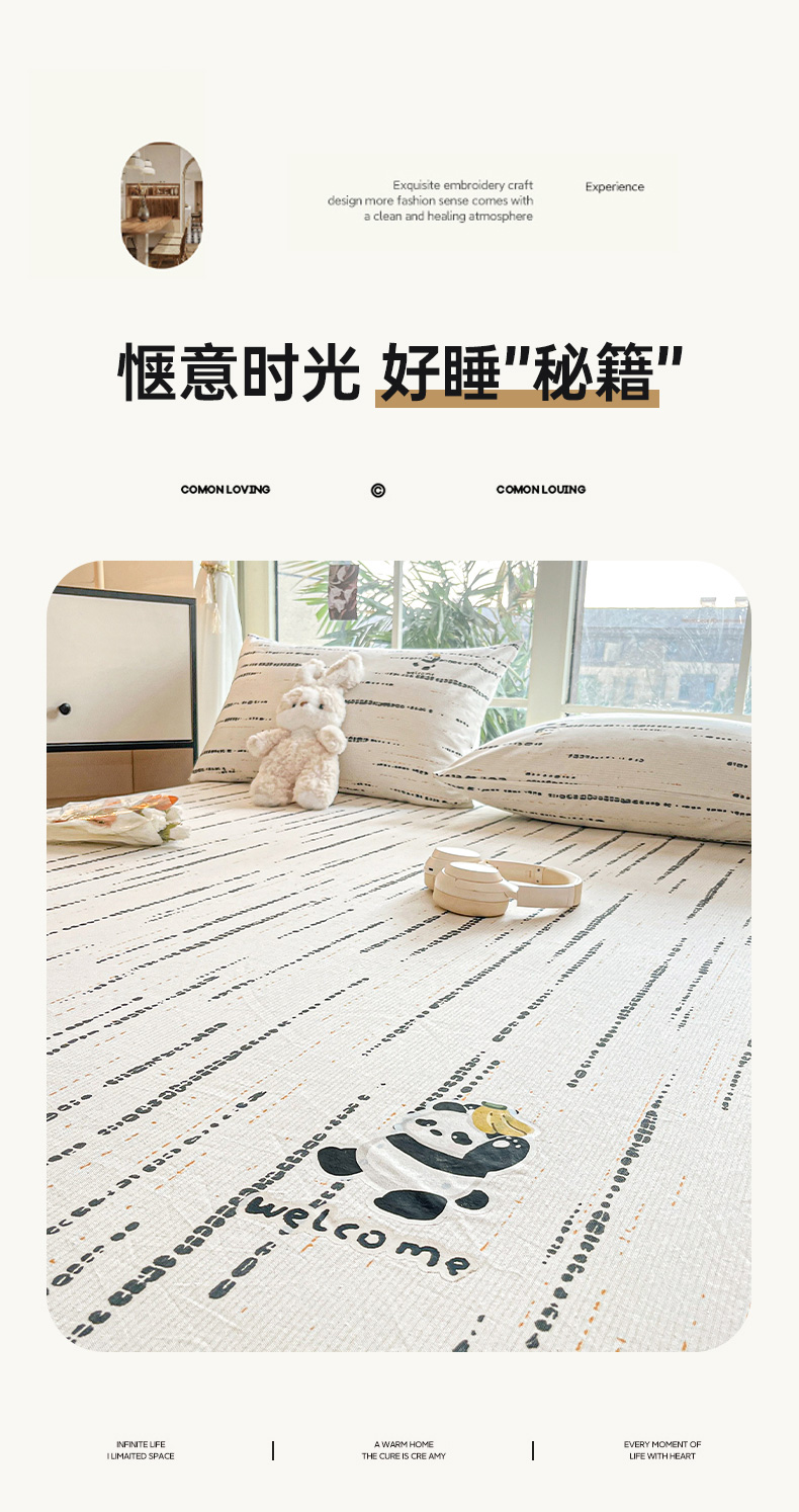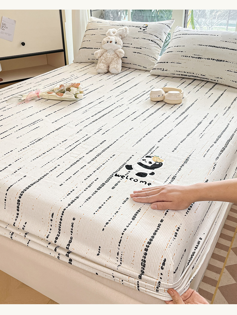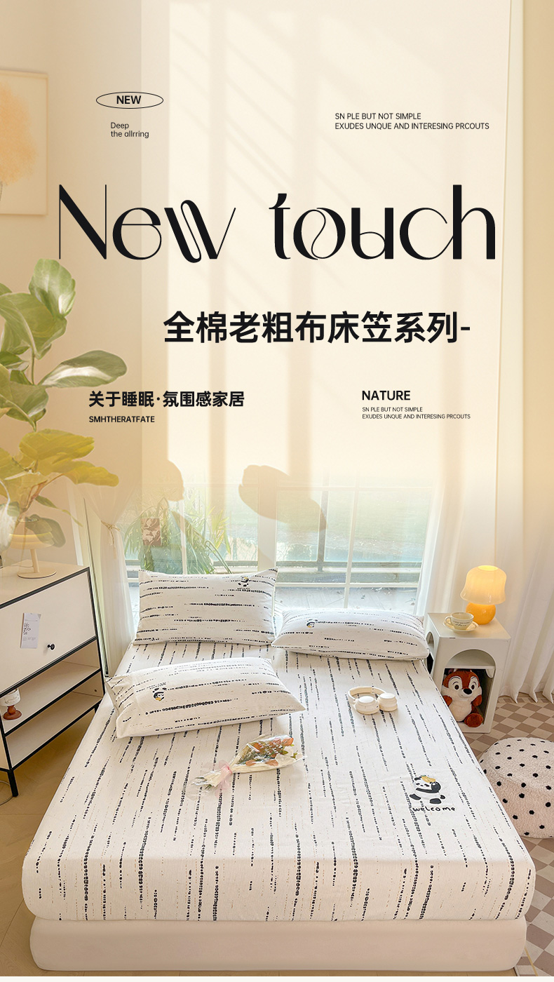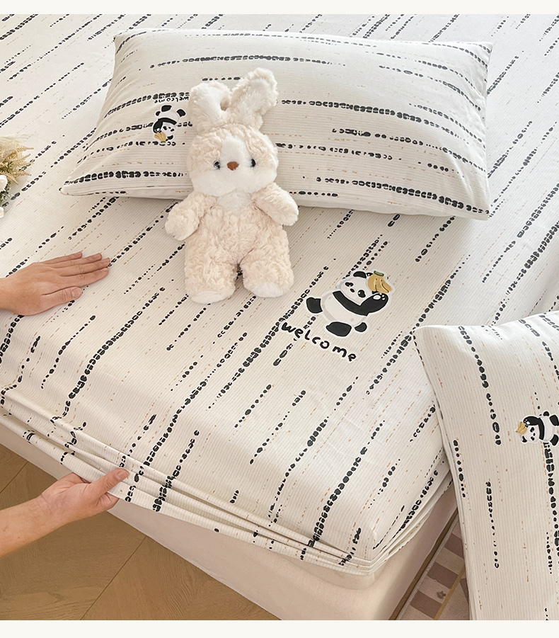 • 91家纺网 家纺一手货源 找家纺 博雅 2025新款全棉老粗布烫画床笠系列 纹理-香蕉熊猫