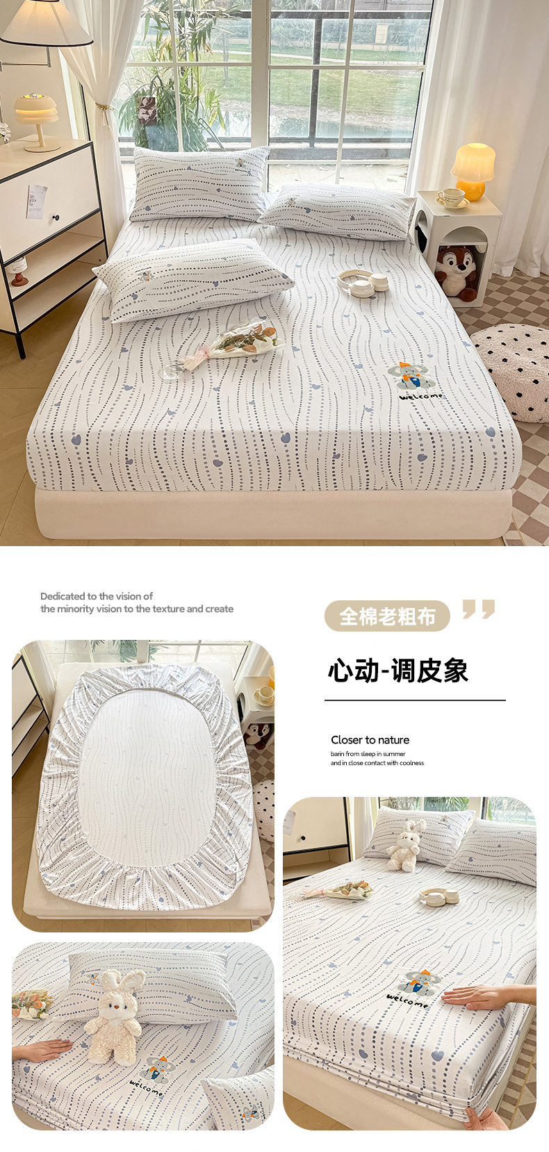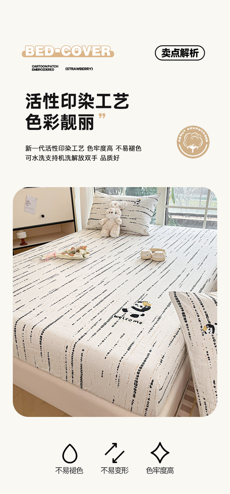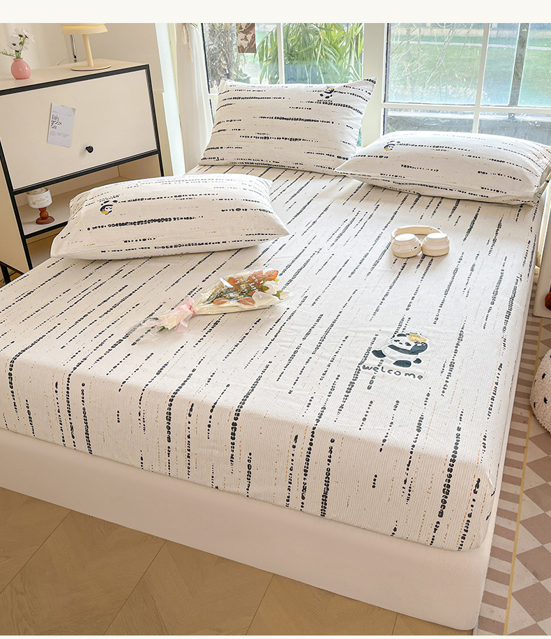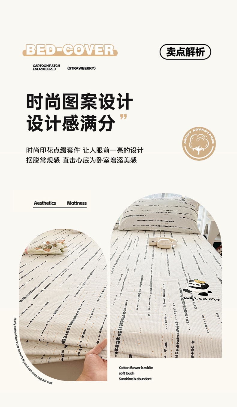 • 91家纺网 家纺一手货源 找家纺 博雅 2025新款全棉老粗布烫画床笠系列 纹理-香蕉熊猫