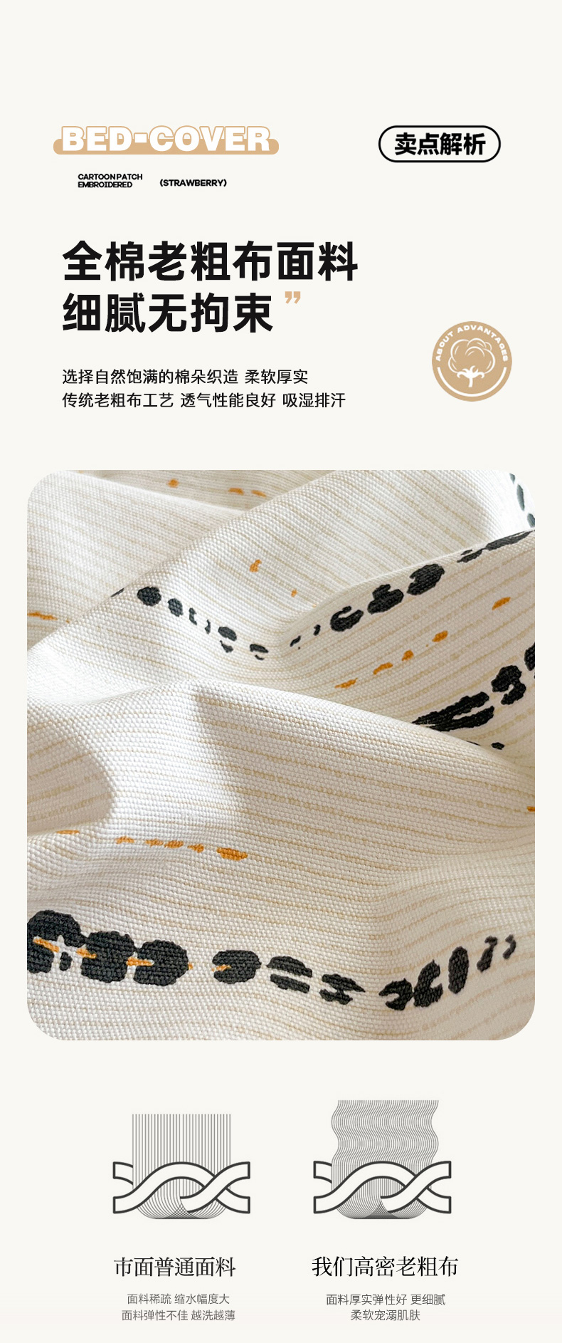 博雅 2025新款全棉老粗布烫画床笠系列 纹理-香蕉熊猫