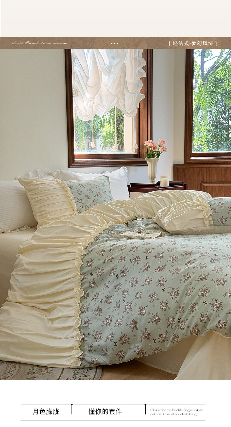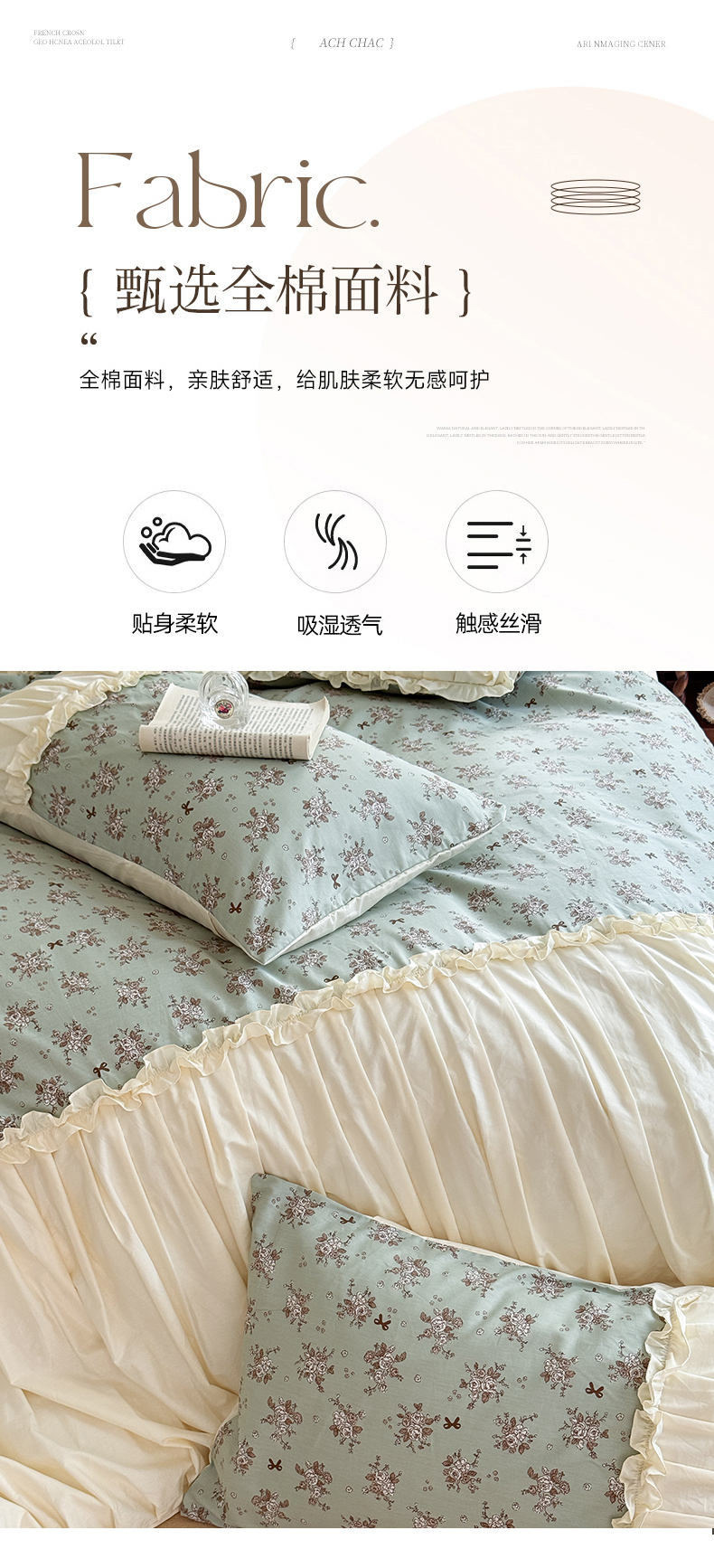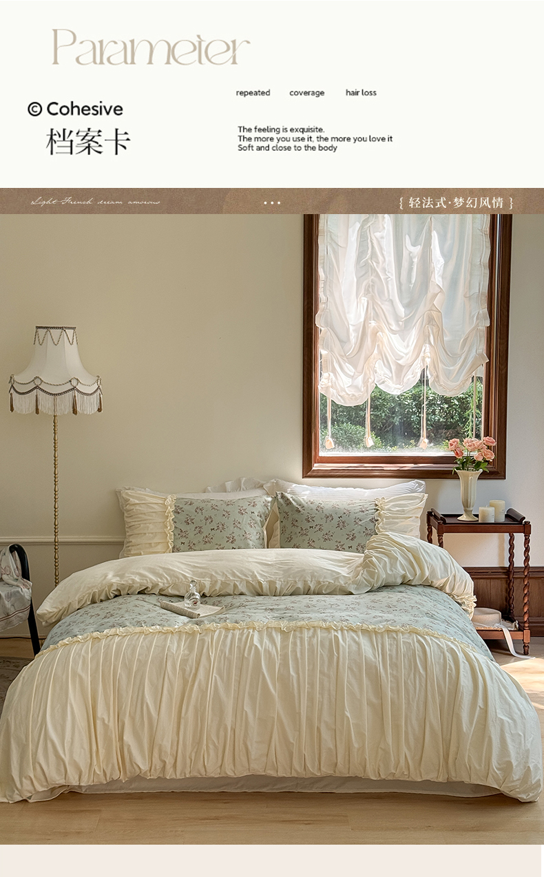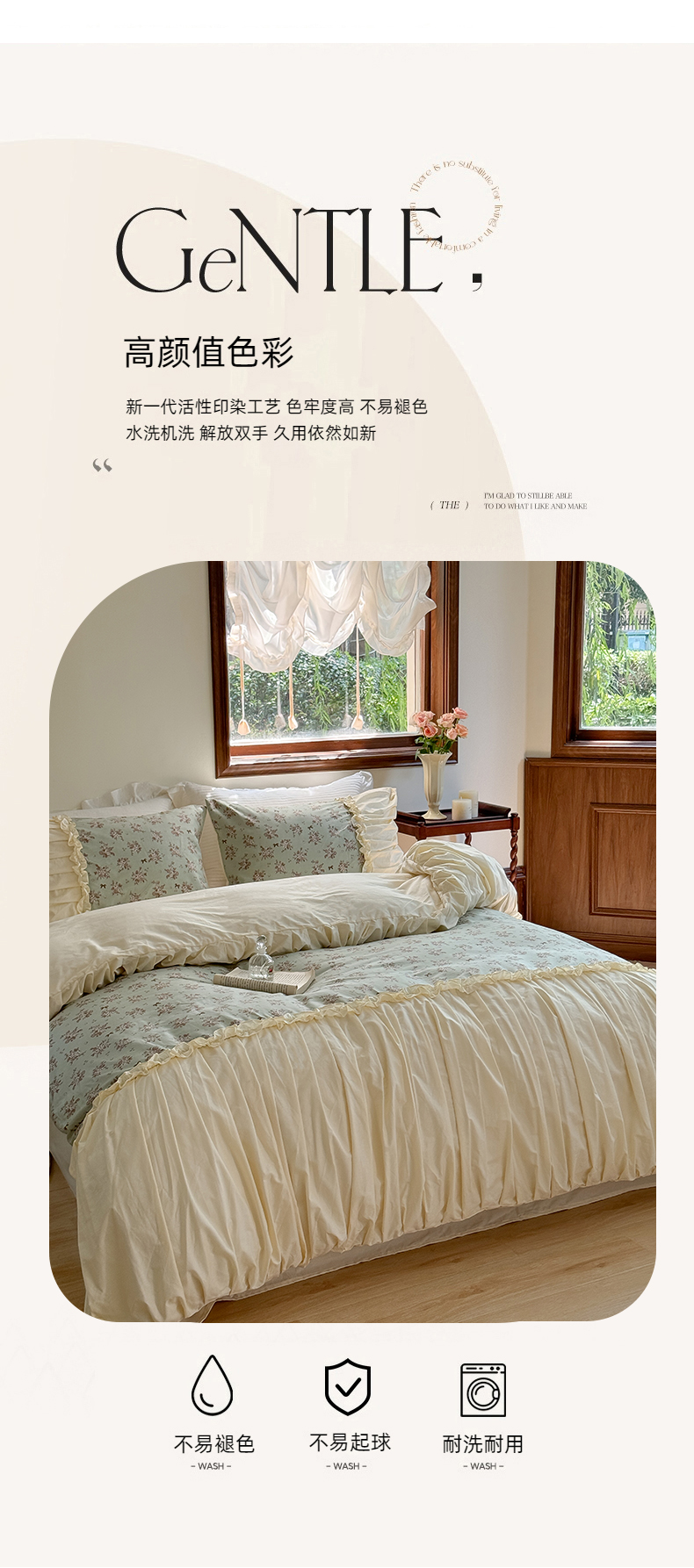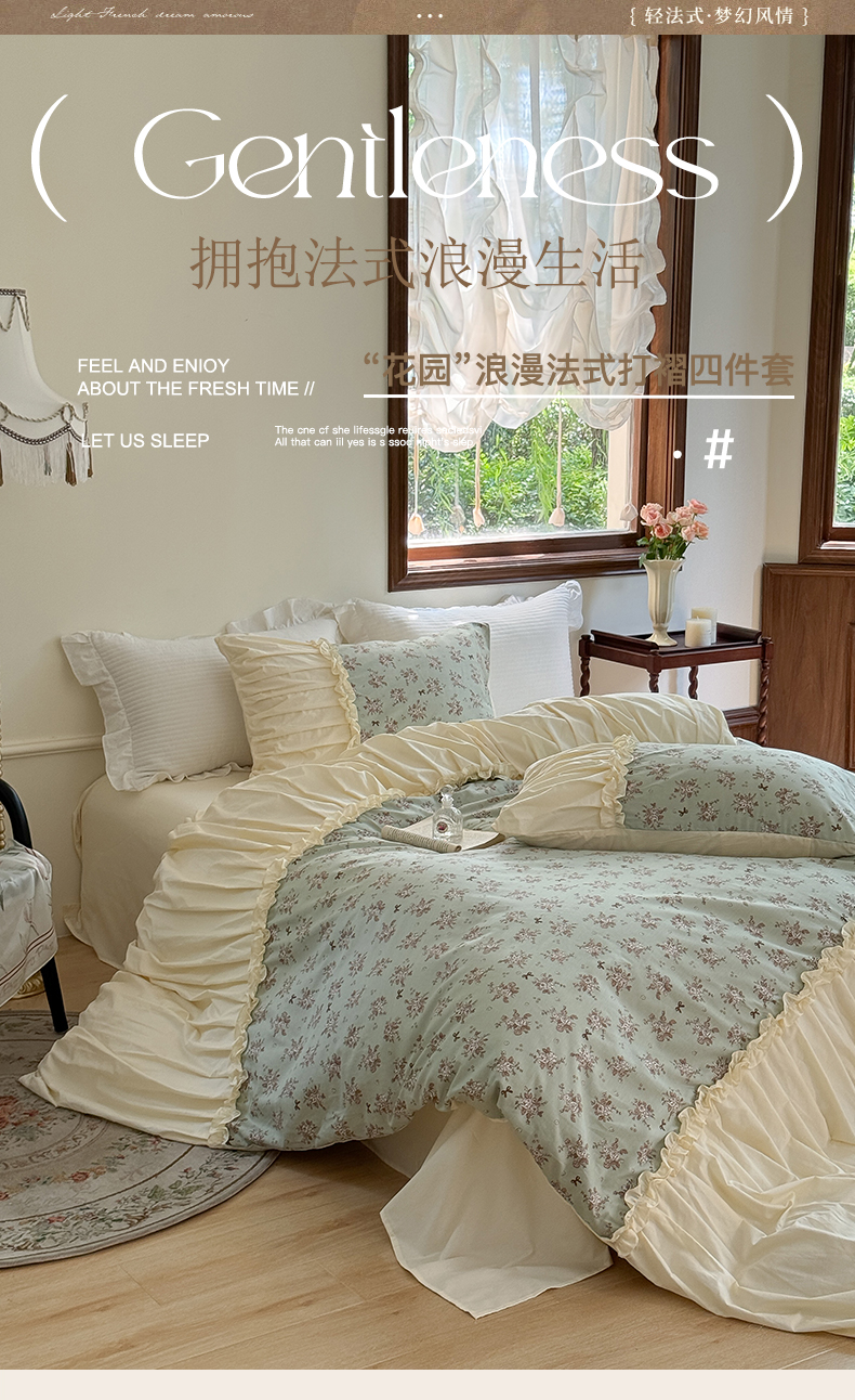 商品名称:TT.one 塔塔家居 2025新款全棉法式打褶印花四件套-花园派对 予你