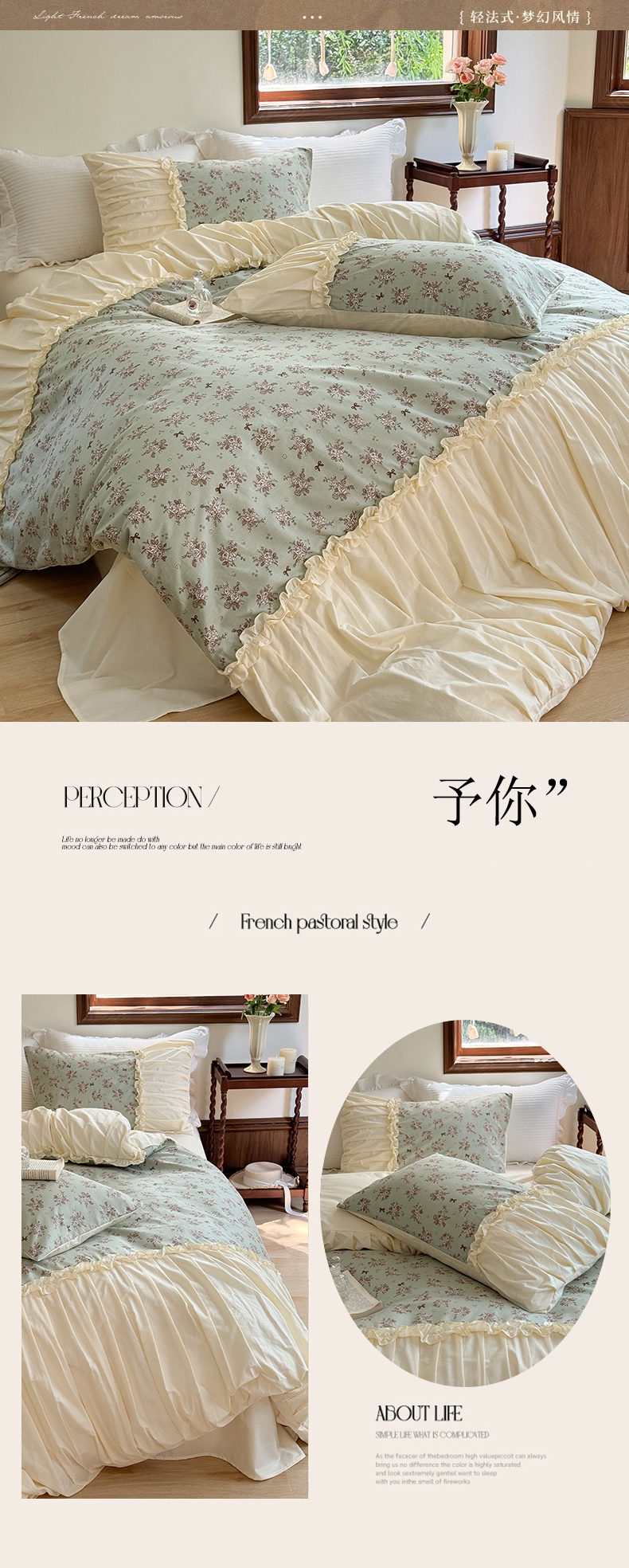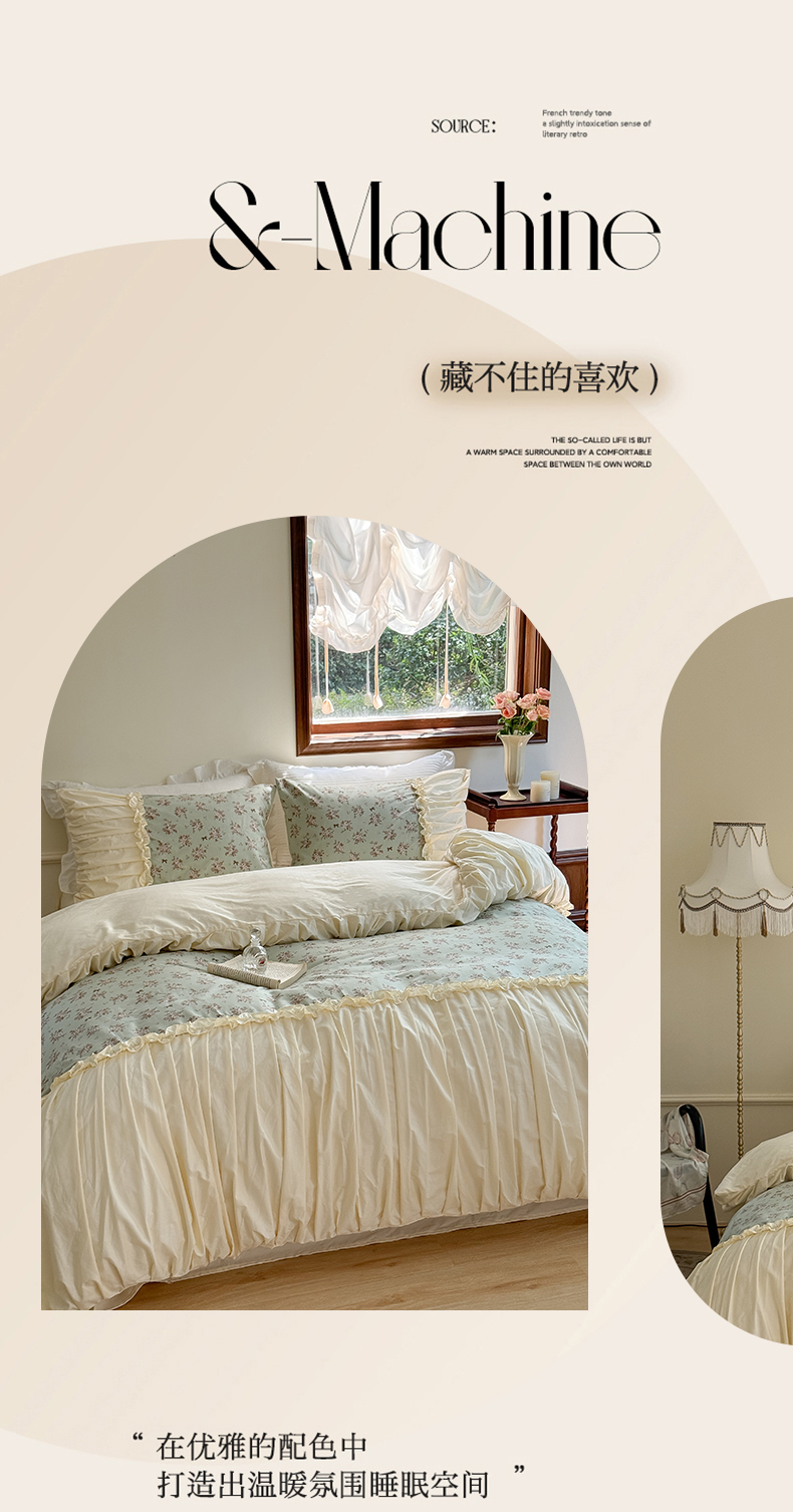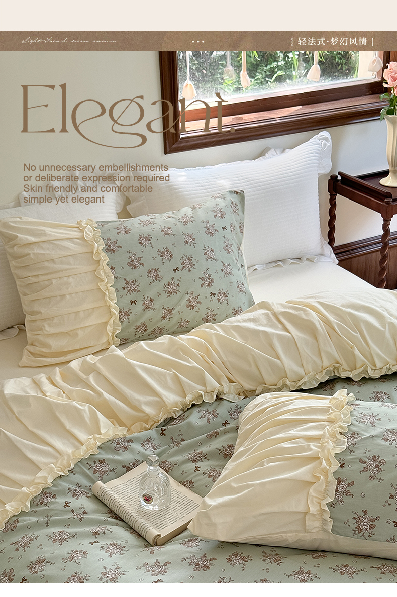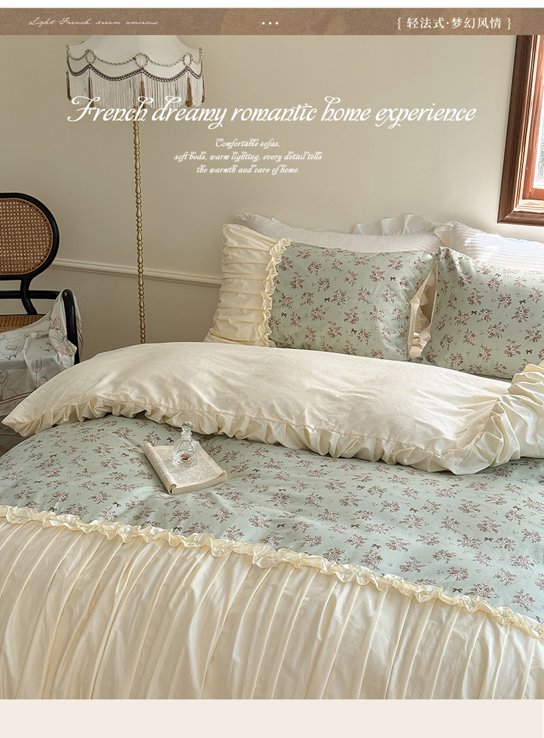 商品名称:TT.one 塔塔家居 2025新款全棉法式打褶印花四件套-花园派对 予你