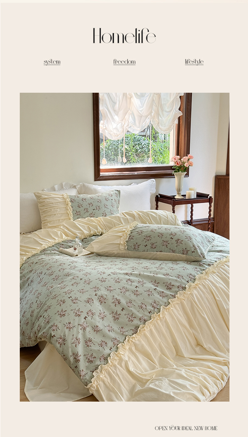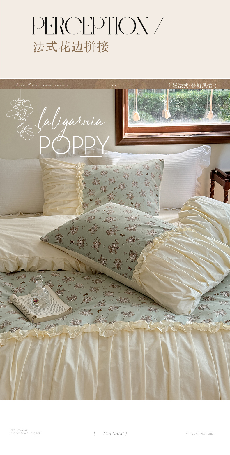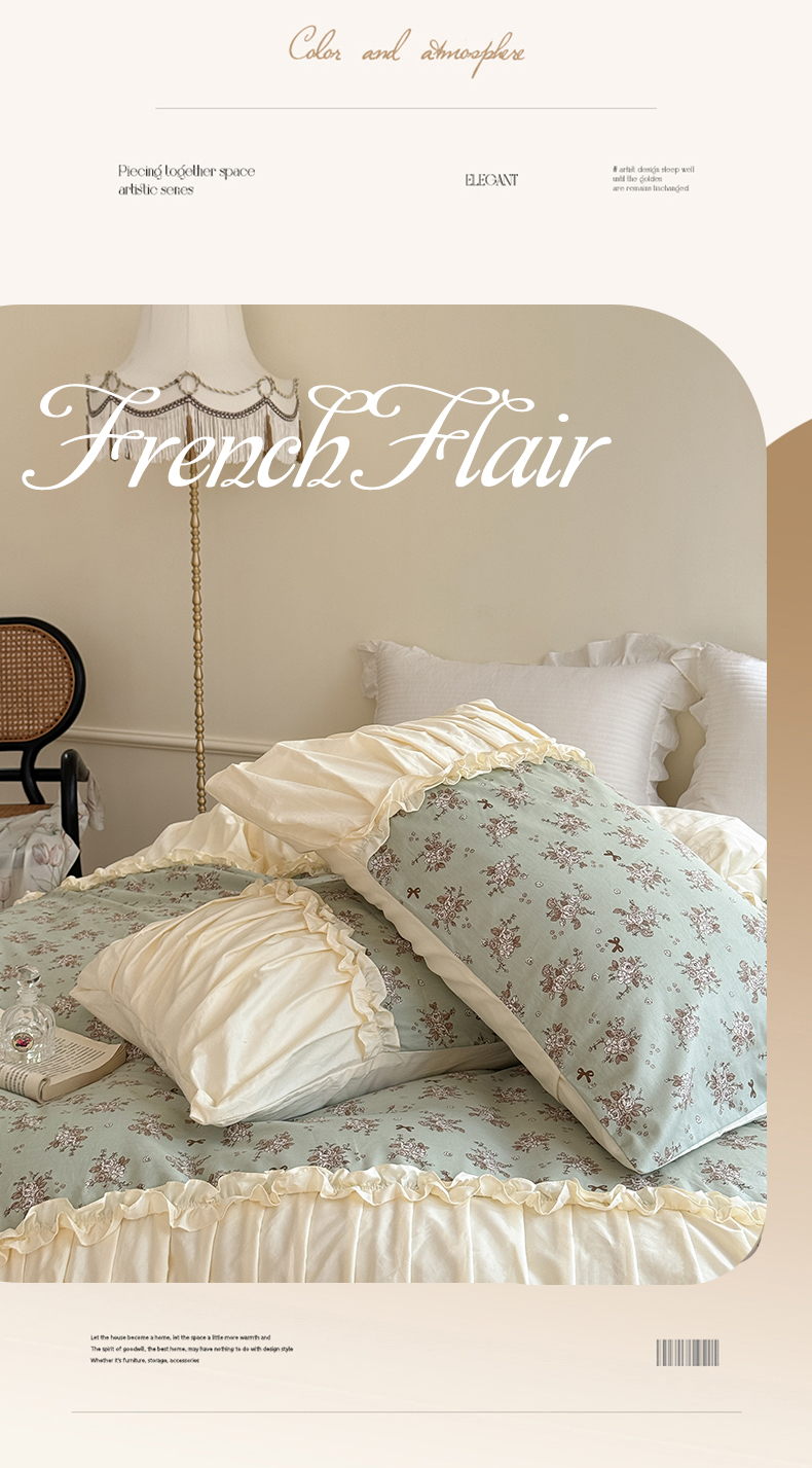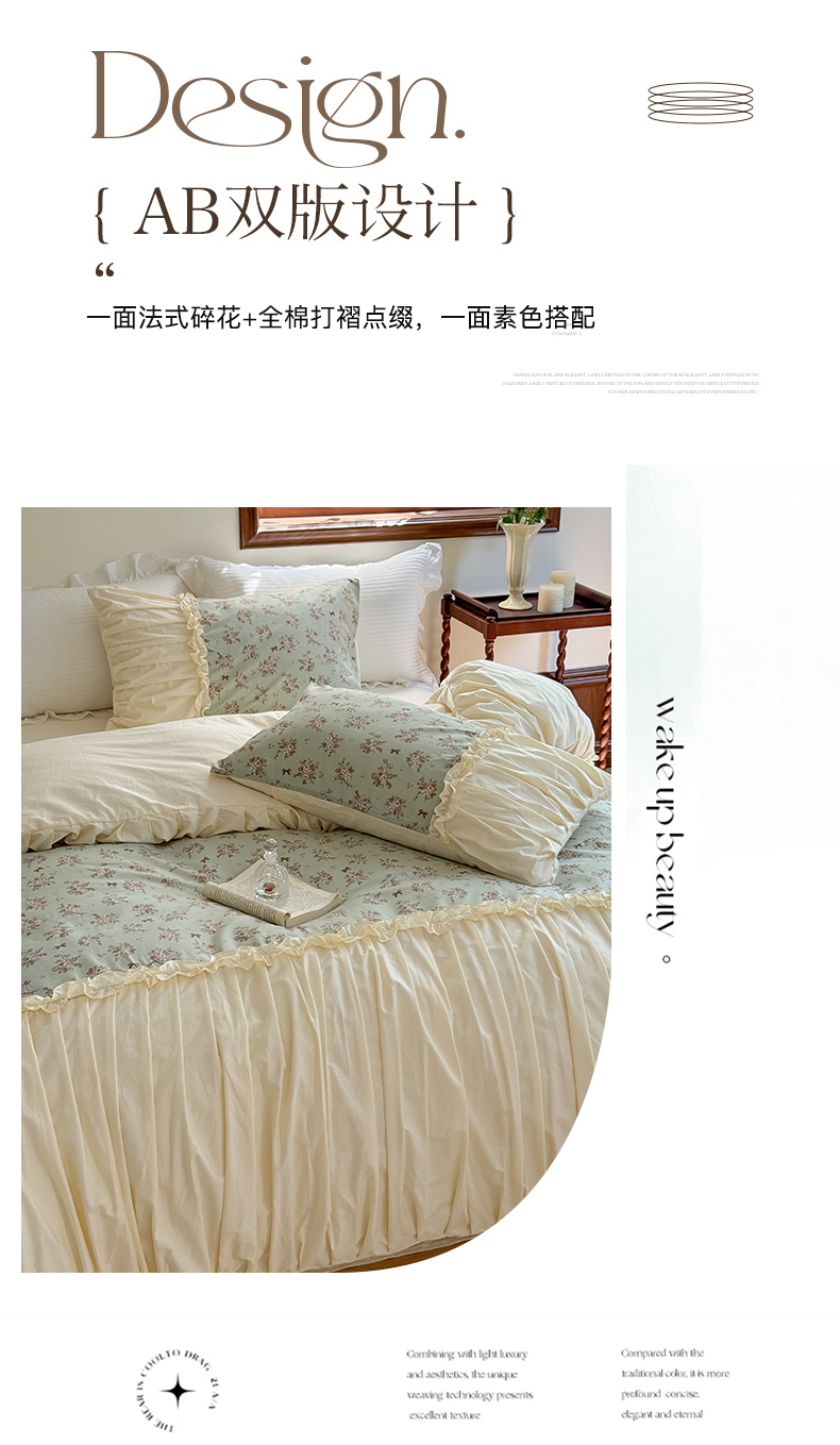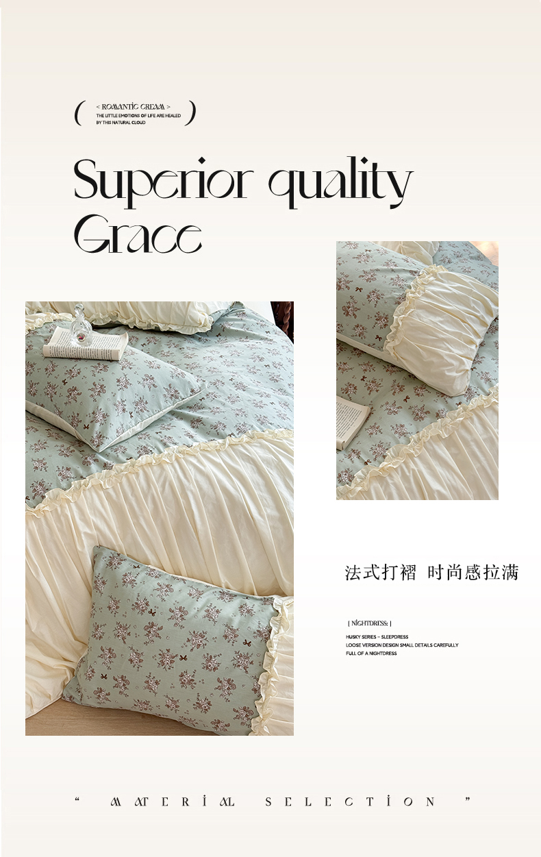 商品名称:TT.one 塔塔家居 2025新款全棉法式打褶印花四件套-花园派对 予你