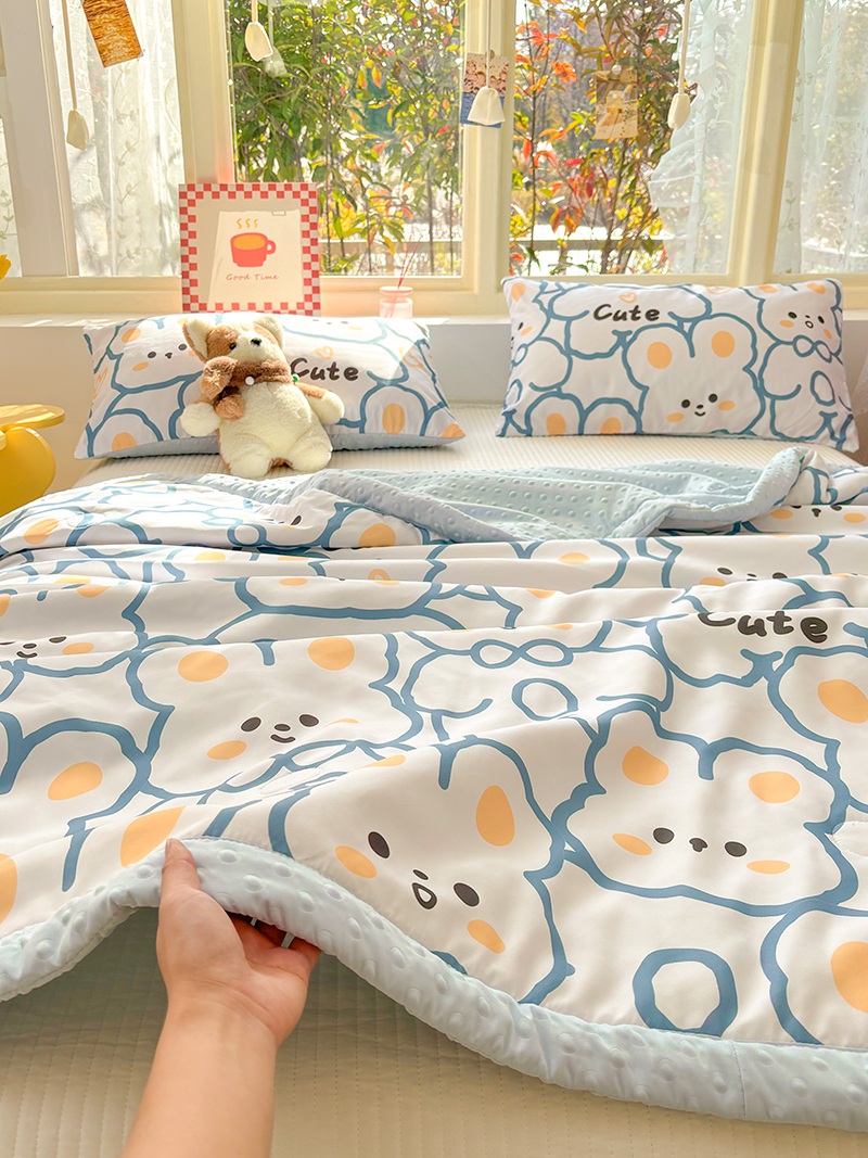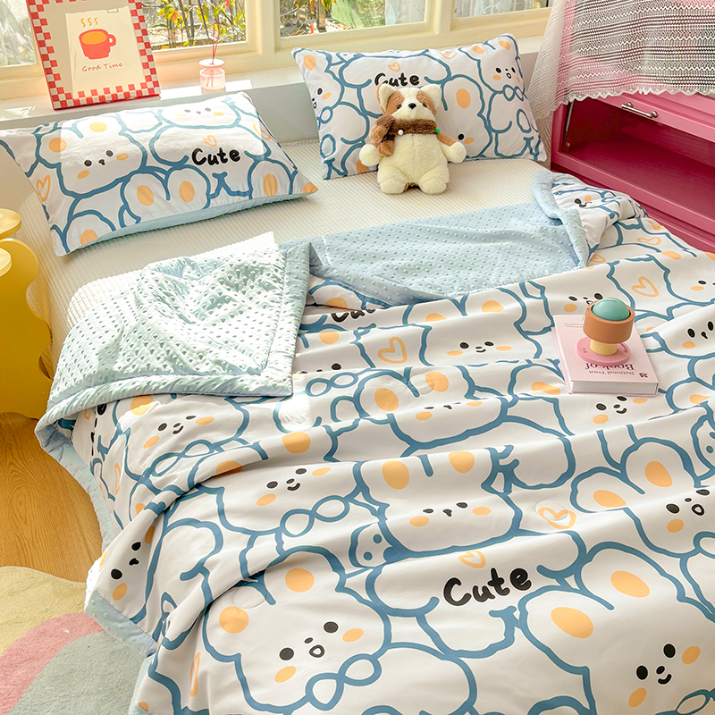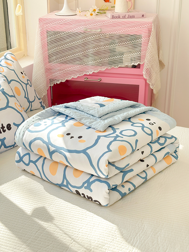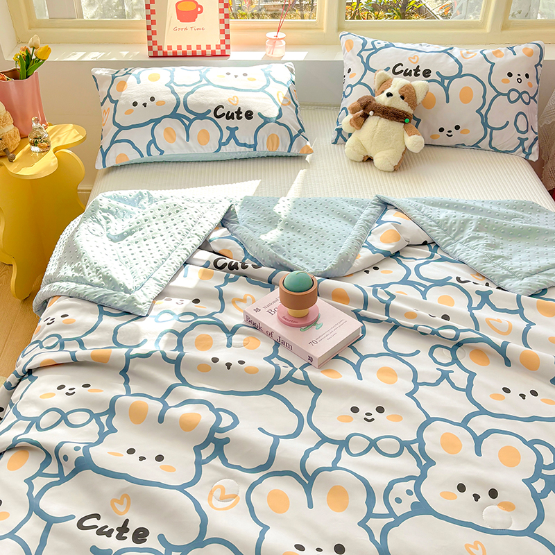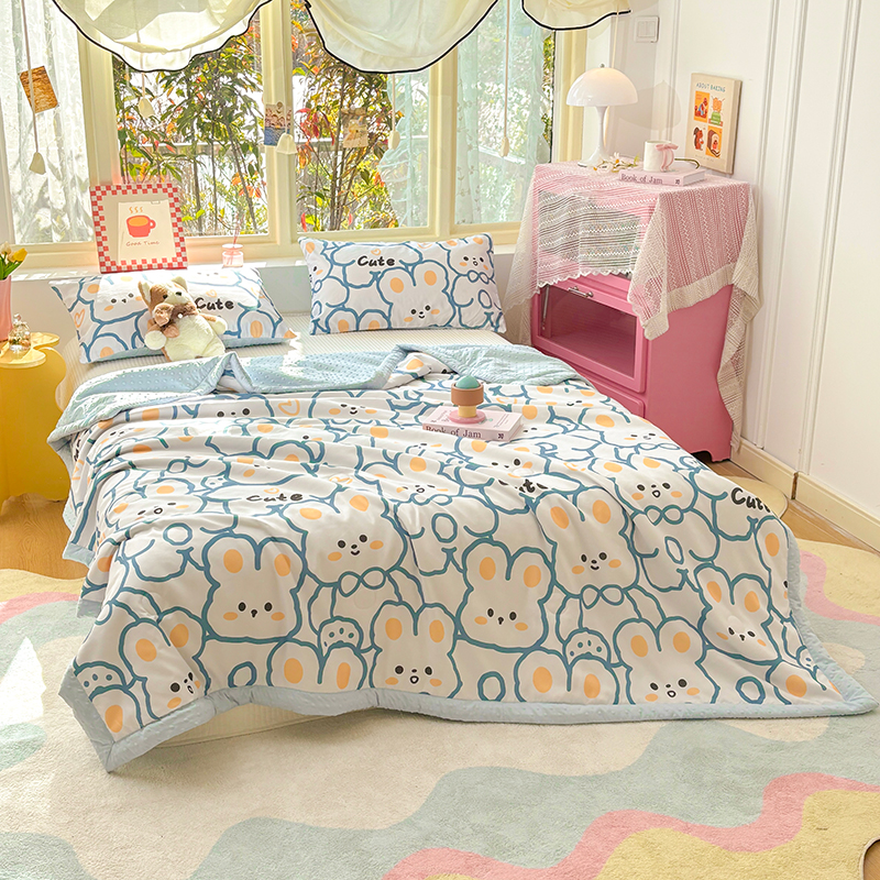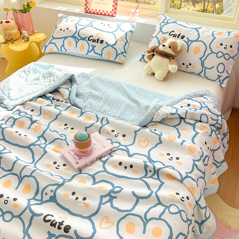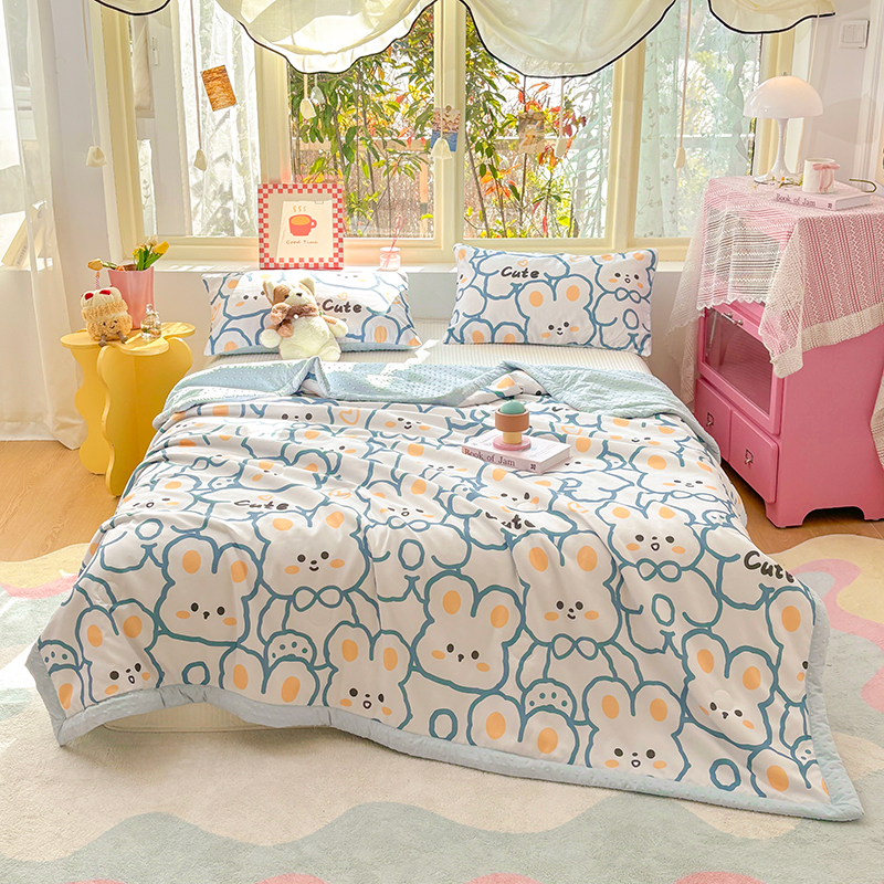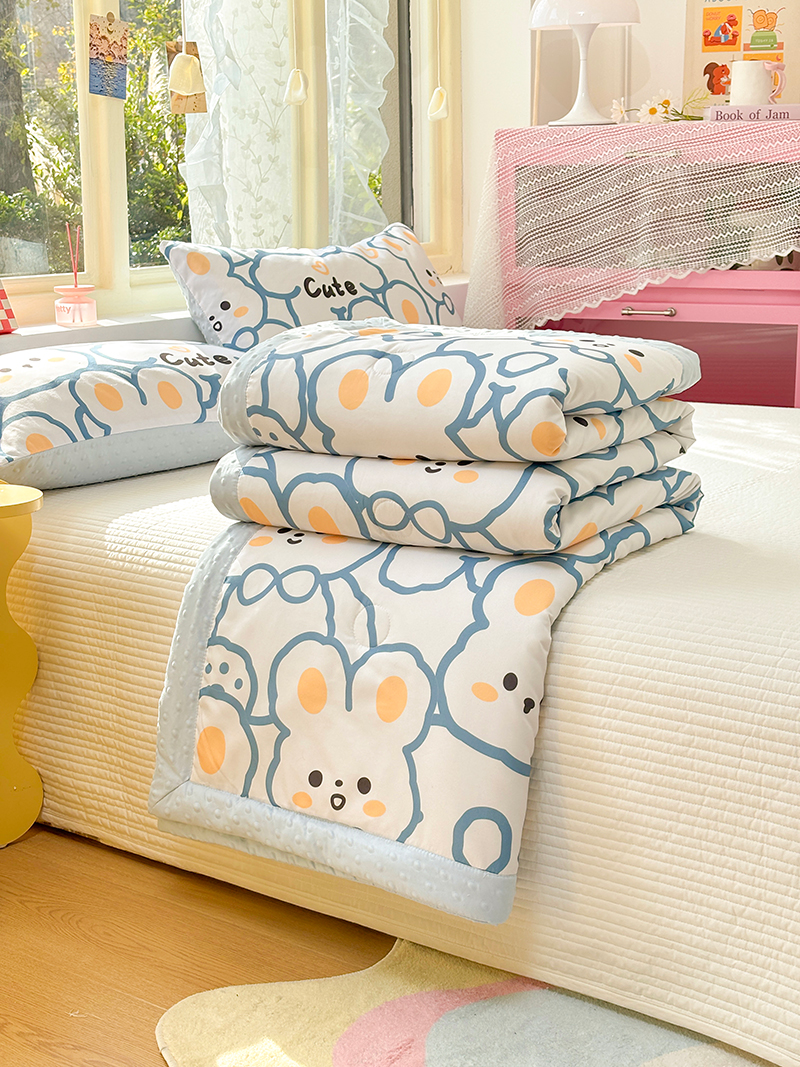 恒畅 2025新款A类水洗棉印花豆豆被抗菌夏被夏凉被空调被 晚安兔兔