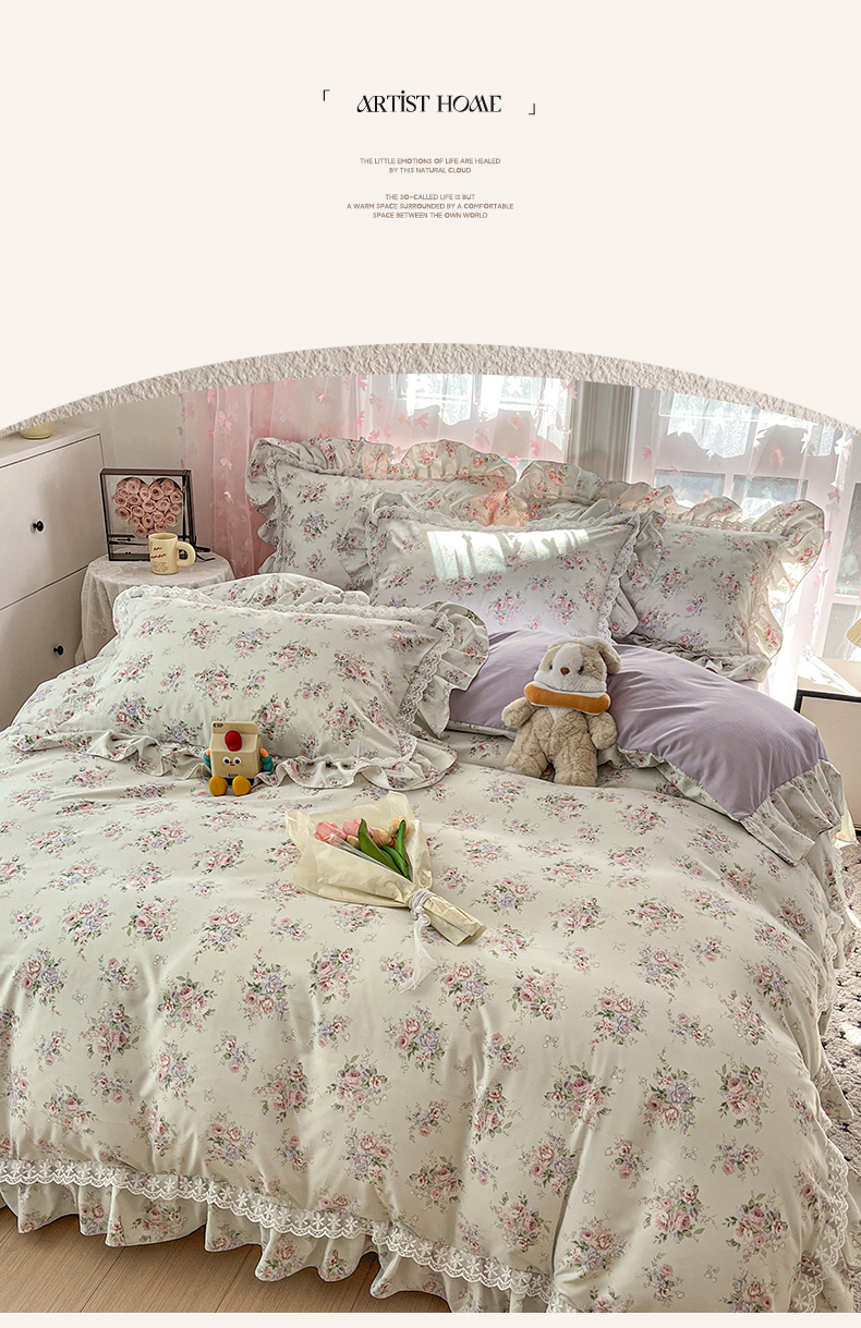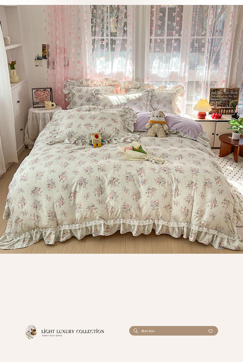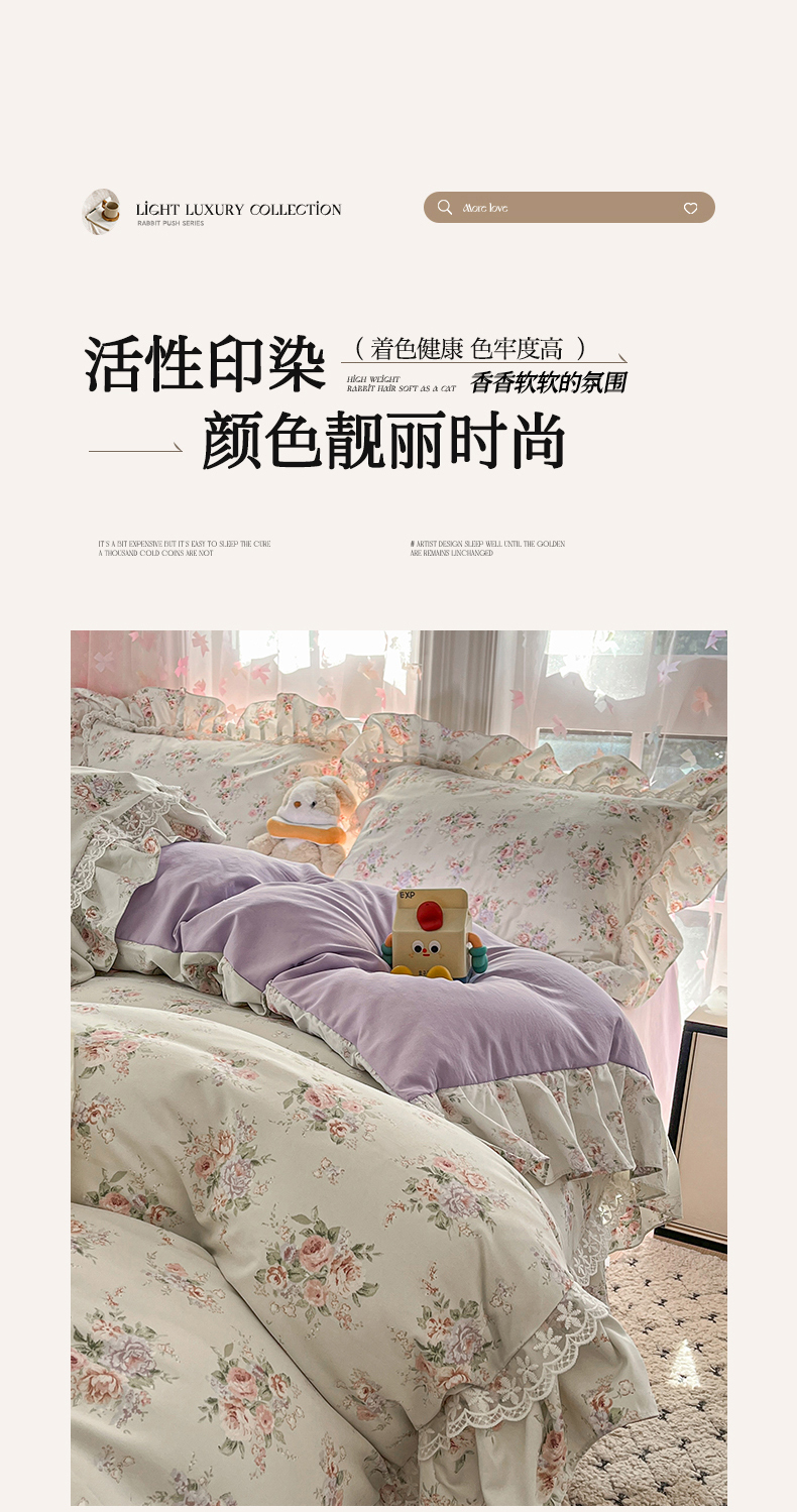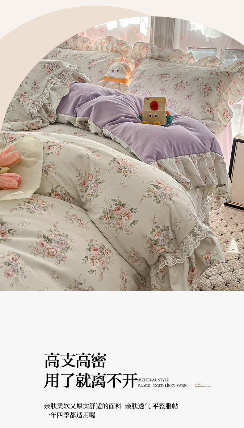 喜梦缘家纺 2025公主风云柔棉工艺款四件套 晨花浅语