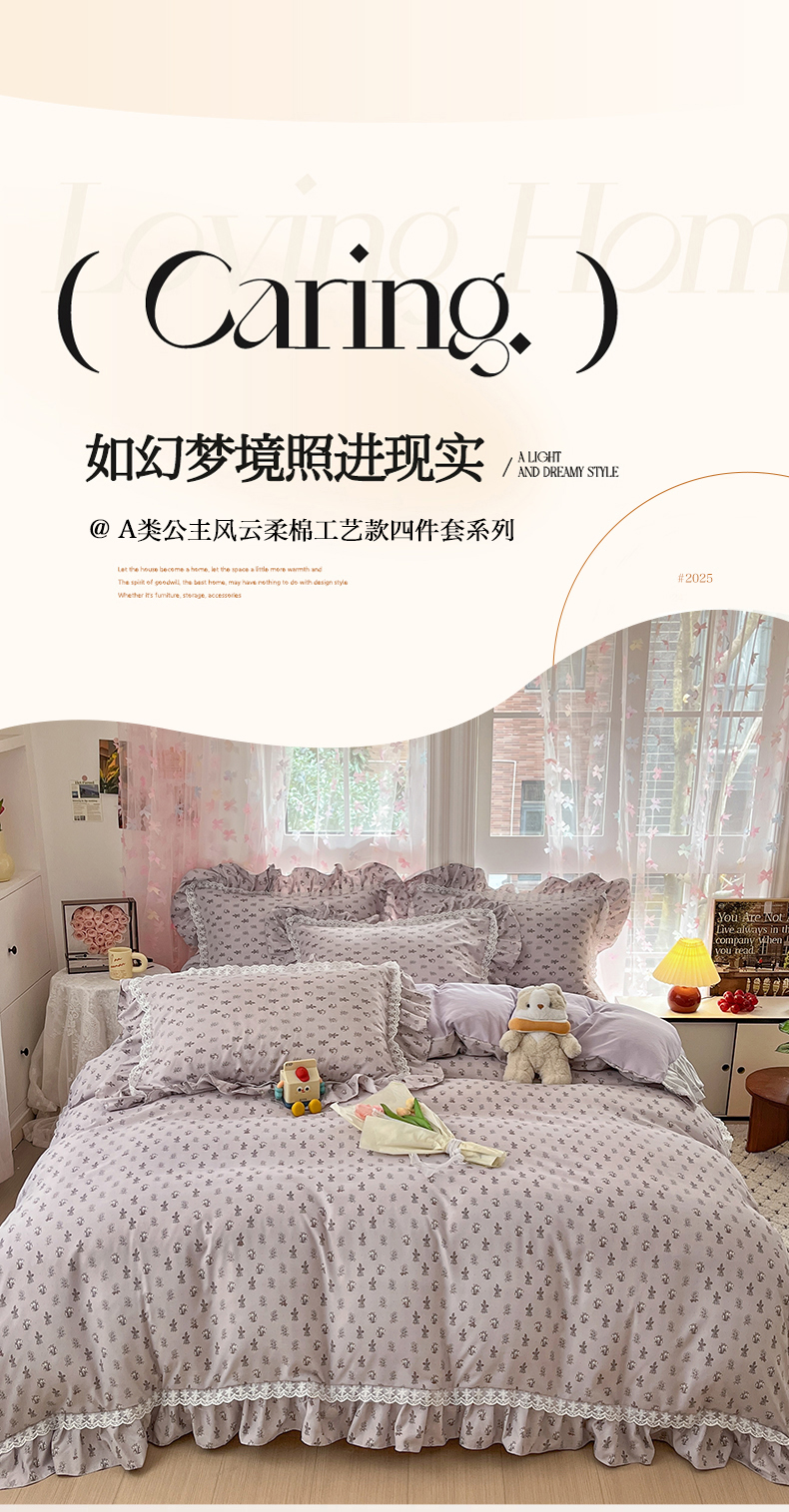 喜梦缘家纺 2025A类公主风云柔棉工艺款四件套 梦影