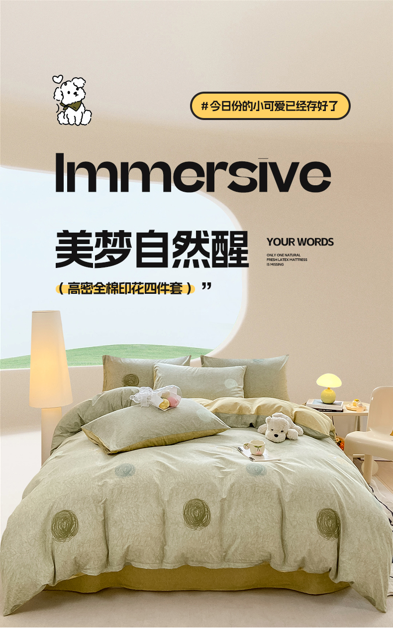 宜家坊 2025早春新品全棉纯棉喷气13070小清新印花纯棉四件套-风格二 线条小狗