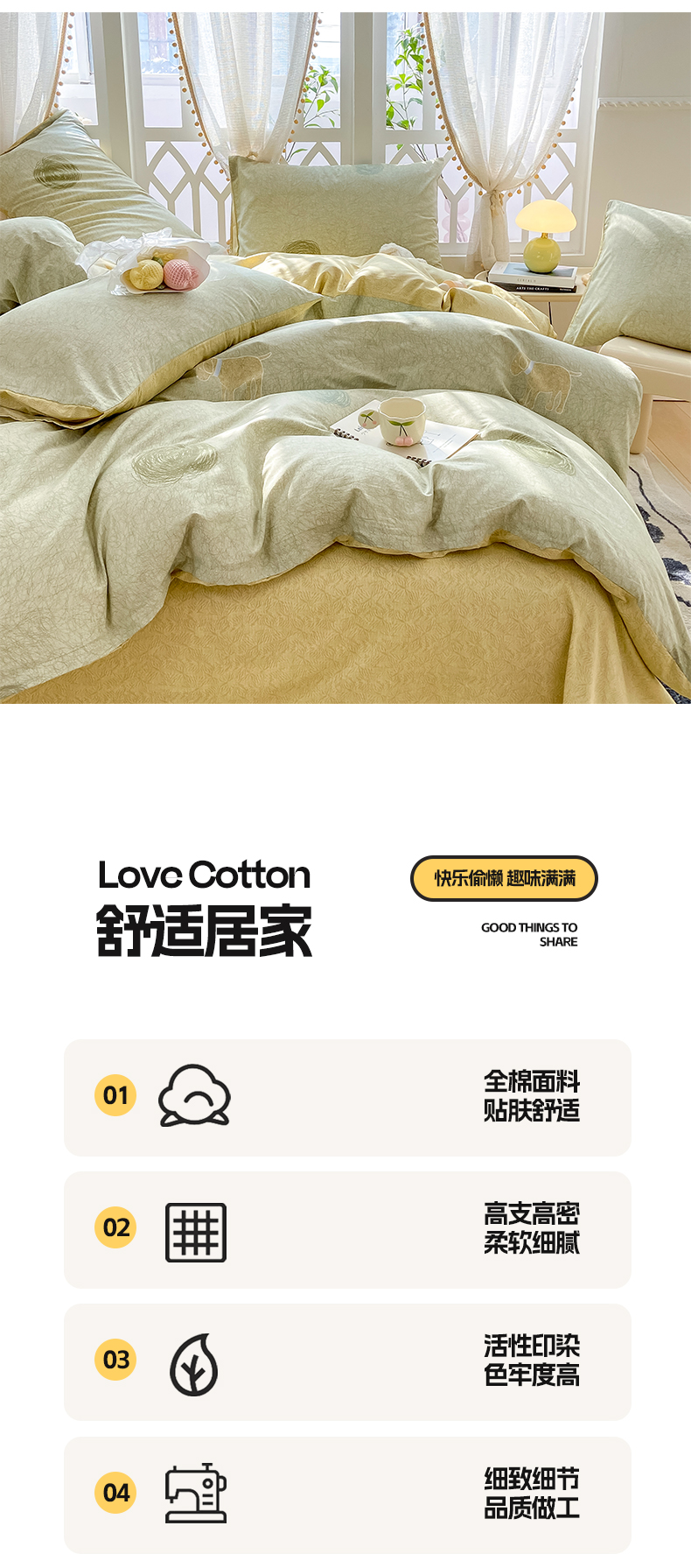 (总)宜家坊 2025新款A类全棉纯棉色织水洗棉宽边断角工艺四件套 可定制尺寸,小幸运-绿豆沙,小幸运-橙灰,小幸运-粉蓝,爱的邂逅-粉,爱的邂逅-灰,爱的邂逅-蓝,爱的邂逅-绿,幸福恋曲-粉,幸福恋曲-蓝