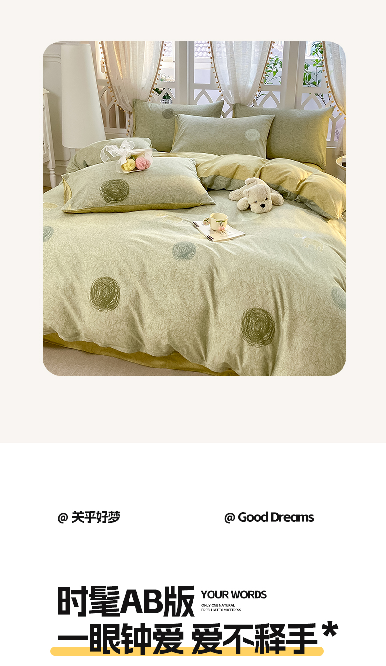 (总)宜家坊 2023新款直播韩版印花花边款牛奶绒四件套,比格熊,草莓兔,春暖花开,告白,加油鸭,流星花园,萌萌熊,牛油果,千鸟格,小女孩,一见倾心,郁金香