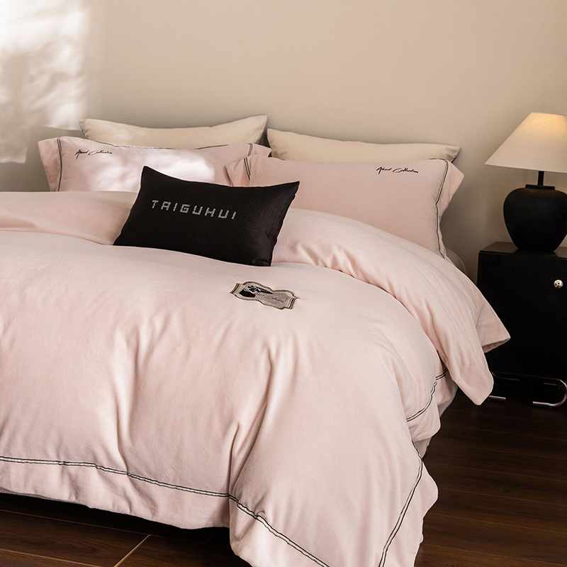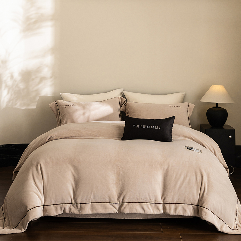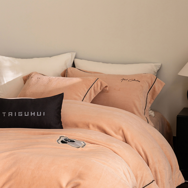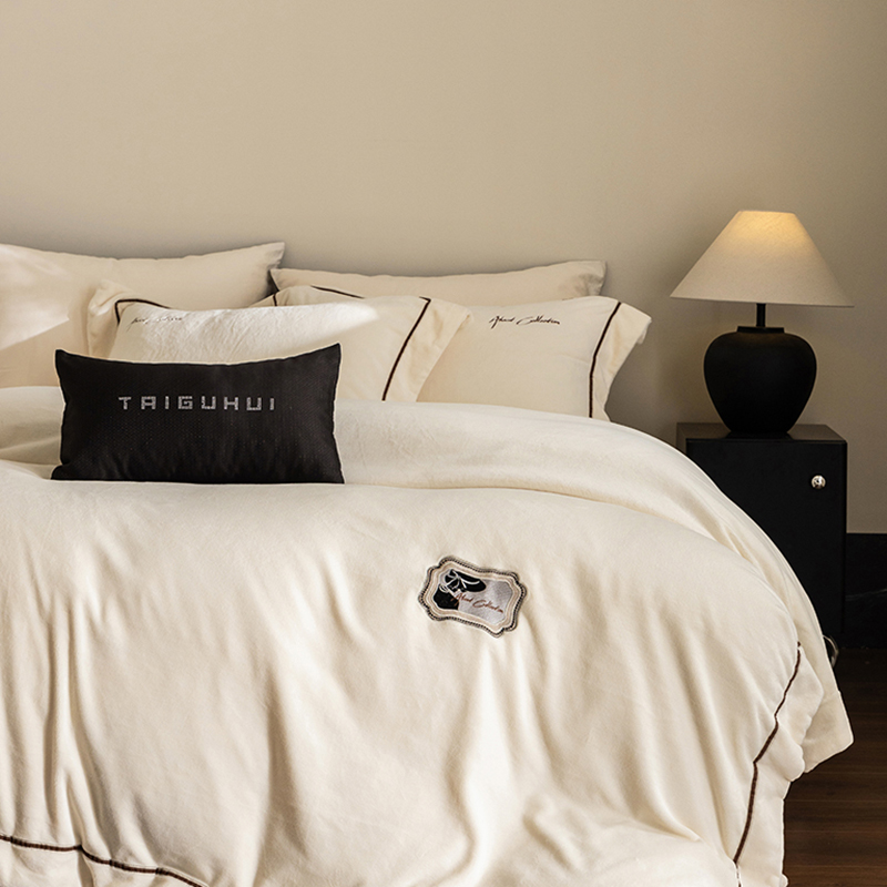 太古汇家居 2025新款云肤绒绒绣花赫本系列四件套 绒赫本-奶咖