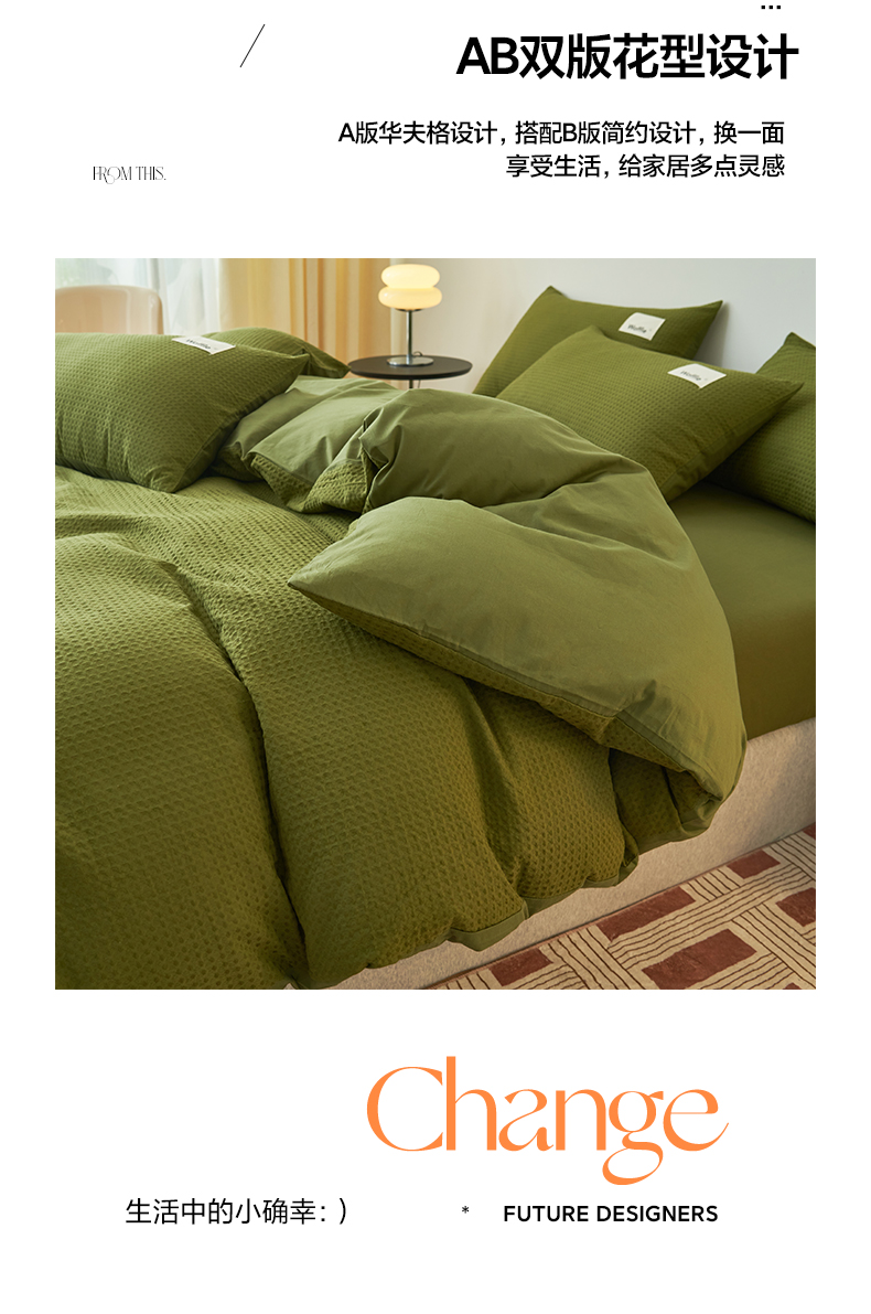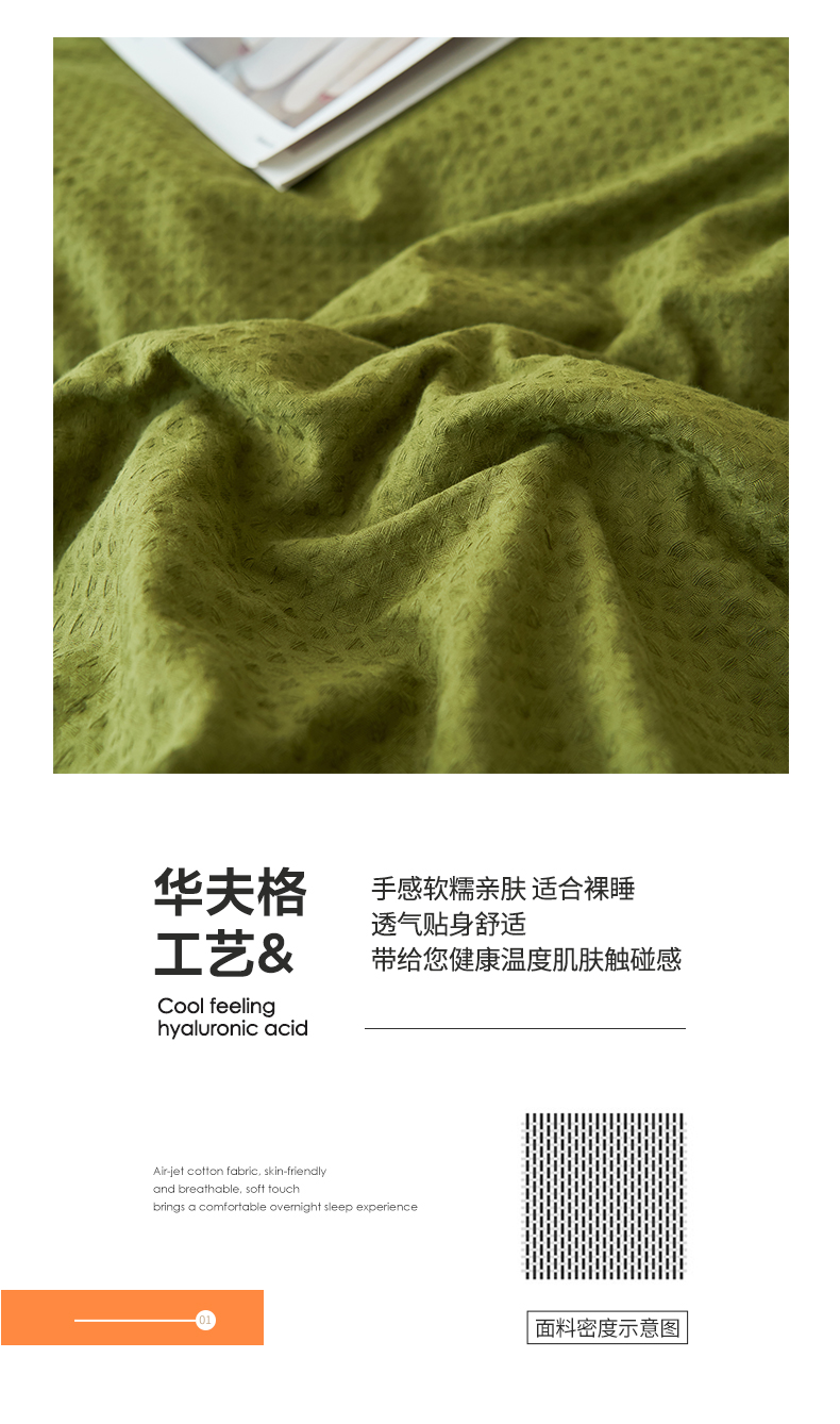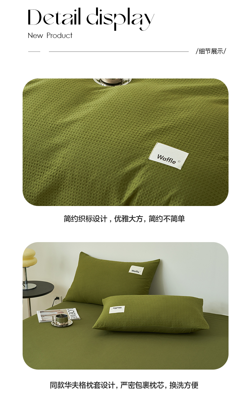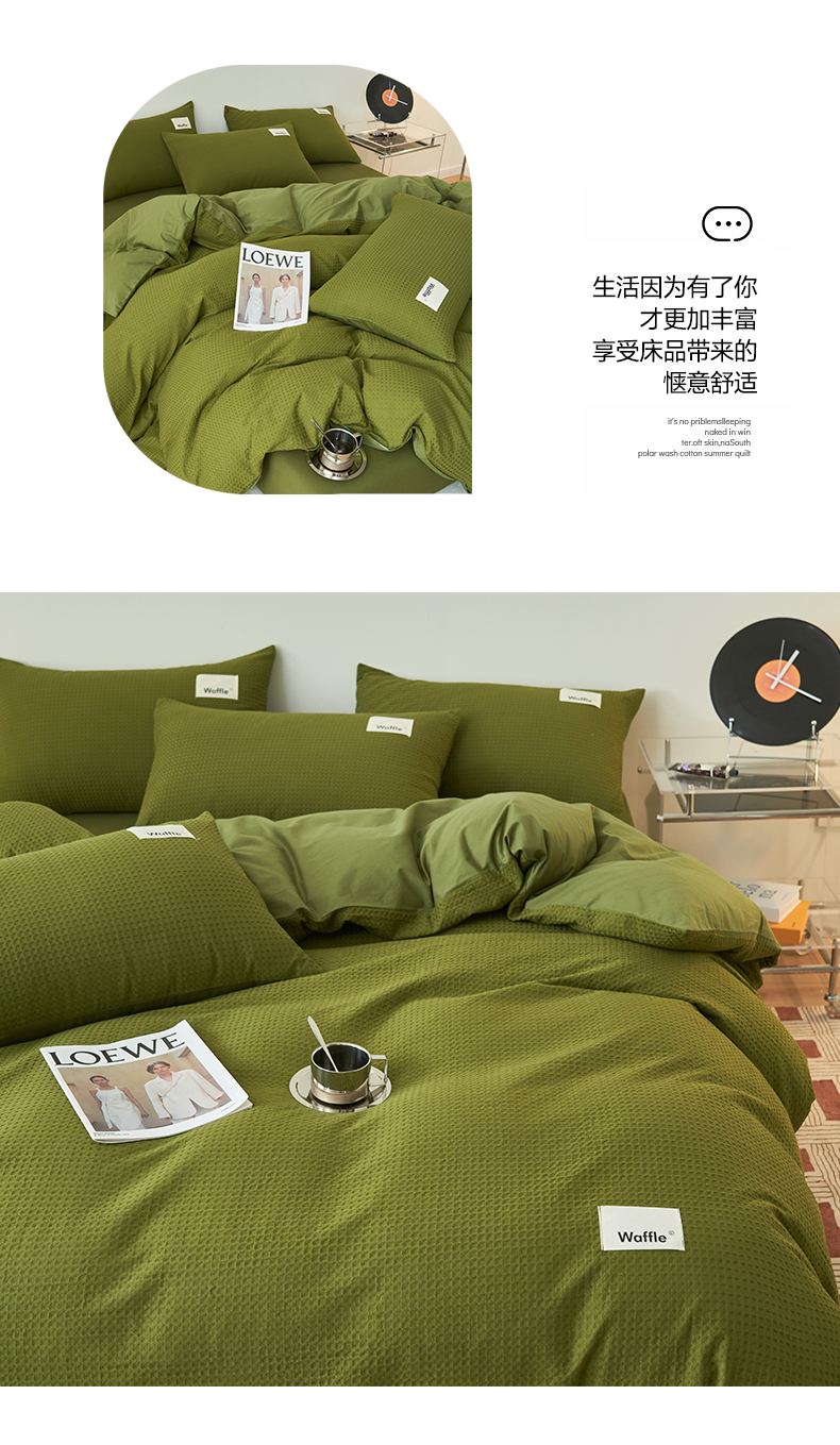 商品名称:2025新款40S纯棉华夫格四件套 华夫格-橄榄绿