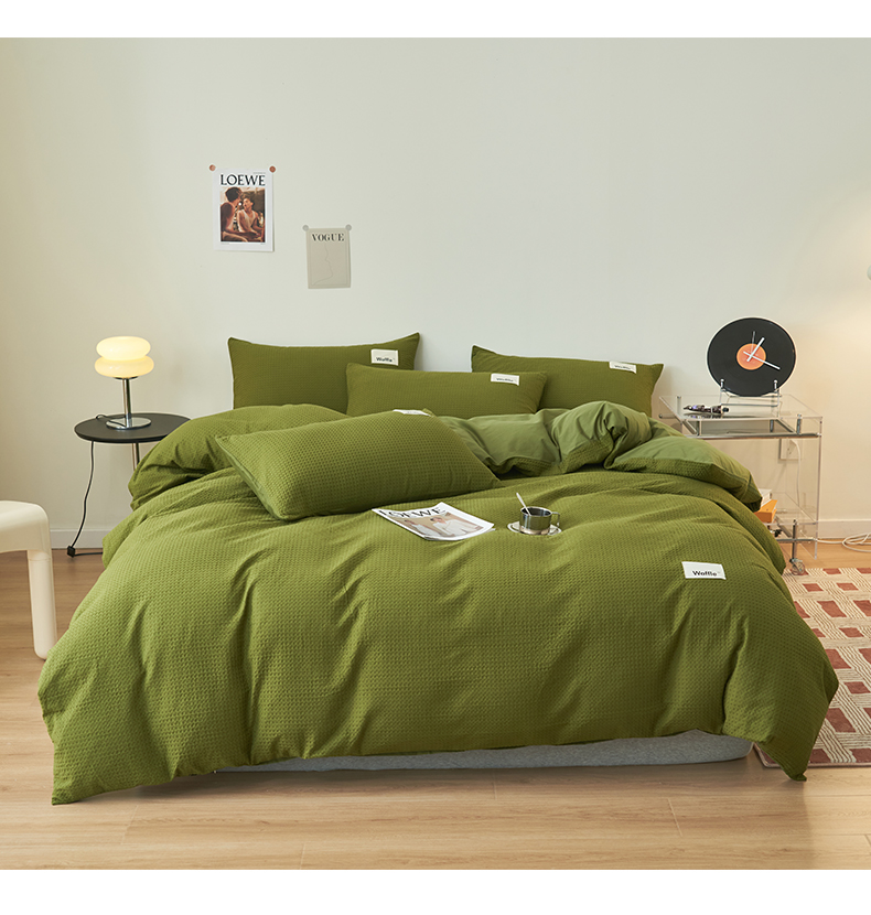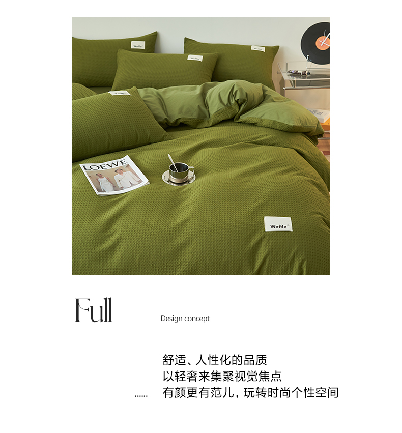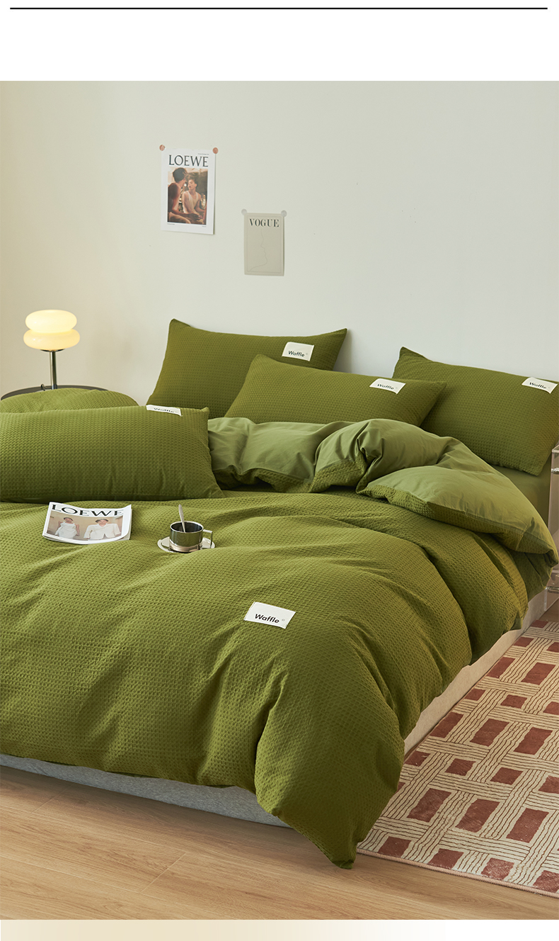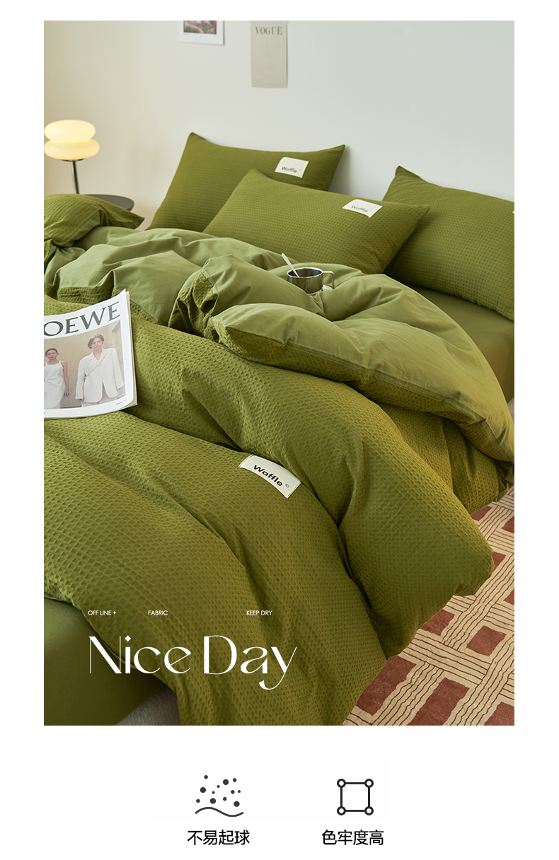 2025新款40S纯棉华夫格四件套 华夫格-橄榄绿