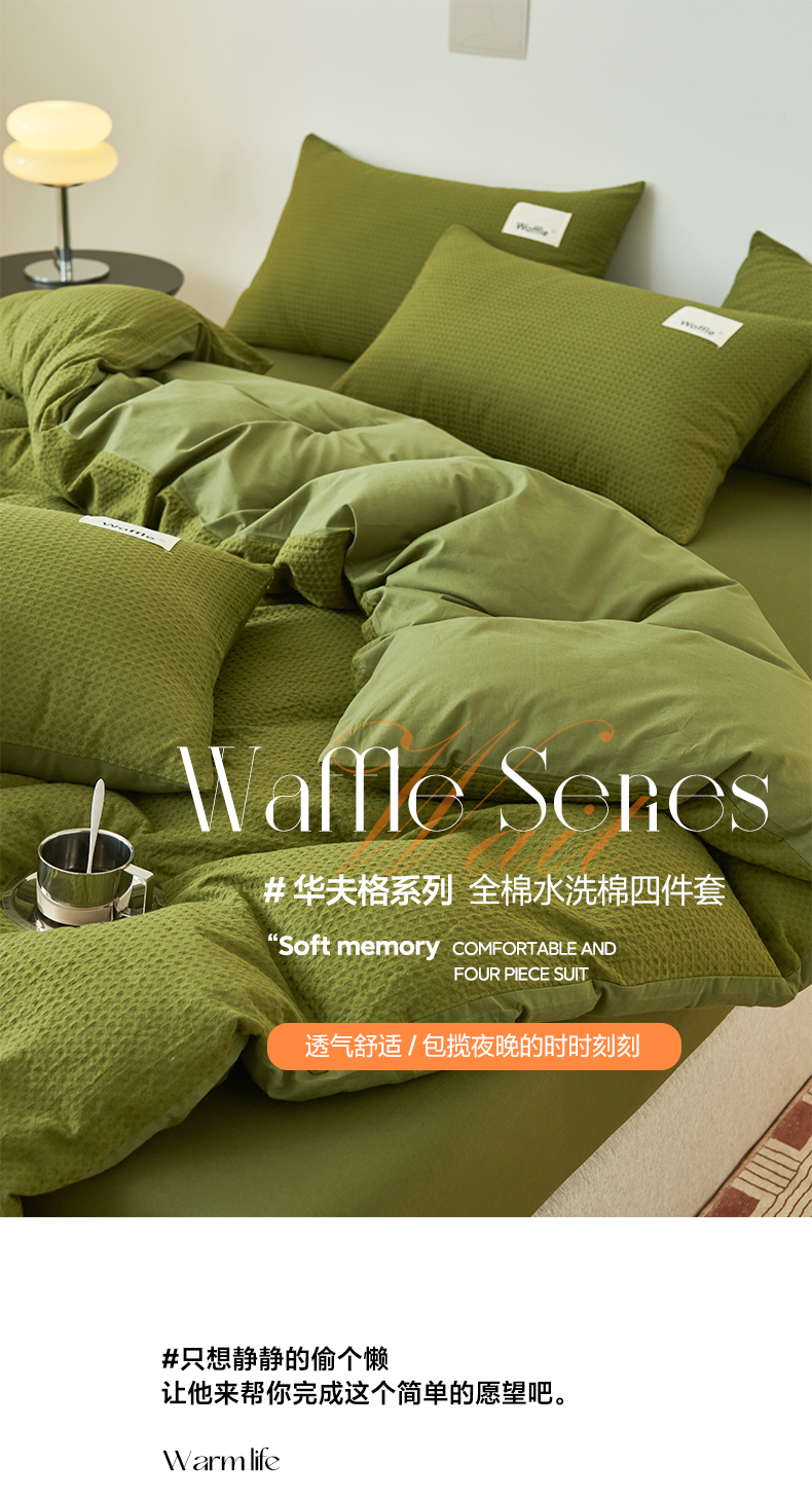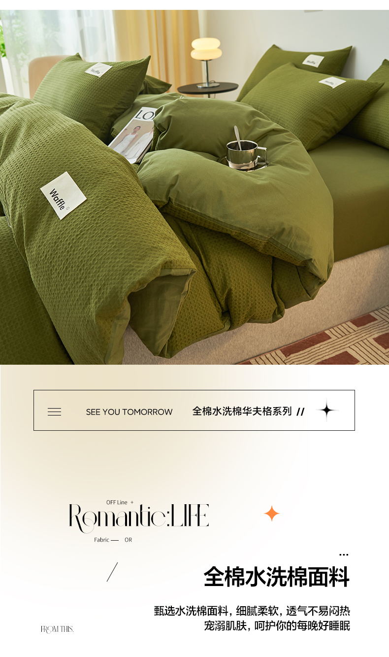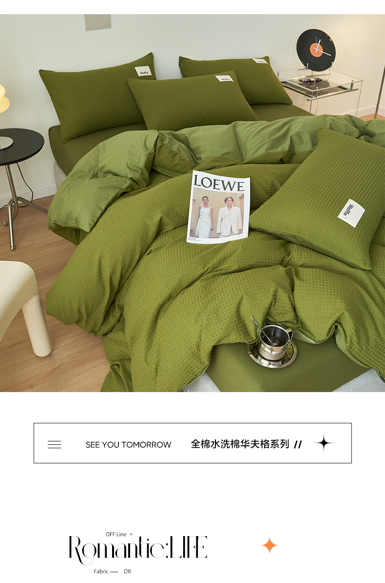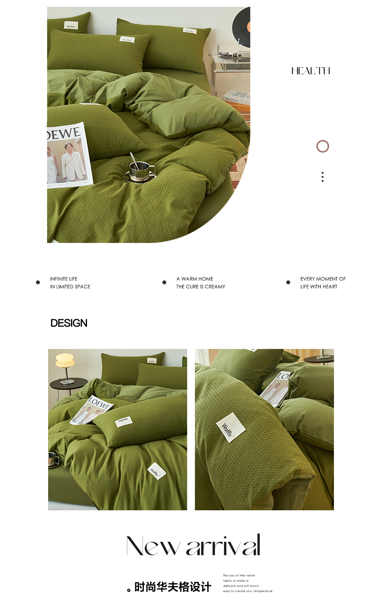 2025新款40S纯棉华夫格四件套 华夫格-橄榄绿