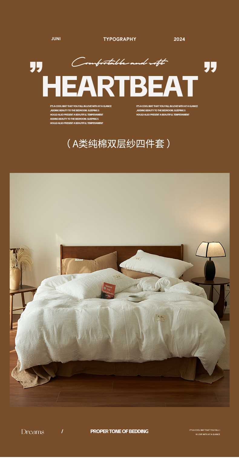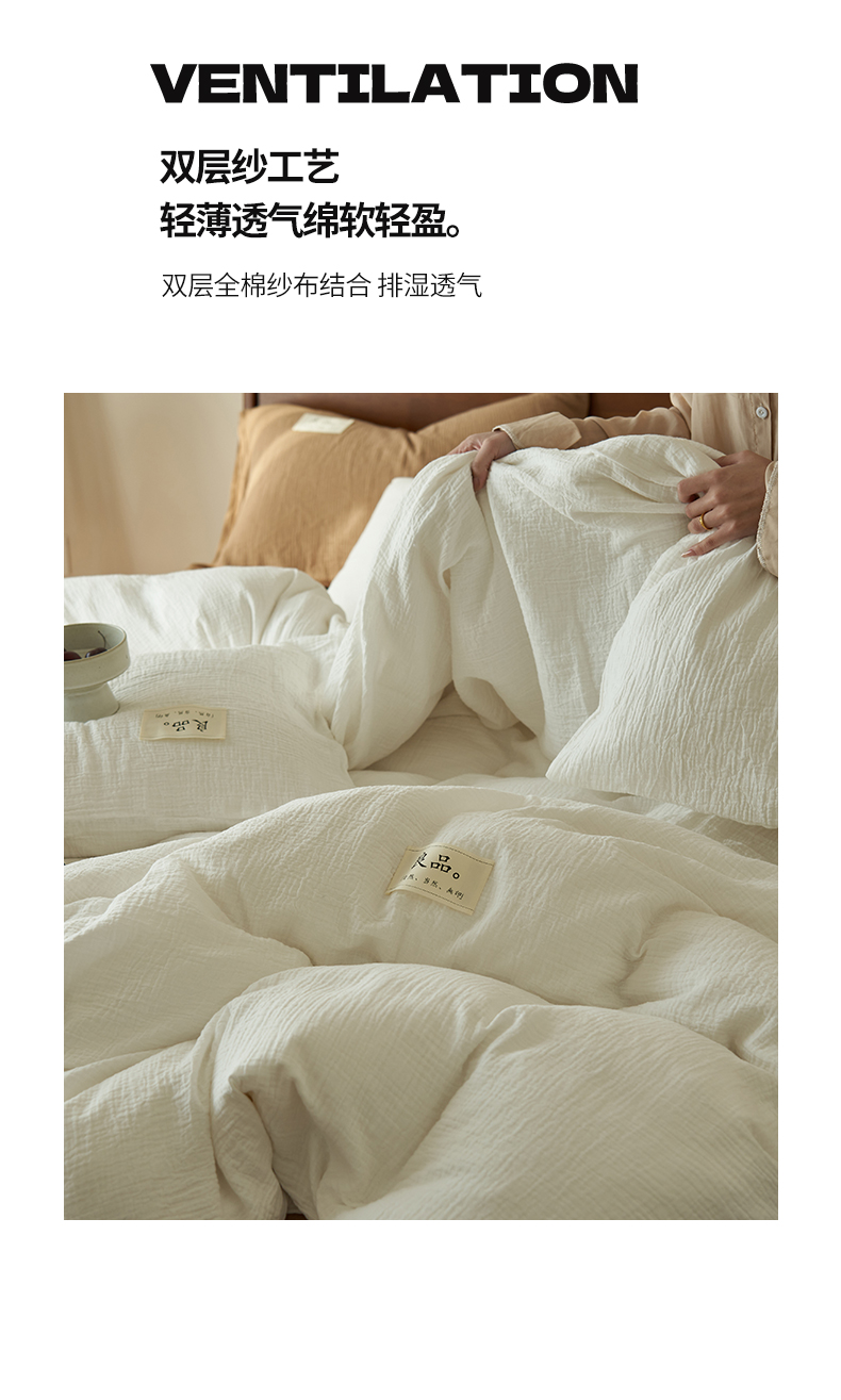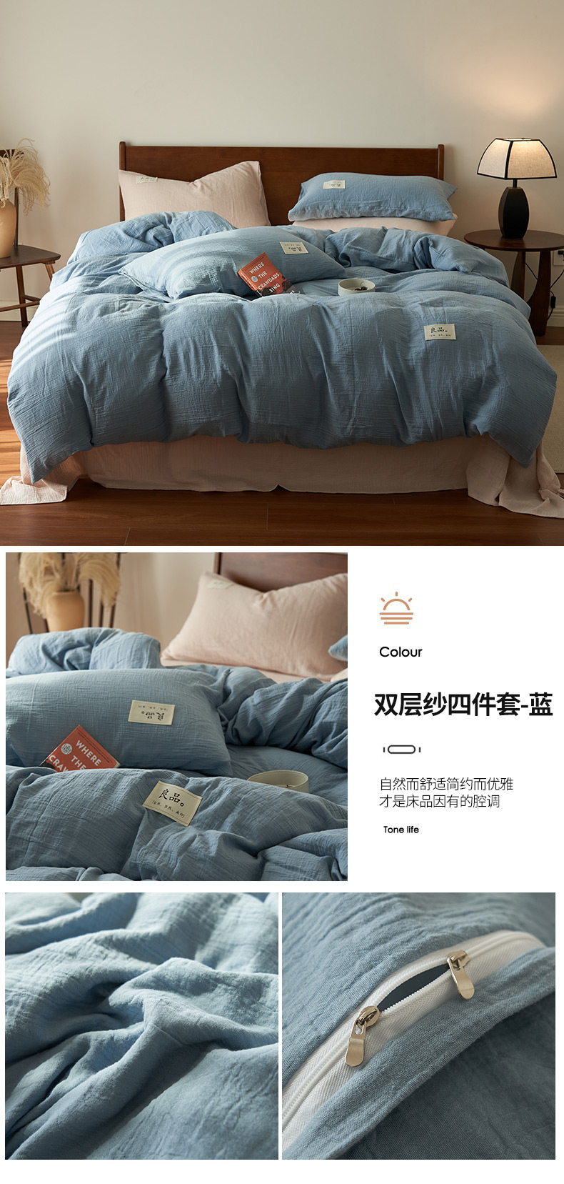 商品名称:2025新款纯棉双层纱四件套 双层纱四件套-豆沙
