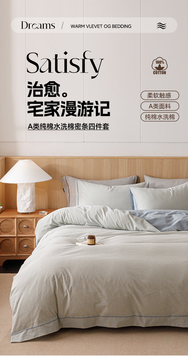商品名称:2025新款纯棉水洗棉简约密条四件套 密条四件套-浅蓝
