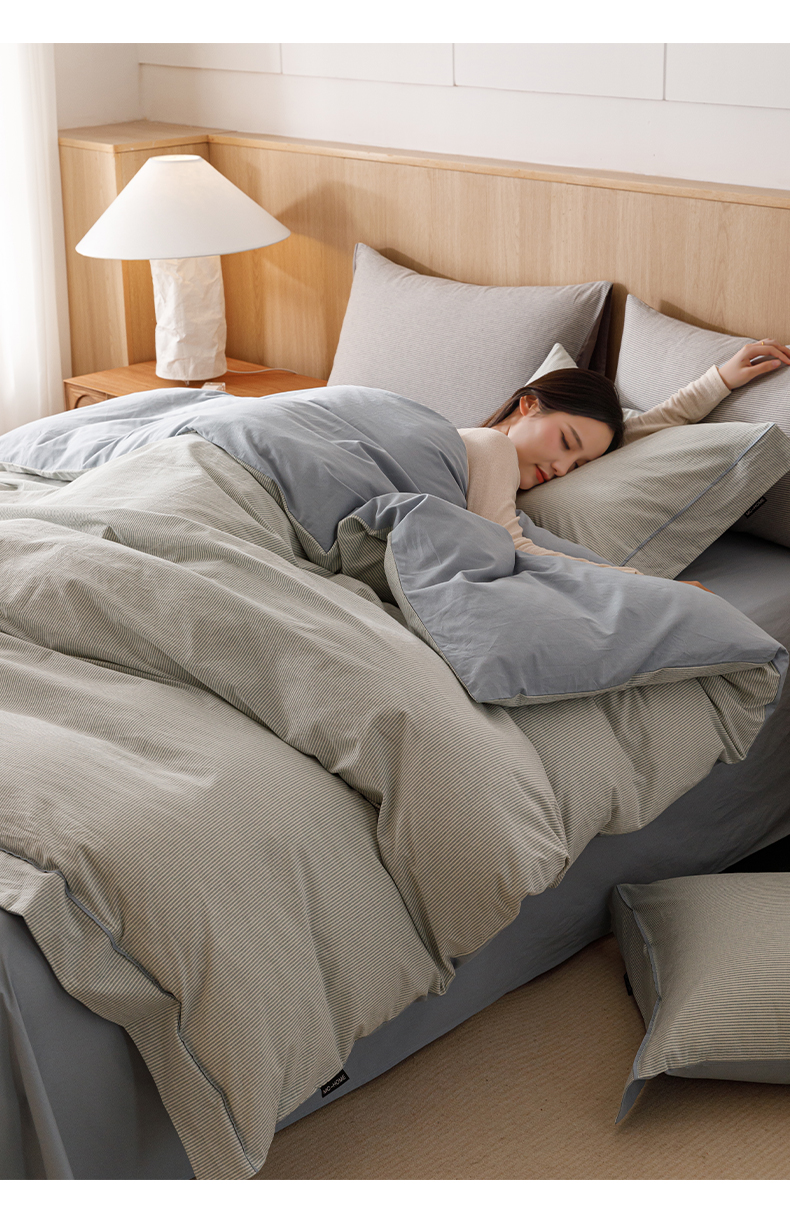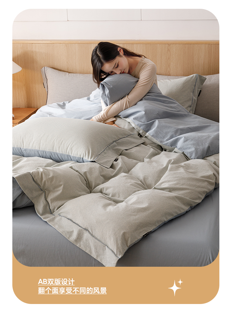 (总)寐绸家纺 2025新款纯棉水洗棉简约双拼大豆纤维夏被四件套,宾利蓝+浅灰,豆沙粉+浅灰,米白+青绿,牛仔蓝+浅灰,浅灰+杏色,天蓝+米黄