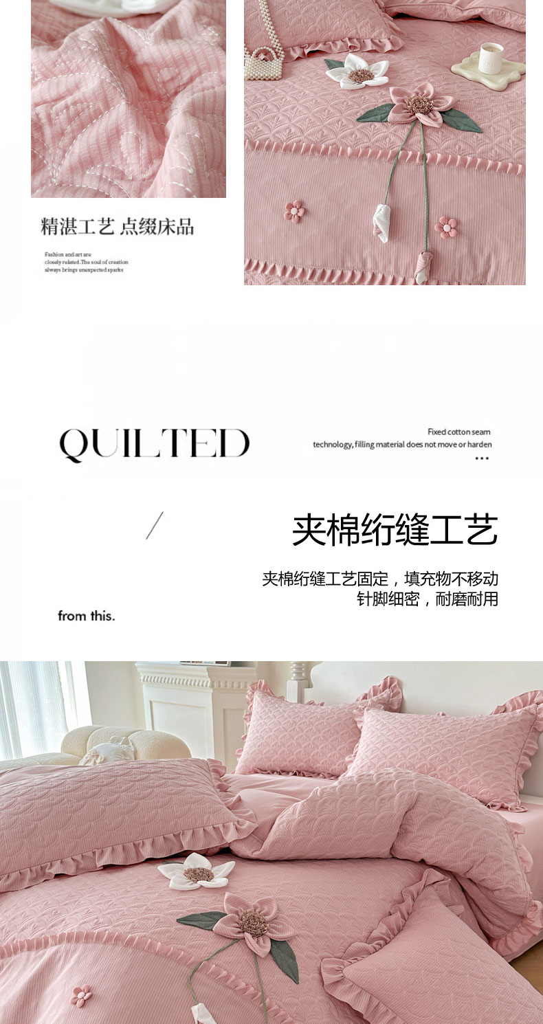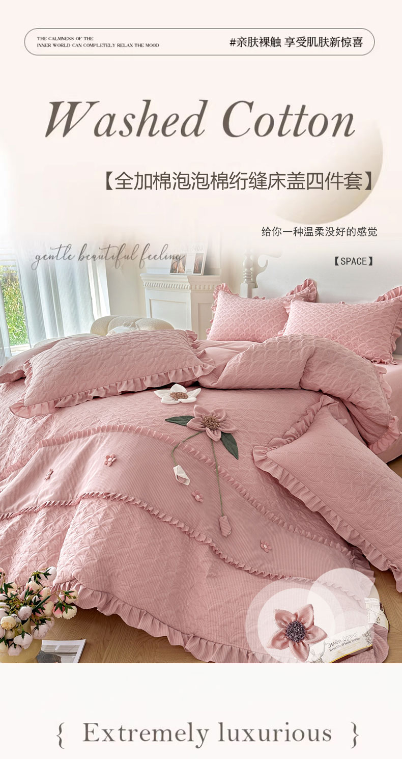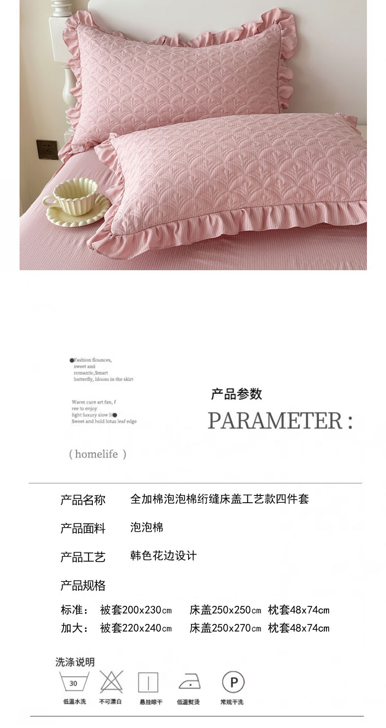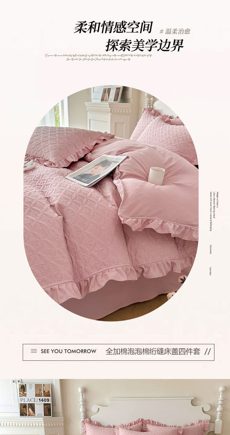 兴美佳家纺 2025新款全加棉泡泡棉亲肤绗缝四件套-爱的家园 爱的家园-藕粉