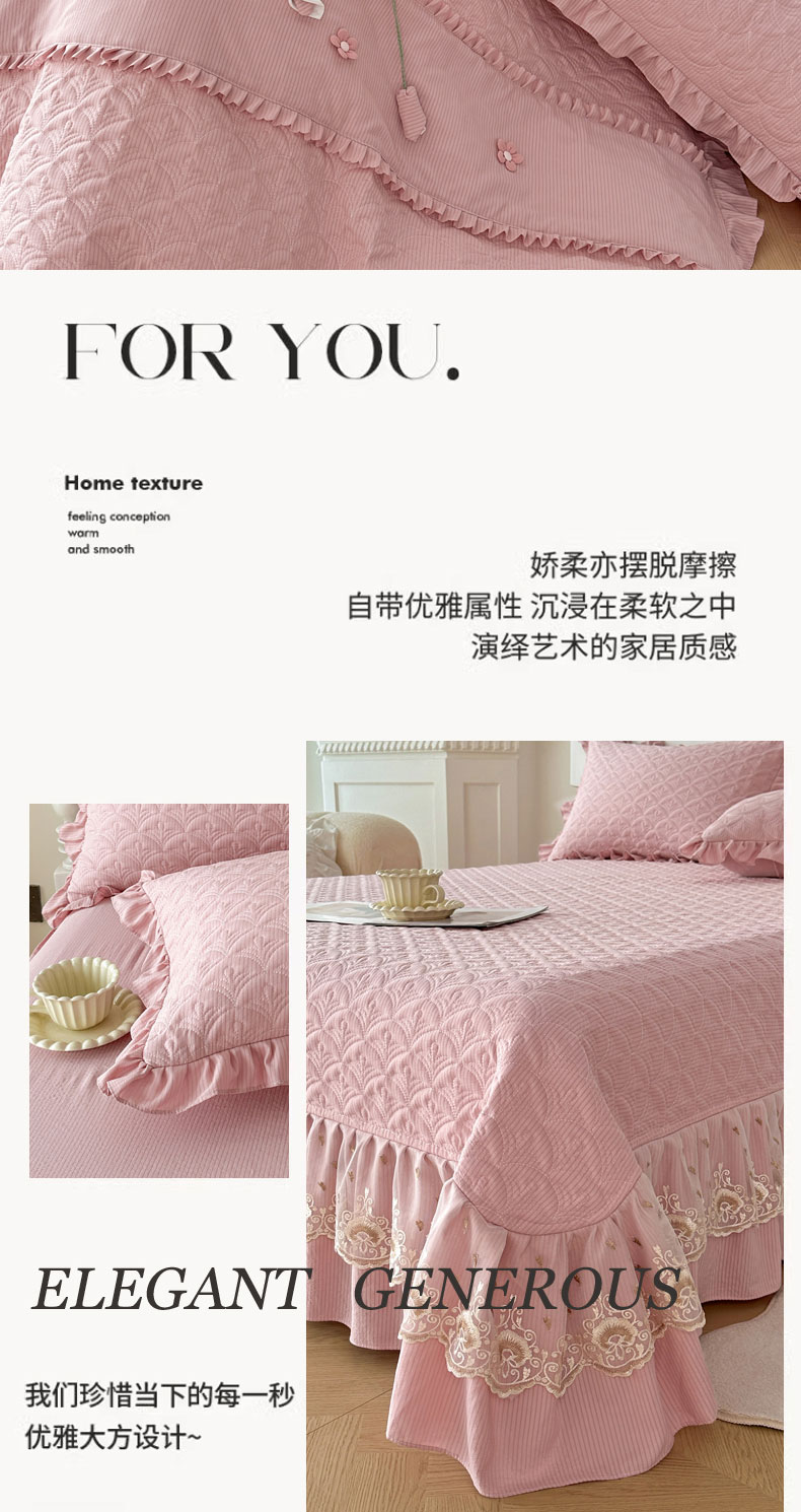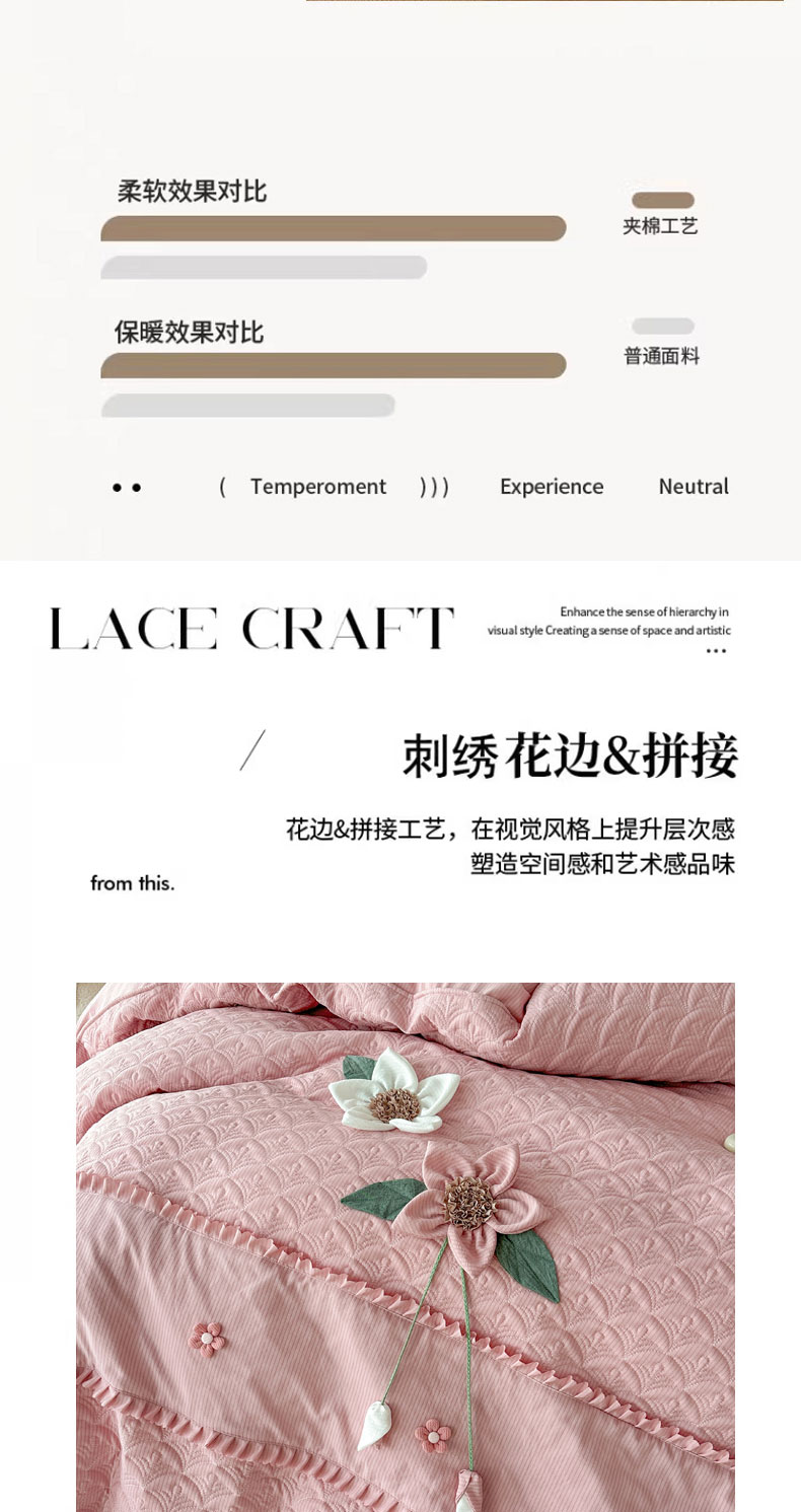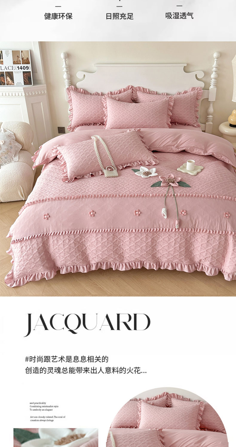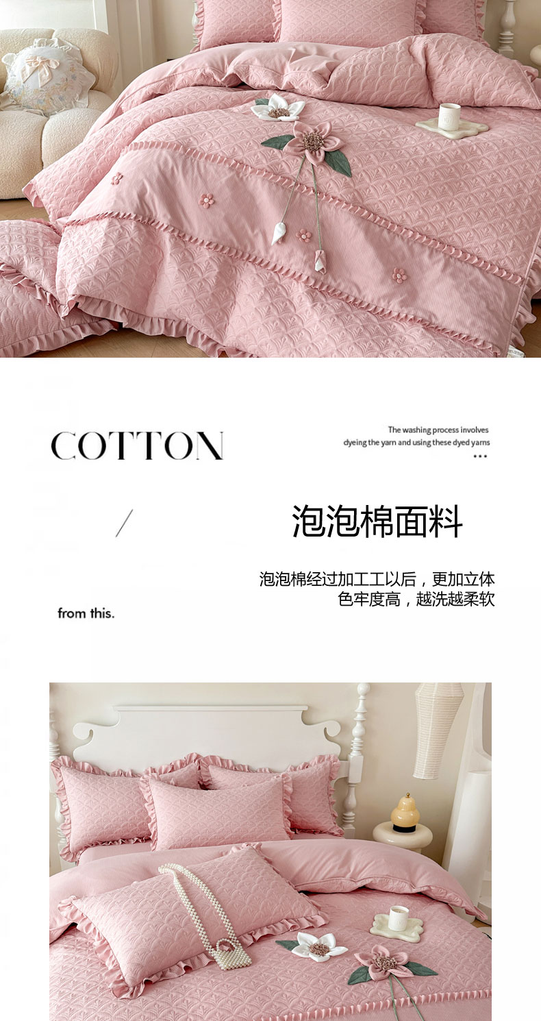 兴美佳家纺 2025新款全加棉泡泡棉亲肤绗缝四件套-爱的家园 爱的家园-藕粉