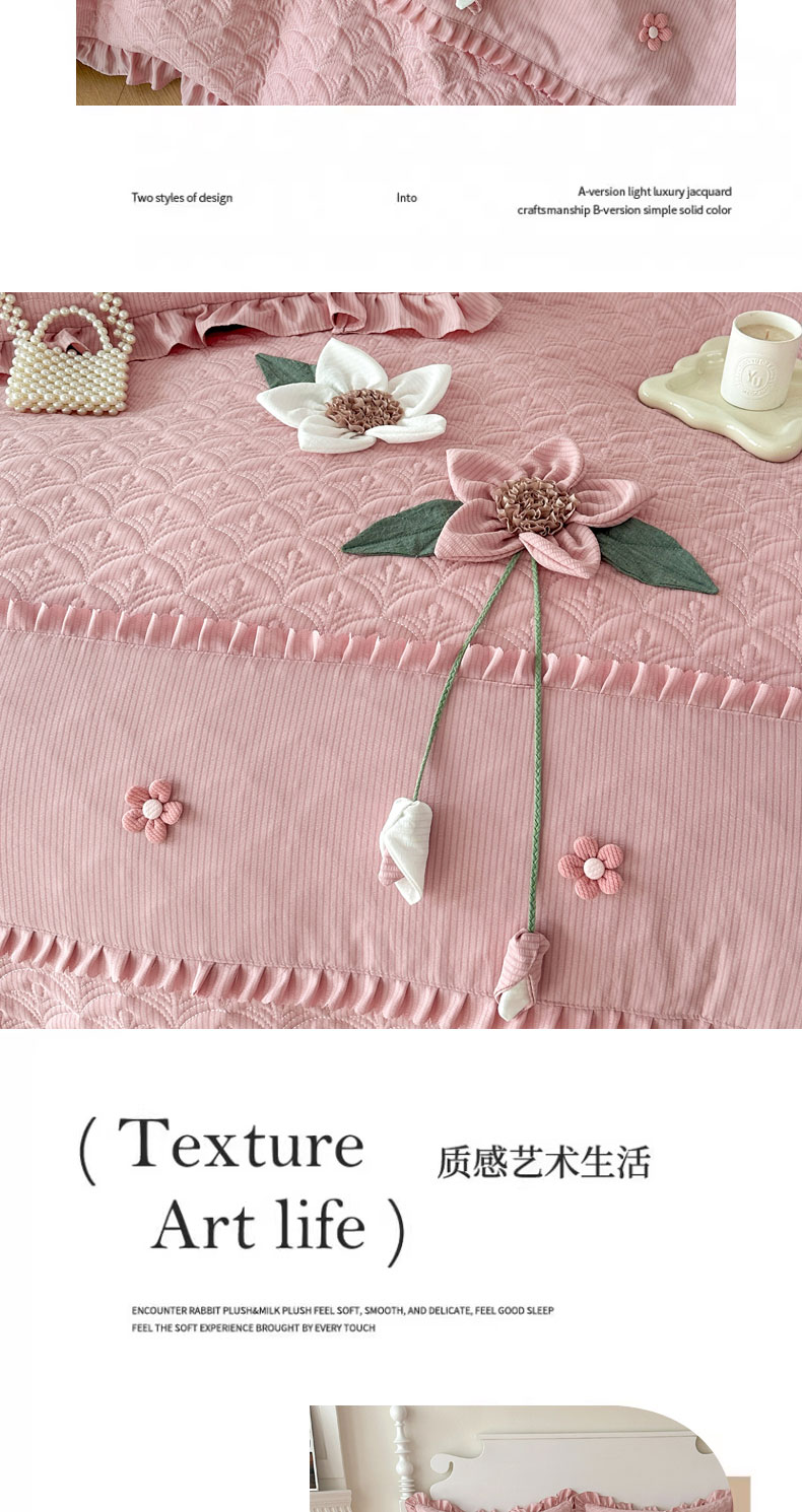 (总)兴美佳家纺 2023新款高克重兔毛绒雕花手工盘花四件套,少女粉,玫瑰红,米黄,翡翠绿,芋紫,豆沙,雅灰,雪青
