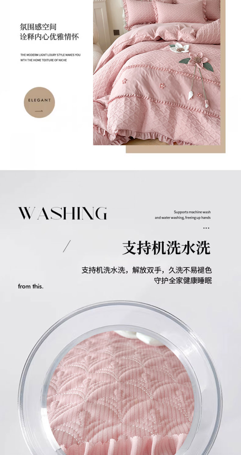(总)兴美佳 2024新款水洗棉亲肤绗缝四件套--初恋,初恋-本白,初恋-大红,初恋-米黄,初恋-藕粉,初恋-浅兰,初恋-浅绿