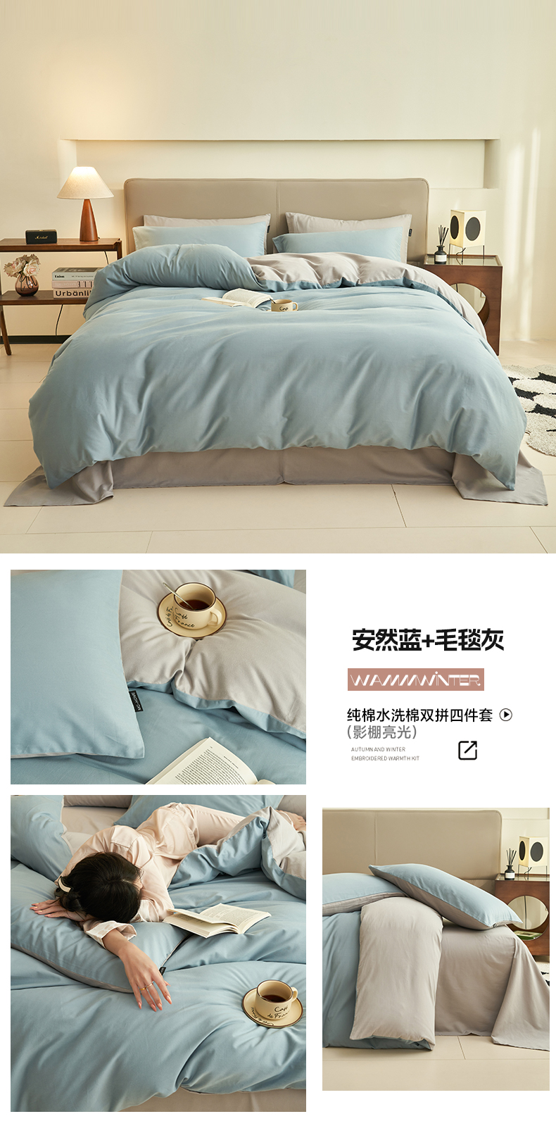 (总)2025新款全棉13372水洗棉双拼四件套(影棚暗光),天青韵白+拾柴,40暖木棕+拾柴,40驼+40暖木棕,安然蓝+毛毯灰,暗木幽香+宝藏灰,暗香紫砂+40驼,布鲁兰+拾柴,春风十里+浮生一梦,豆沙+毛毯灰,扶苏绿+毛毯灰,果绿+墨子绿,礁石灰+毛毯灰,漫雾+古巴砂,毛毯灰+宝藏灰,蘑菇黄+天青韵白,碳烤栗子+拾柴,天蓝+米黄,天青韵白+一念秋风,一叶知秋+袅袅灰,樱木粉+一念秋风