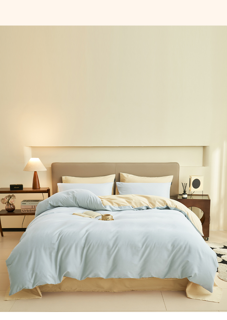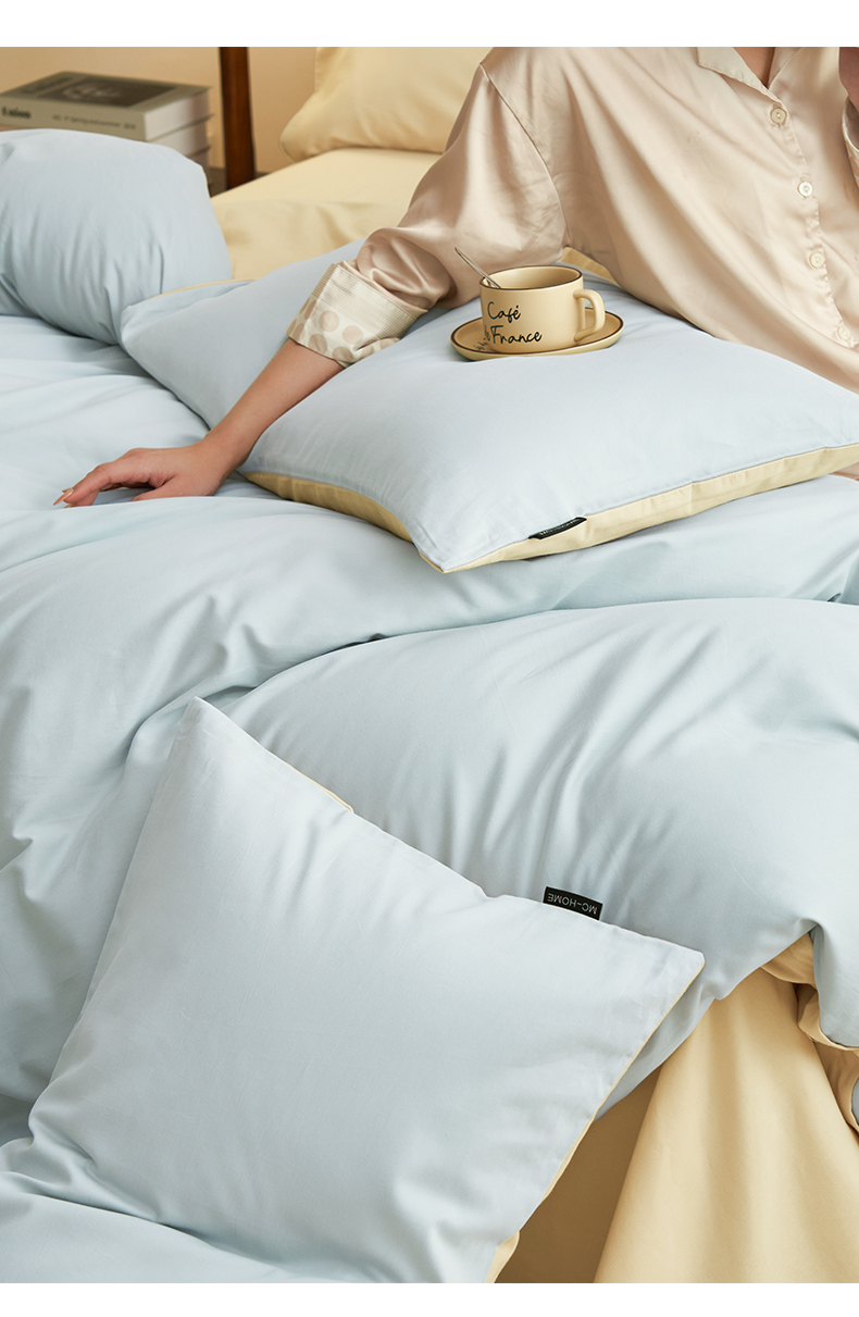 2025新款全棉13372水洗棉双拼四件套(影棚亮光) 天蓝+米黄