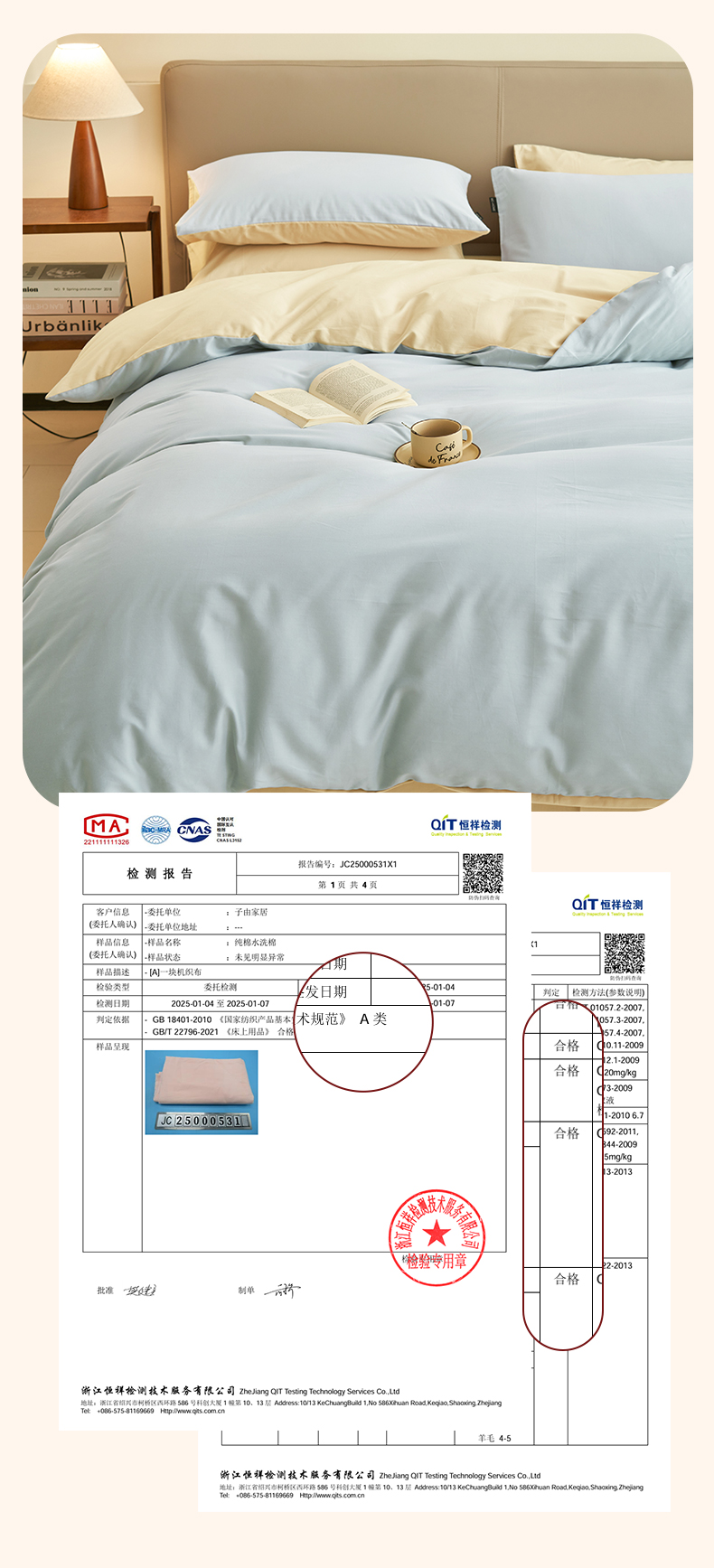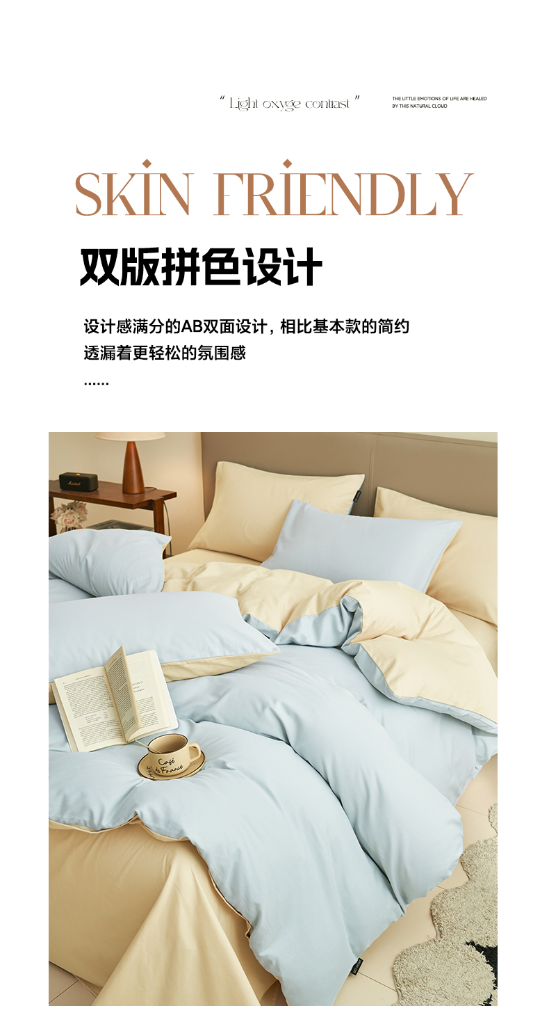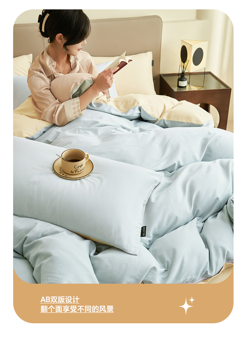 (总)寐绸家纺 2025新款纯棉水洗棉简约双拼大豆纤维夏被四件套,宾利蓝+浅灰,豆沙粉+浅灰,米白+青绿,牛仔蓝+浅灰,浅灰+杏色,天蓝+米黄