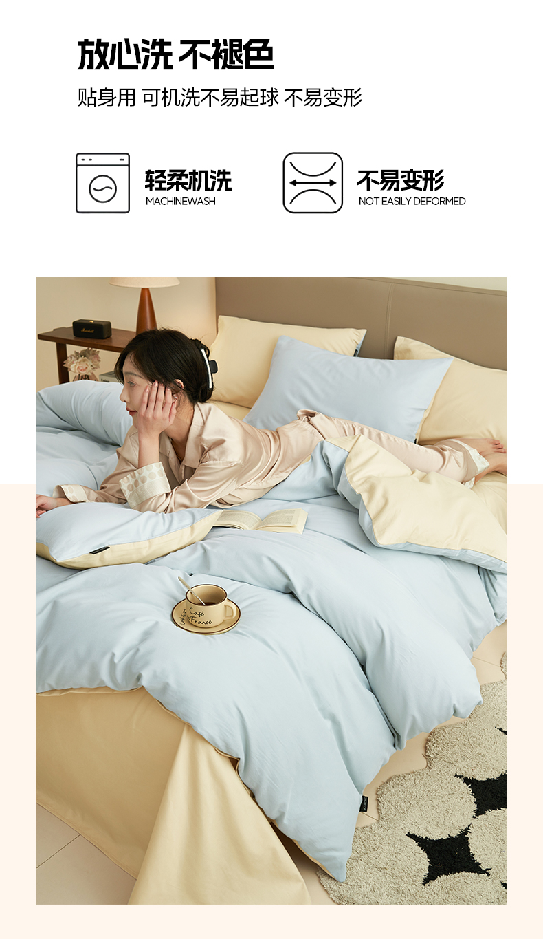 商品名称:2025新款全棉13372水洗棉双拼四件套(影棚亮光) 天蓝+米黄