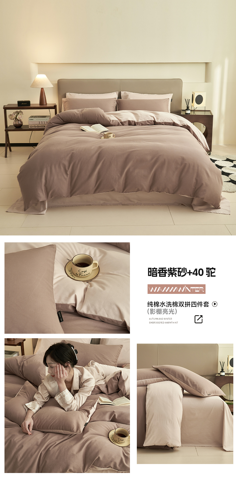 (总)2025新款全棉13372水洗棉双拼四件套(影棚暗光),天青韵白+拾柴,40暖木棕+拾柴,40驼+40暖木棕,安然蓝+毛毯灰,暗木幽香+宝藏灰,暗香紫砂+40驼,布鲁兰+拾柴,春风十里+浮生一梦,豆沙+毛毯灰,扶苏绿+毛毯灰,果绿+墨子绿,礁石灰+毛毯灰,漫雾+古巴砂,毛毯灰+宝藏灰,蘑菇黄+天青韵白,碳烤栗子+拾柴,天蓝+米黄,天青韵白+一念秋风,一叶知秋+袅袅灰,樱木粉+一念秋风