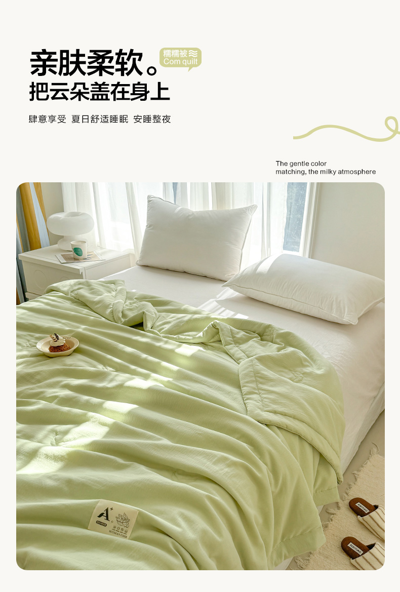 丹本家纺 2025新款母婴级A类无印风超柔宝宝纱大豆夏凉被 浅草绿