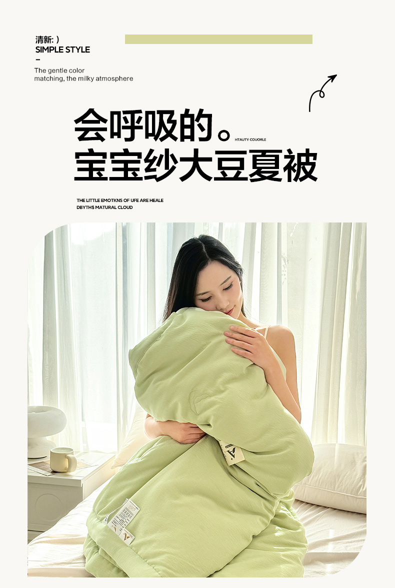 商品名称:丹本家纺 2025新款母婴级A类无印风超柔宝宝纱大豆夏凉被 浅草绿