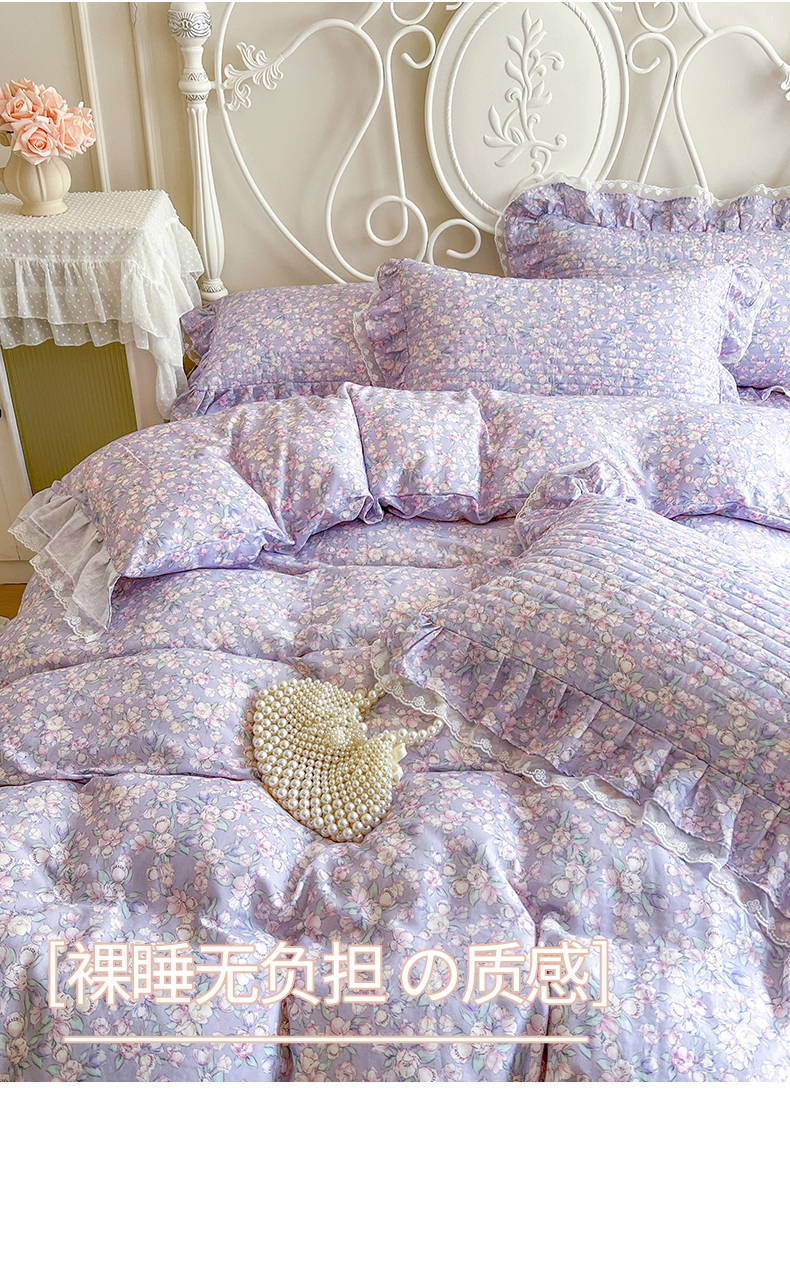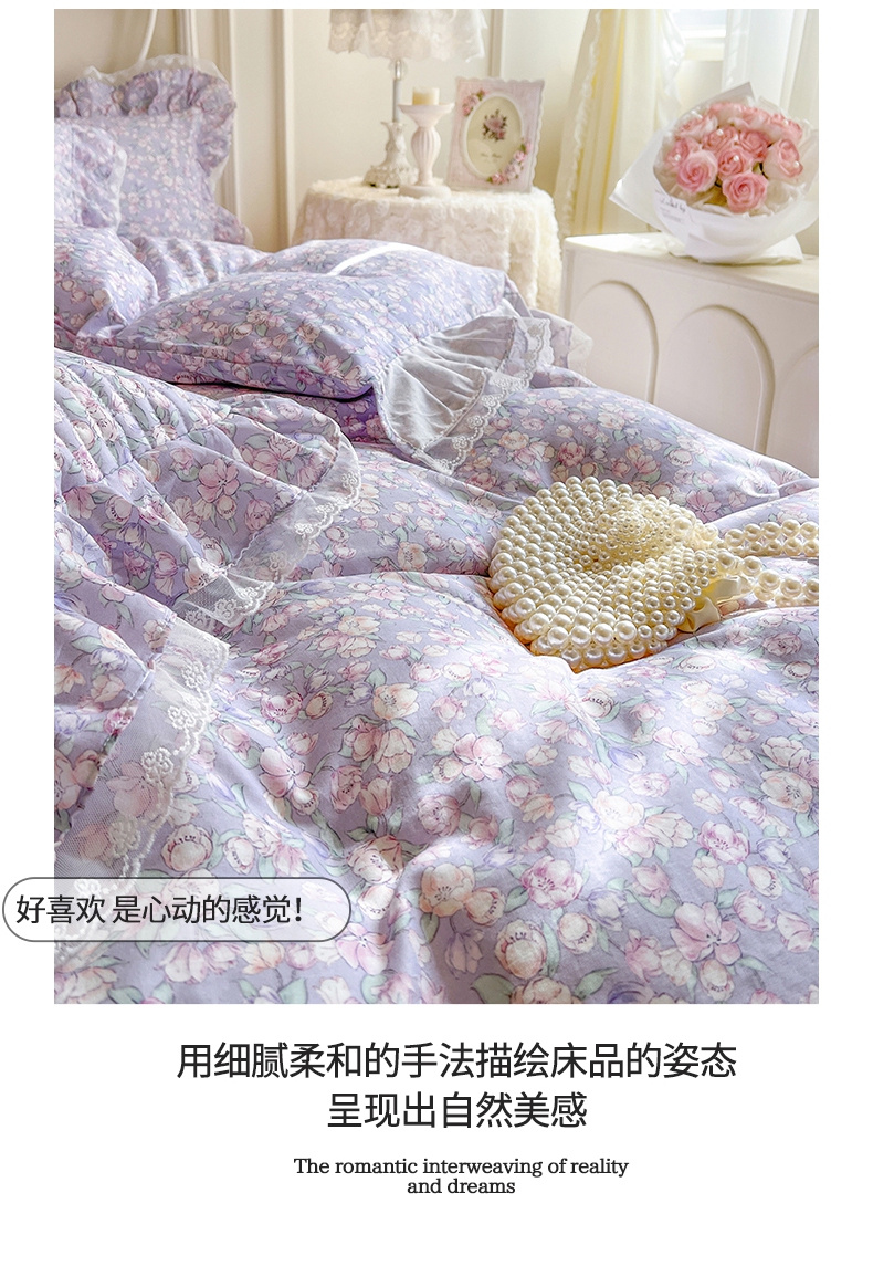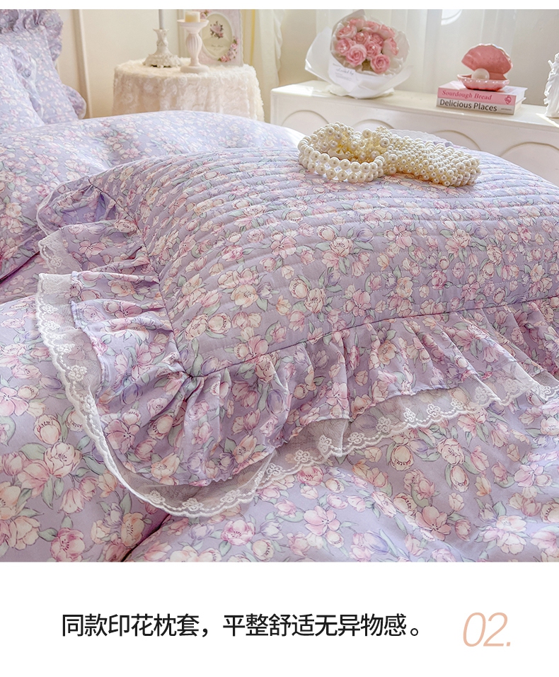 商品名称:麒豆豆 2025新款全棉印花双层纱床盖四件套 芳草悠悠