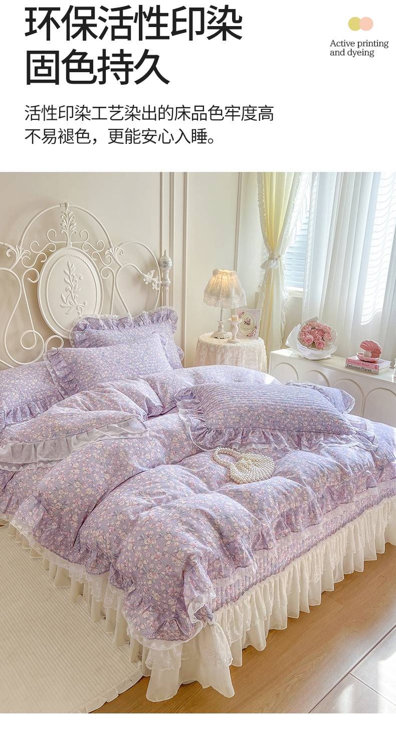 (总)麒豆豆 2025新款全棉蕾丝边床裙款床笠-晨暮花间,晨暮花间-绯红,晨暮花间-粉色,晨暮花间-麦绿,晨暮花间-米色,晨暮花间-浅紫,晨暮花间-雾蓝