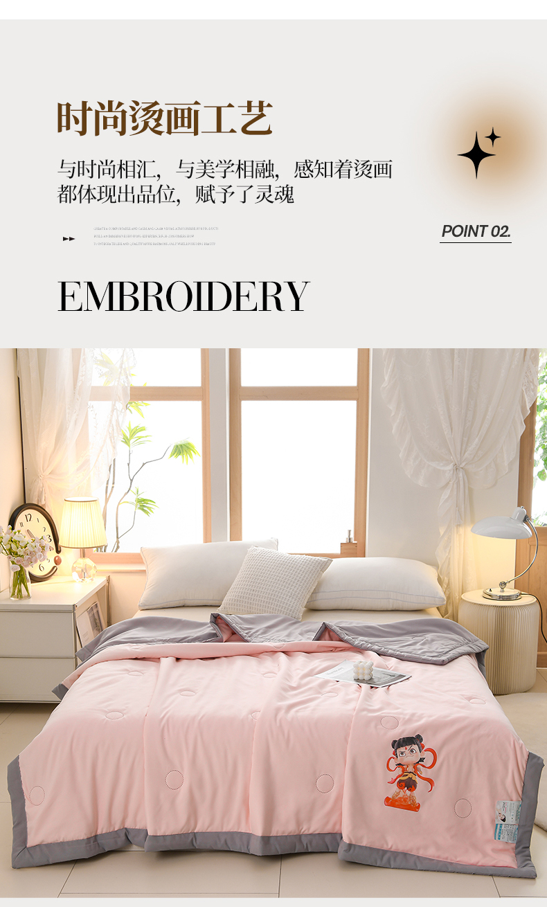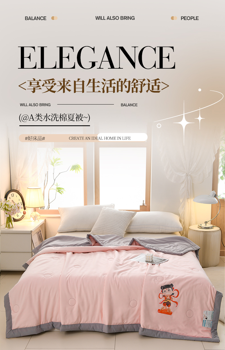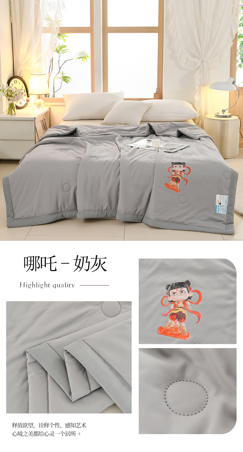 (总)易展家居 2025年新款水洗棉哪吒夏被,哪吒-奶昔白,哪吒-轻绿,哪吒-轻银粉,哪吒-轻银灰