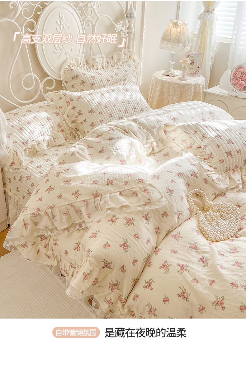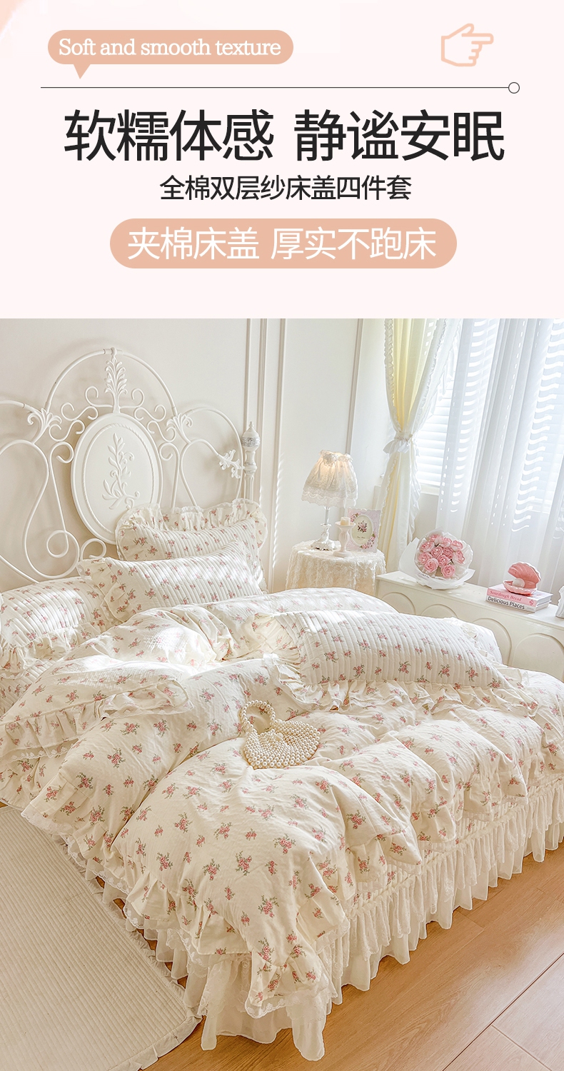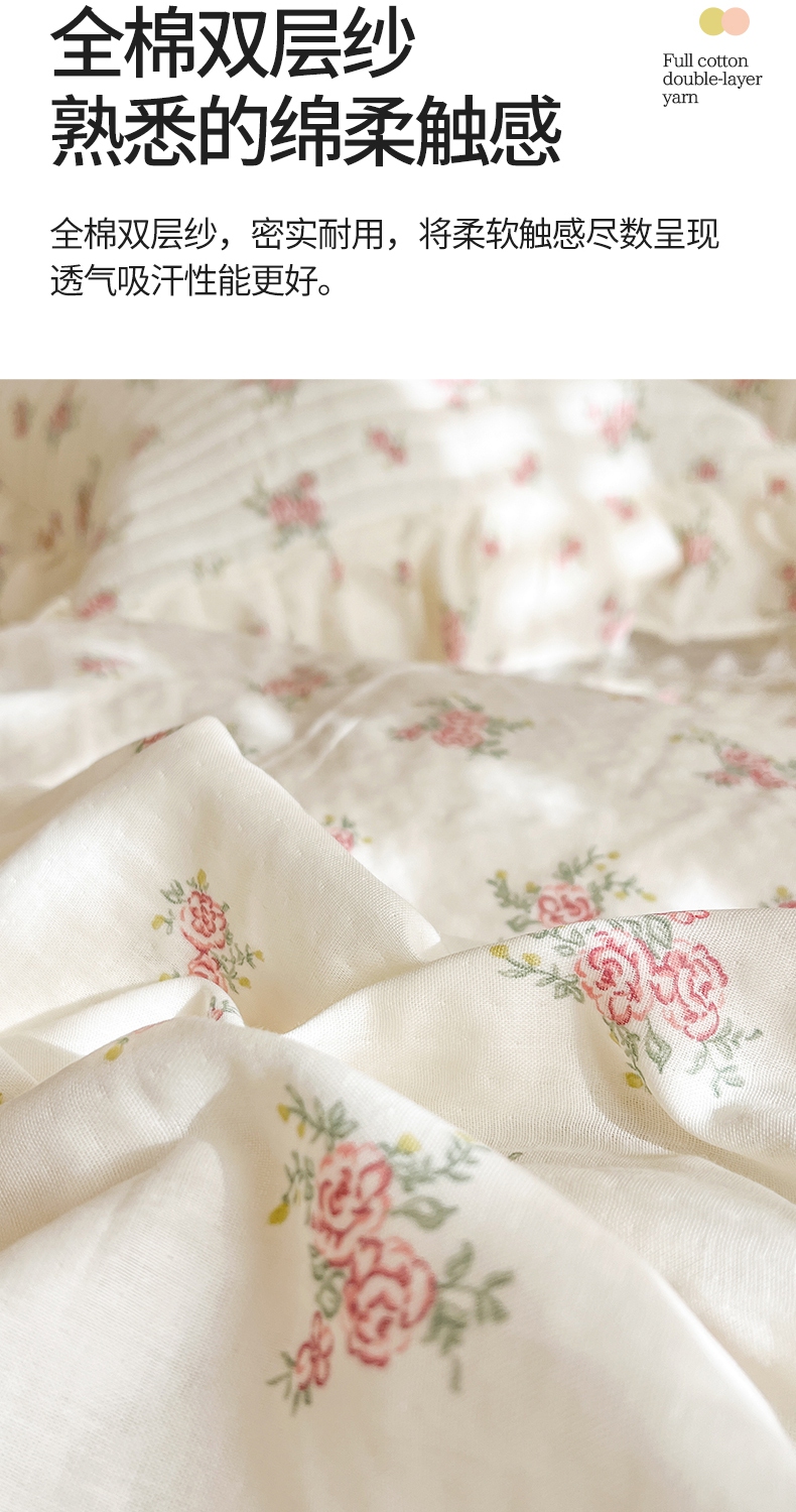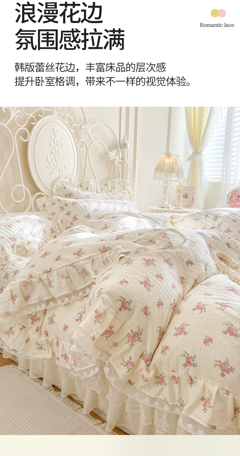 商品名称:网红馆(ck家纺) 2025新款全棉印花双层纱床盖四件套 花季