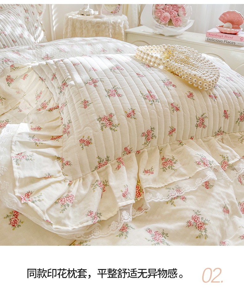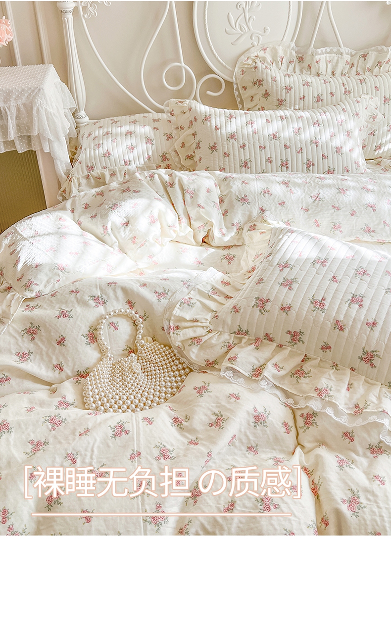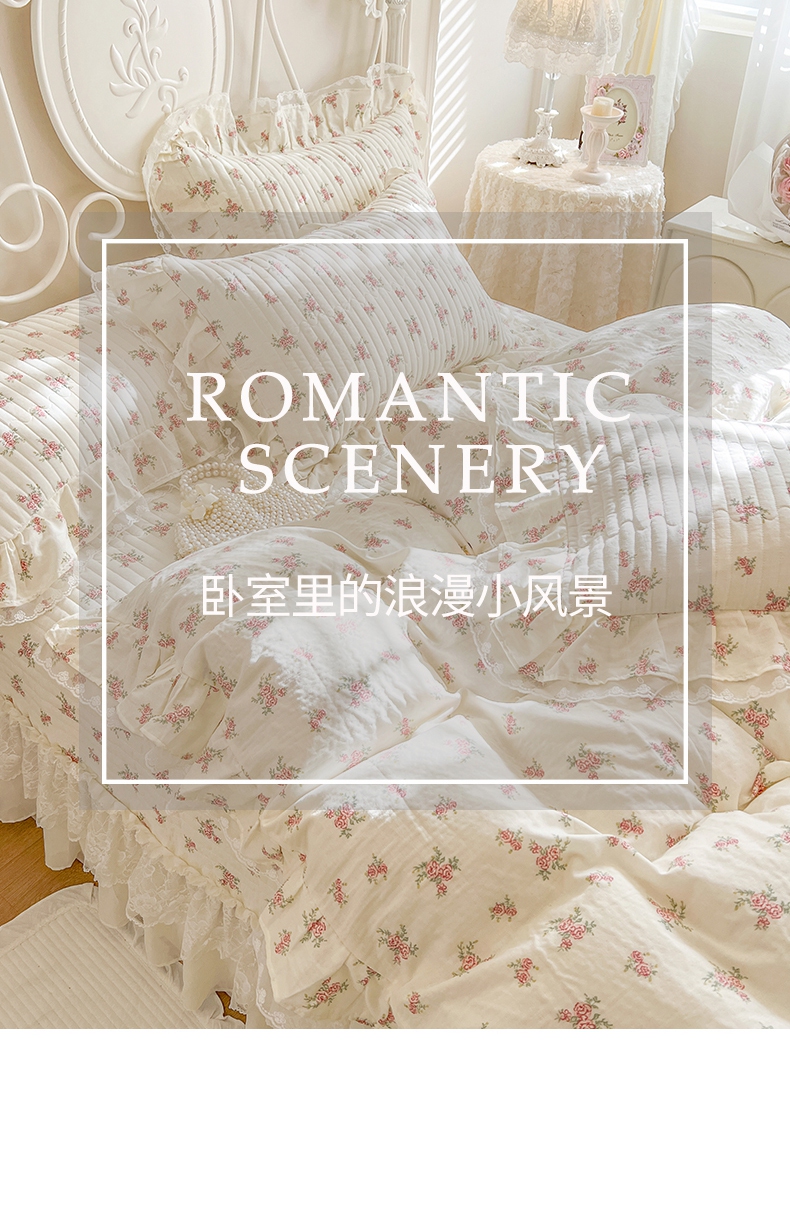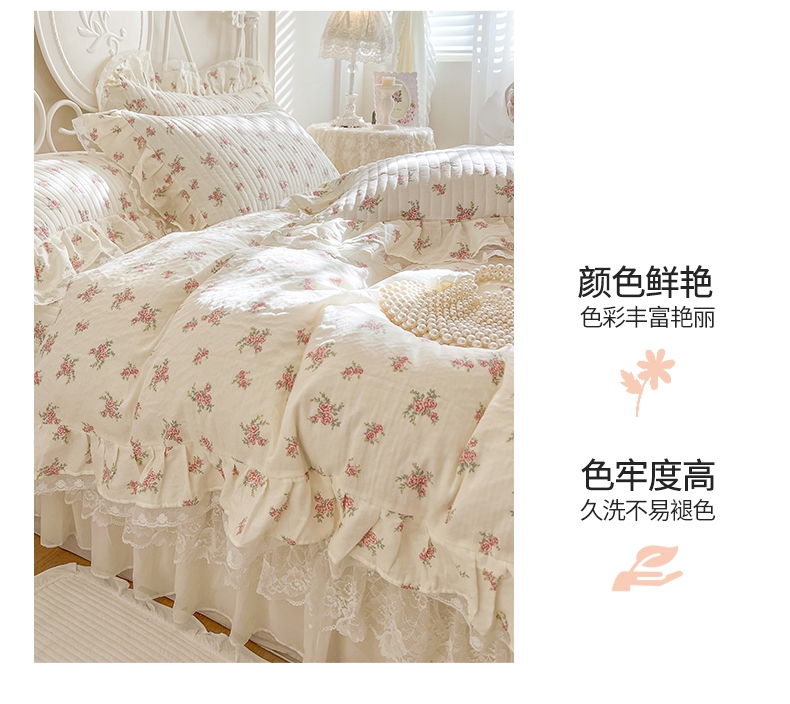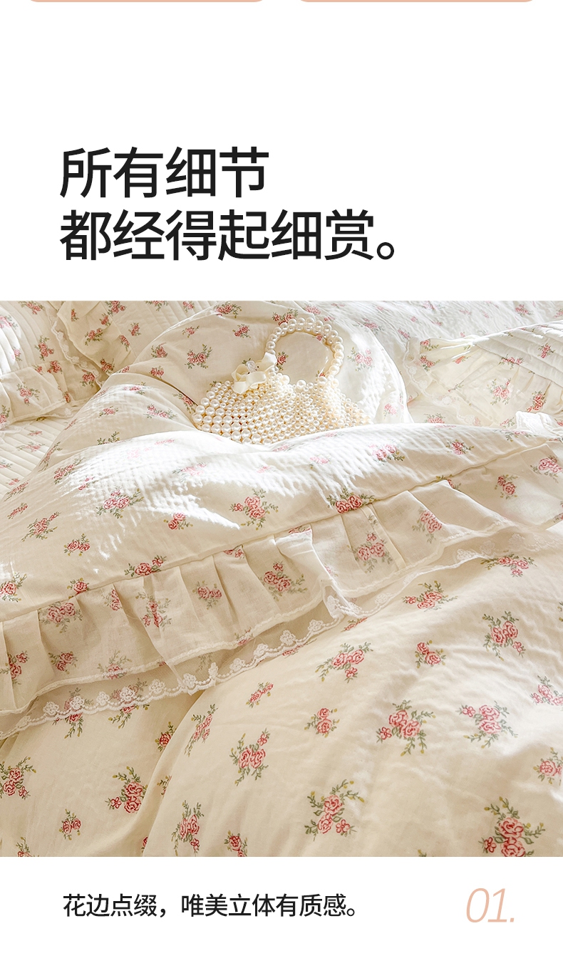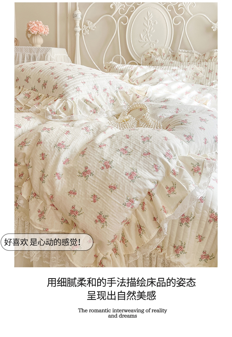 商品名称:网红馆(ck家纺) 2025新款全棉印花双层纱床盖四件套 花季