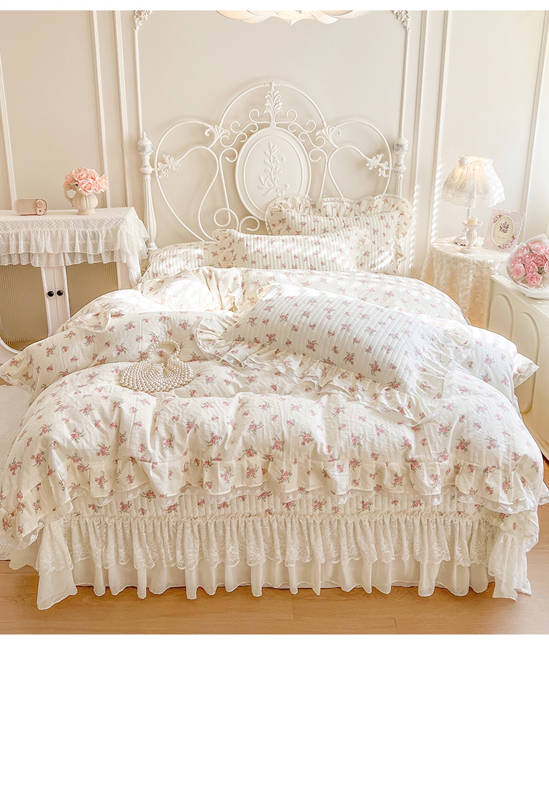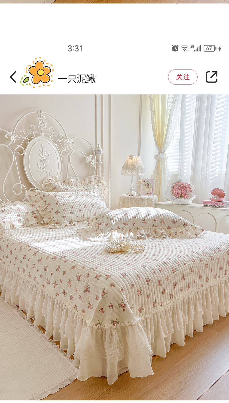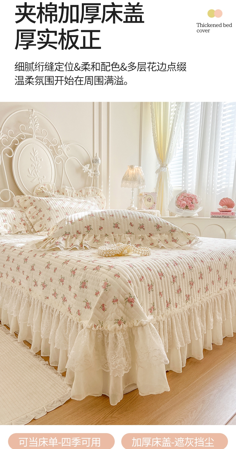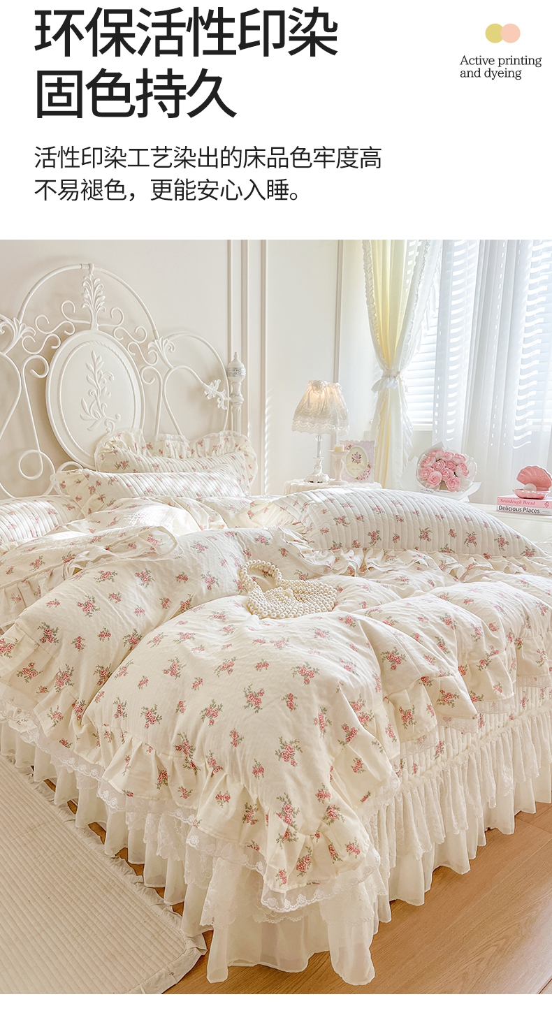 (总)网红馆(ck家纺) 2026新款全棉蕾丝花边床裙款床笠晨暮花间系列,绯红,粉色,麦绿,米色,浅紫,雾蓝