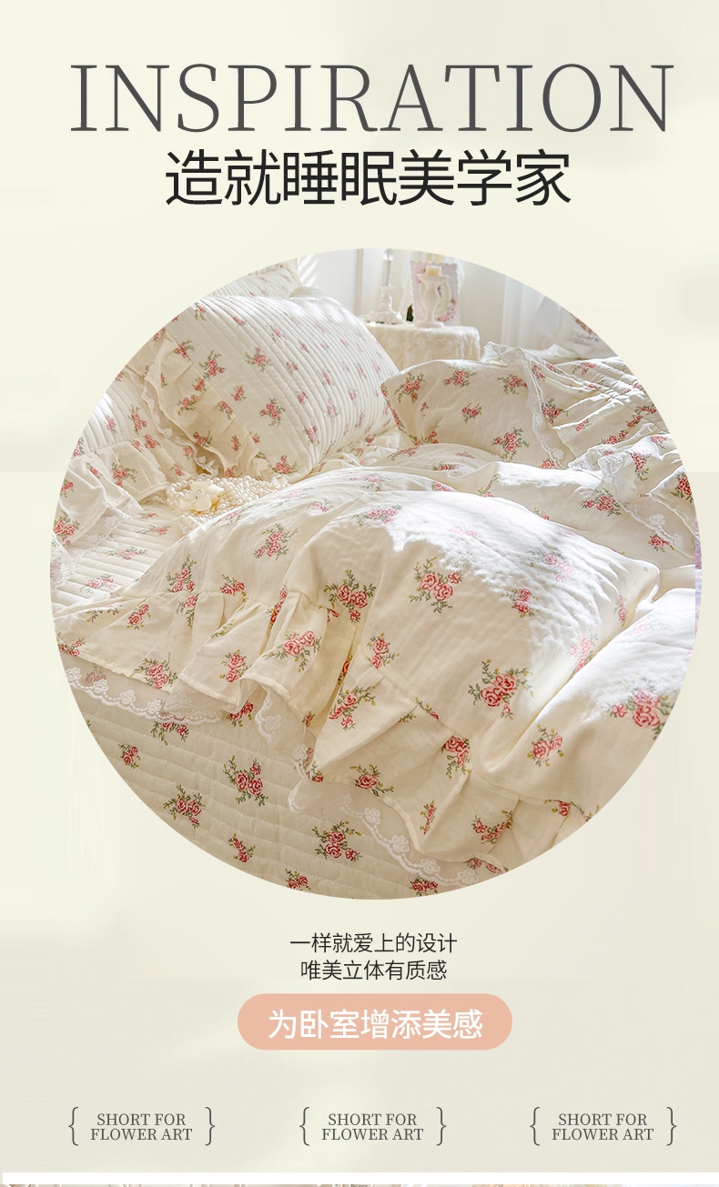 网红馆(ck家纺) 2025新款全棉印花双层纱床盖四件套 花季