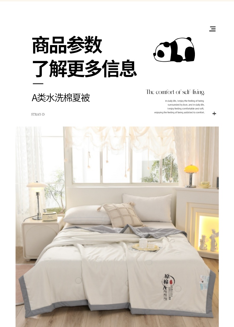 (总)易展家居 2025年新款水洗棉熊猫夏被,熊猫-奶昔白,熊猫-轻绿,熊猫-轻银粉,熊猫-轻银灰