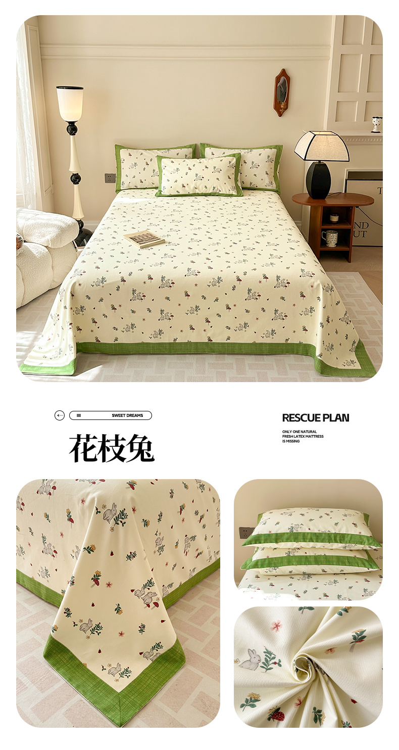 (总)蓝邻家纺 2024新款小清新印花全棉四件套学生宿舍三件套,茶园兔,风翩,机灵兔熊,可妮露,藤蔓兔,筱薇