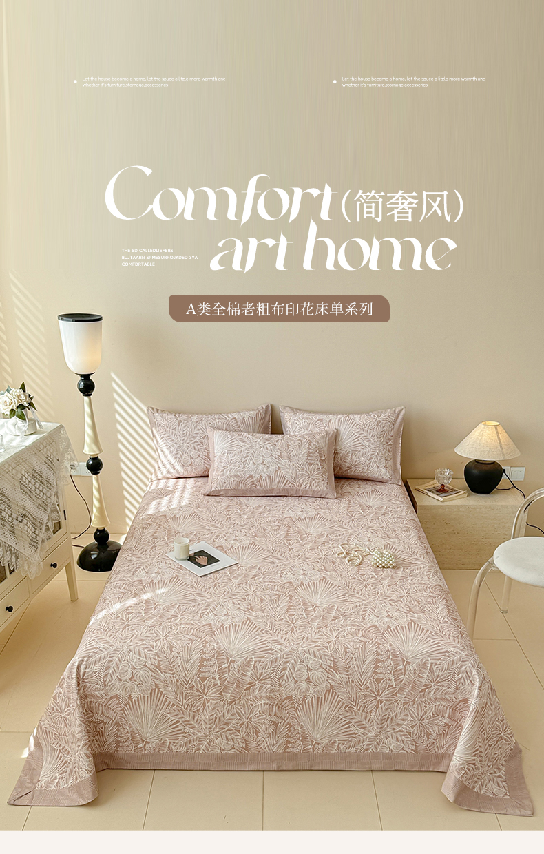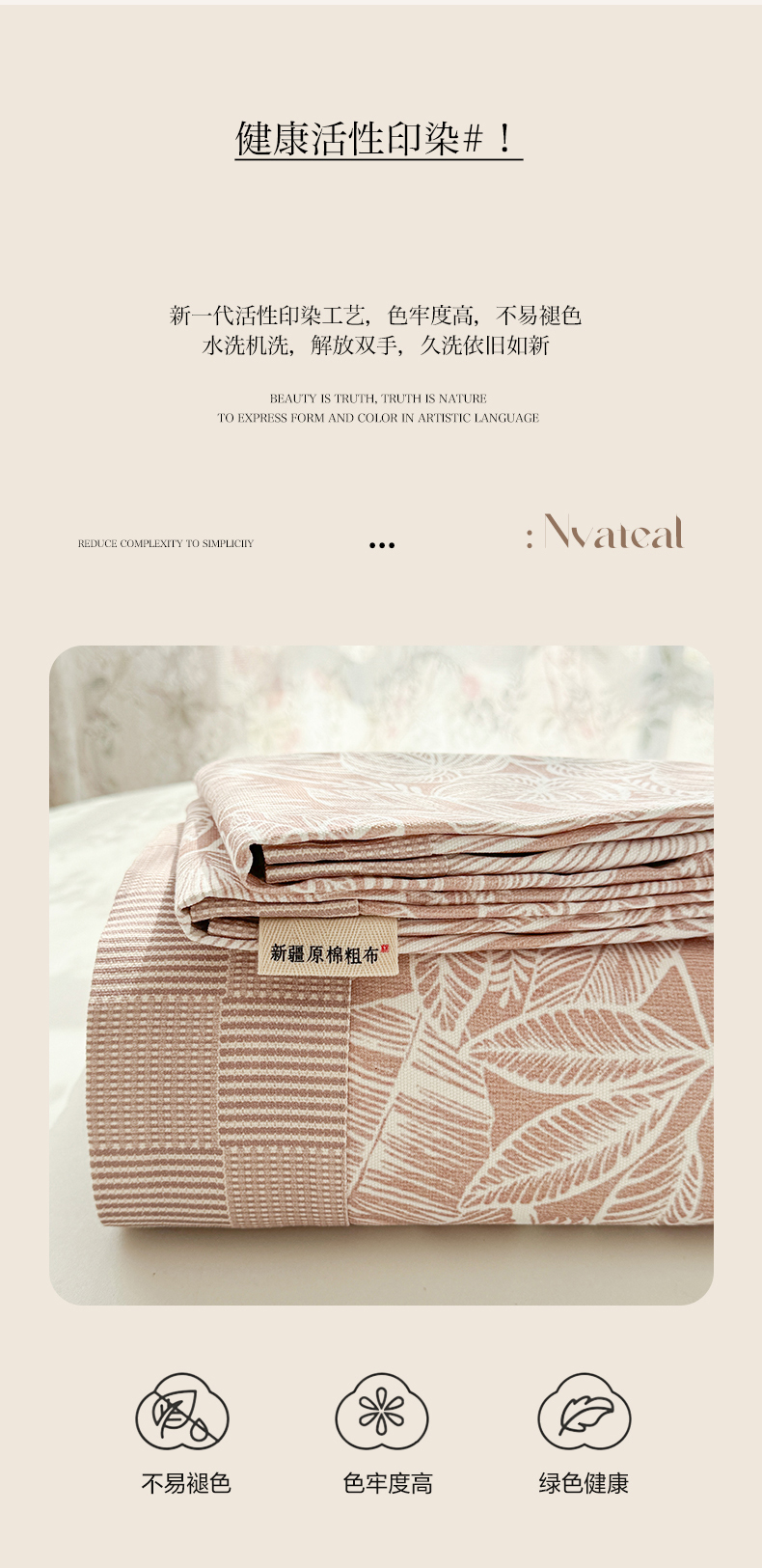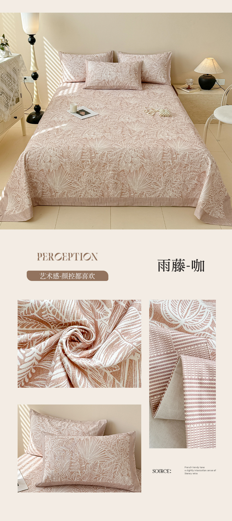 • 91家纺网 家纺一手货源 找家纺 蓝邻家纺 2025新款100%新疆原棉粗布小清新拼角工艺款系列单床单 雨藤-咖